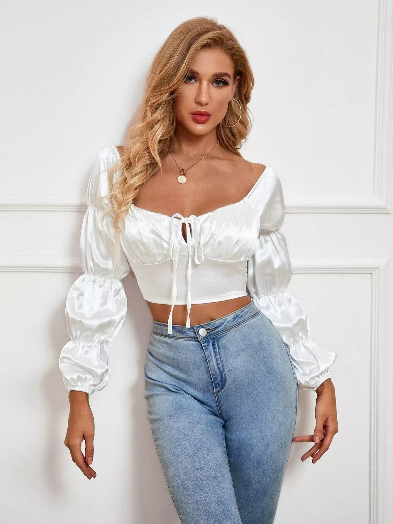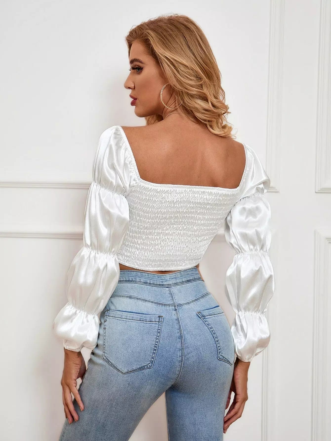 Sweetheart Neck Ruched Bust Shirred Back Crop Top