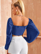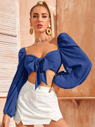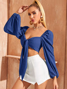 Tie Front Lantern Sleeve Crop Milkmaid Top