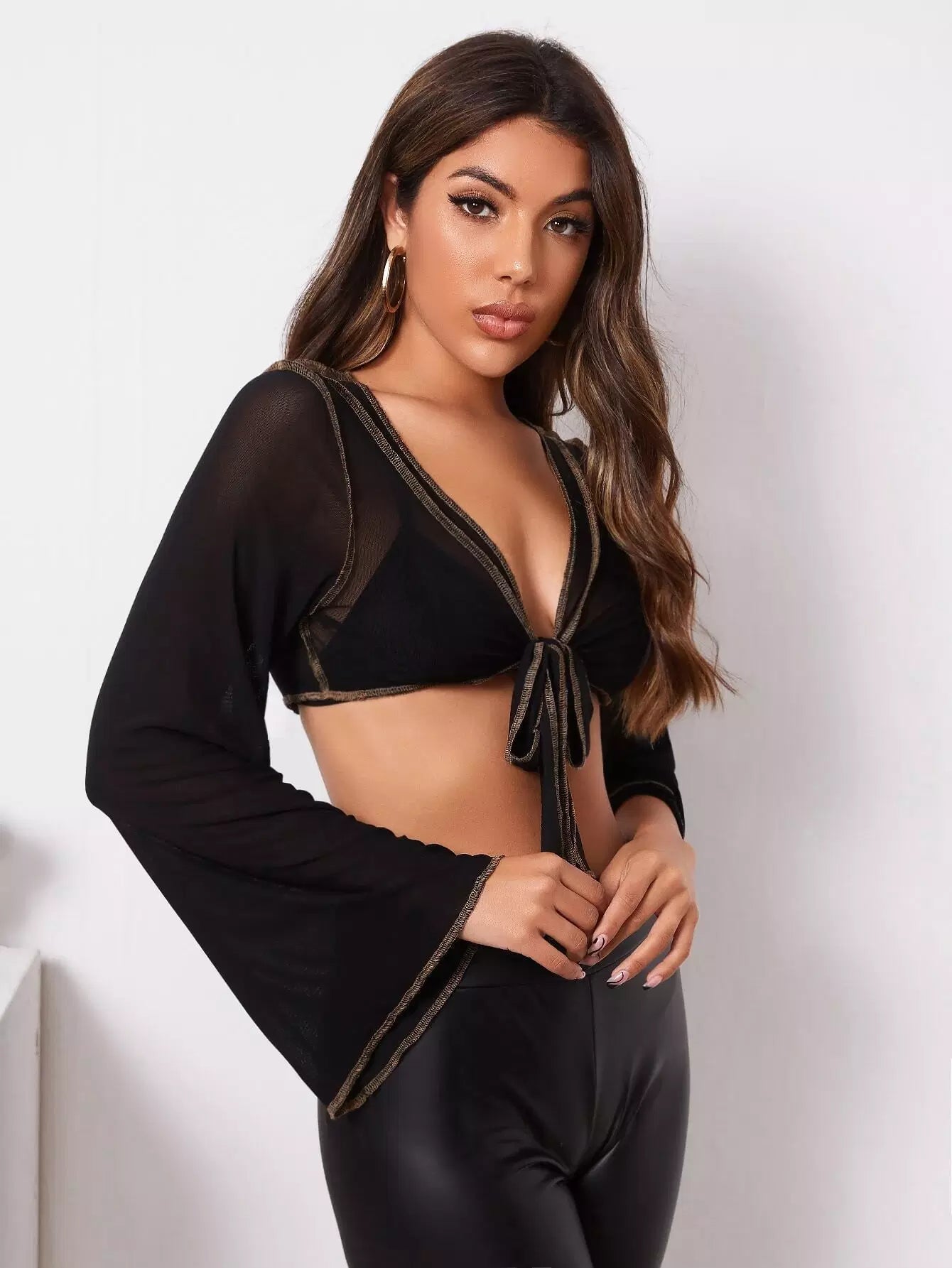 Tie Front Sheer Crop Top