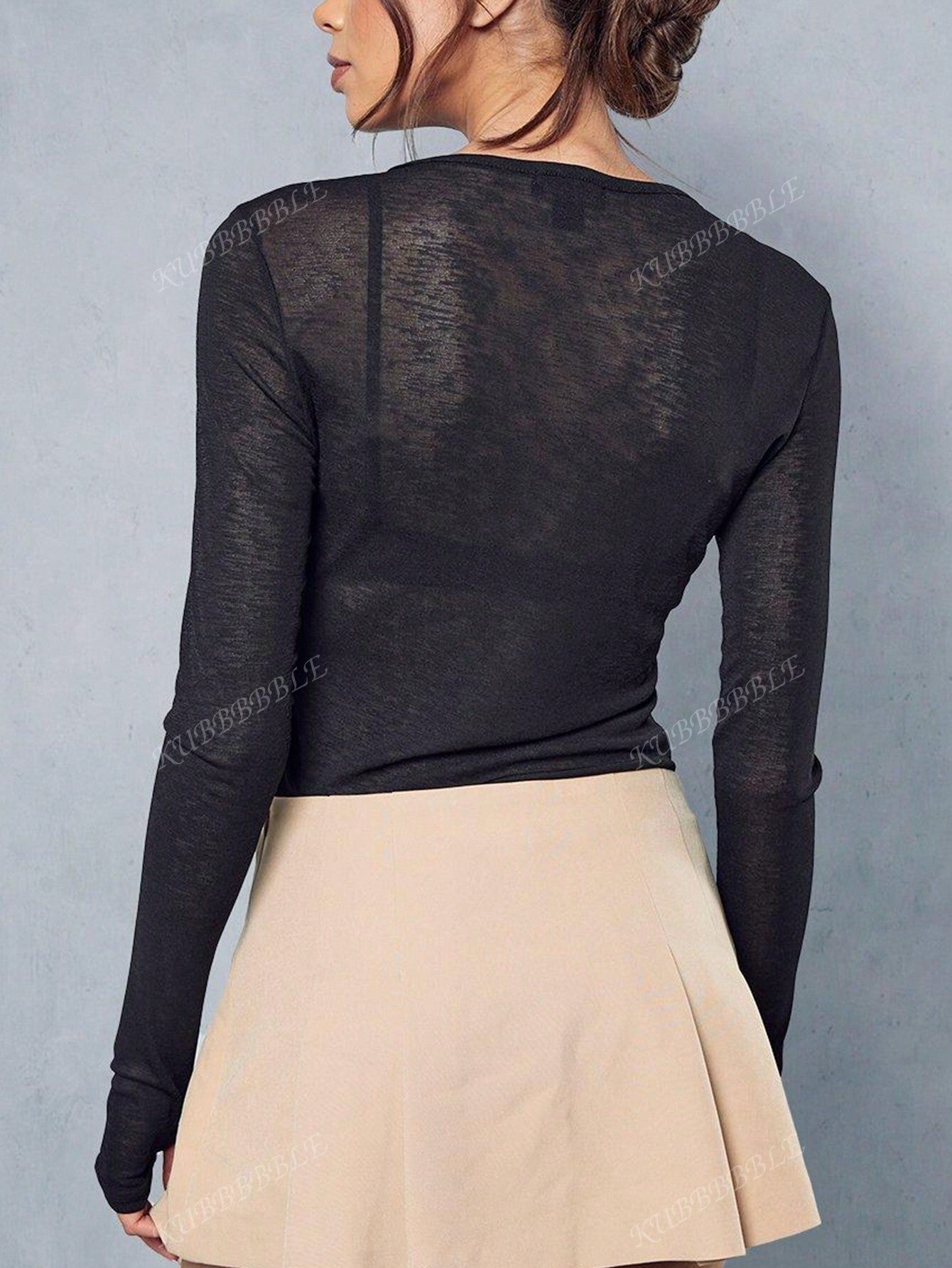 Y2K Stretchy See-Through Long Sleeve Round Neck Slim Fit T-Shirt Going Out Tops
