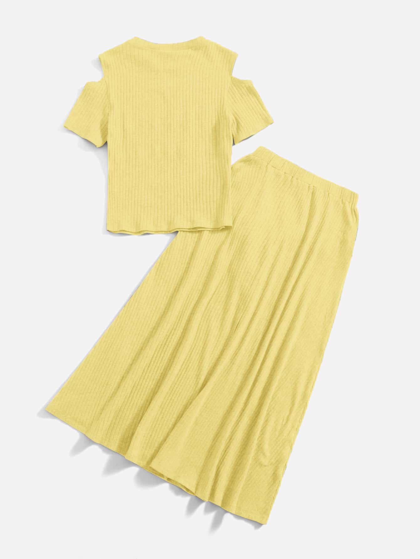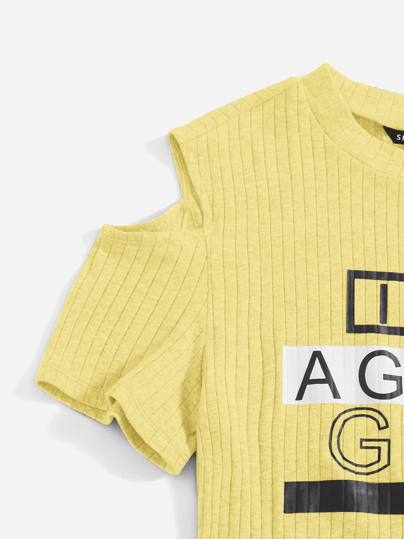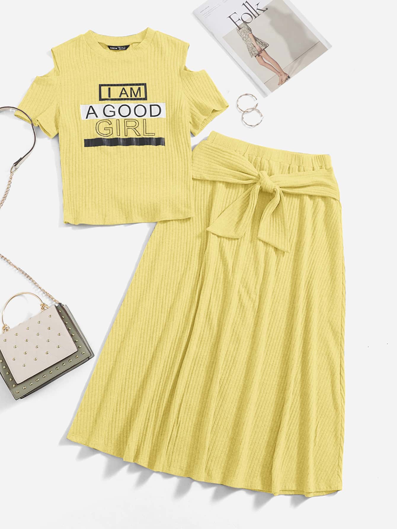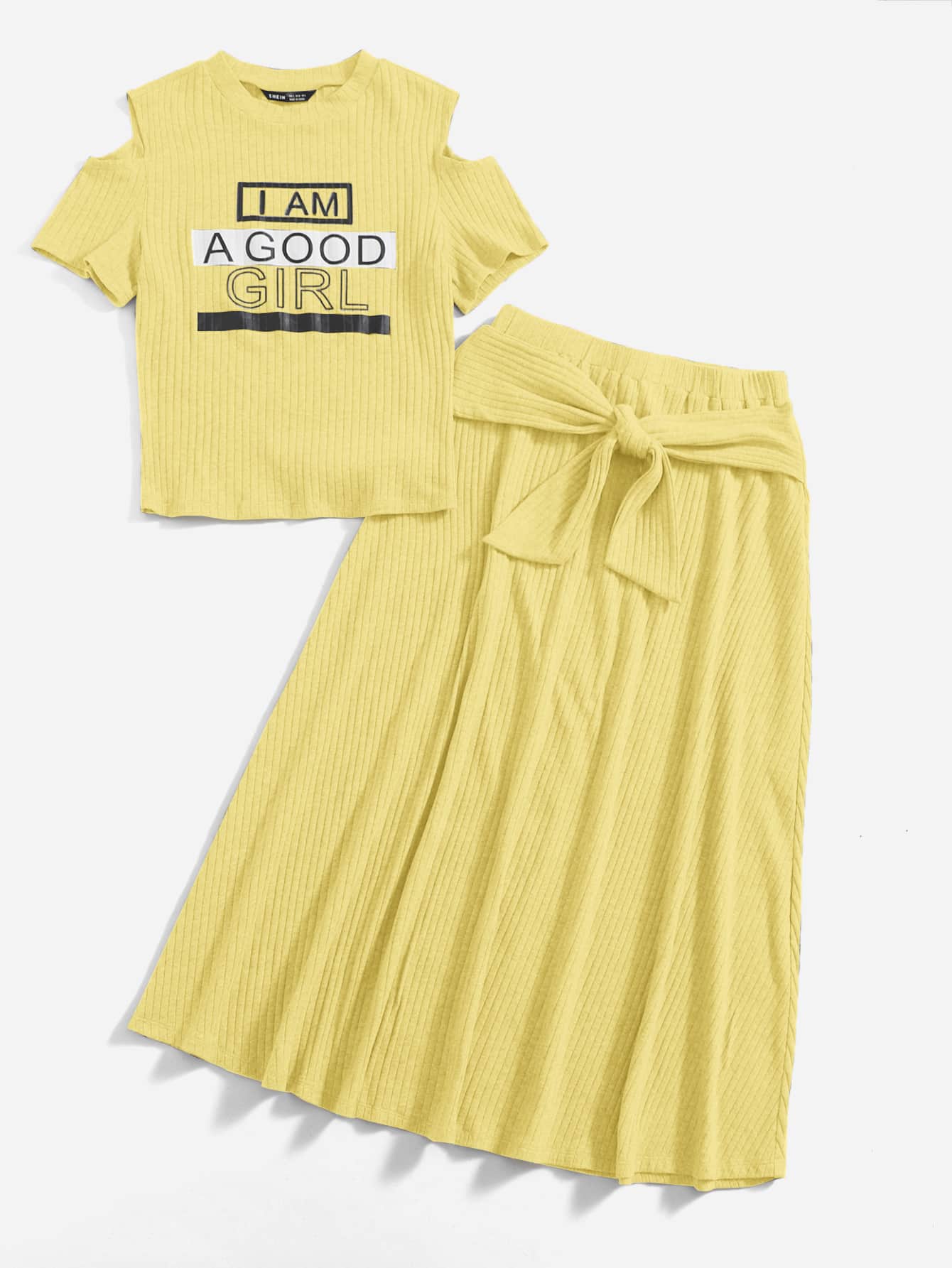 Cold Shoulder Letter Graphic Tee & Tie Front Skirt Set