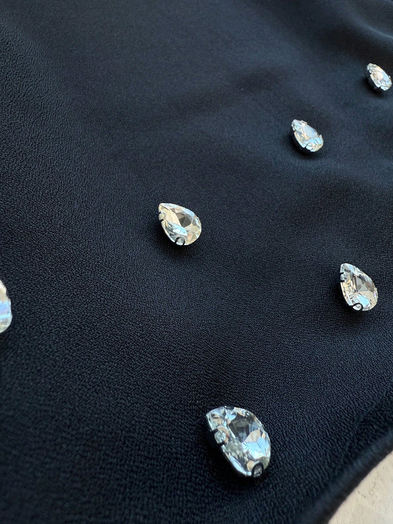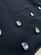 women Aloruh 2pcs Women Elegant Set: Rhinestone Decor Round Neck Long Sleeve Top And Mini Skirt