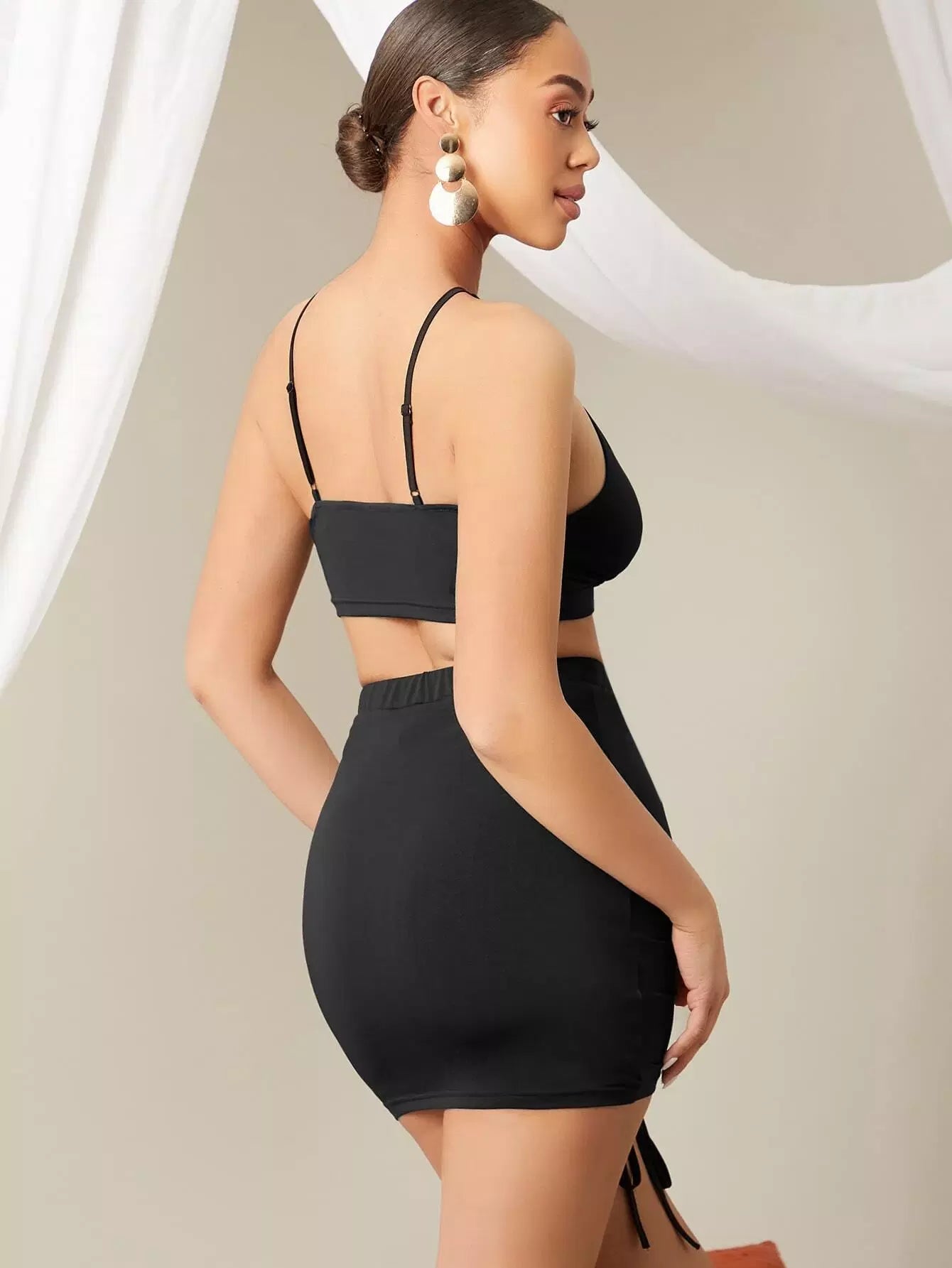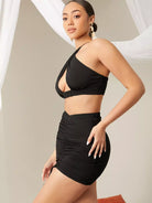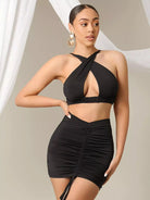 Cut Out Front Halter Top & Ruched Bodycon Skirt Set