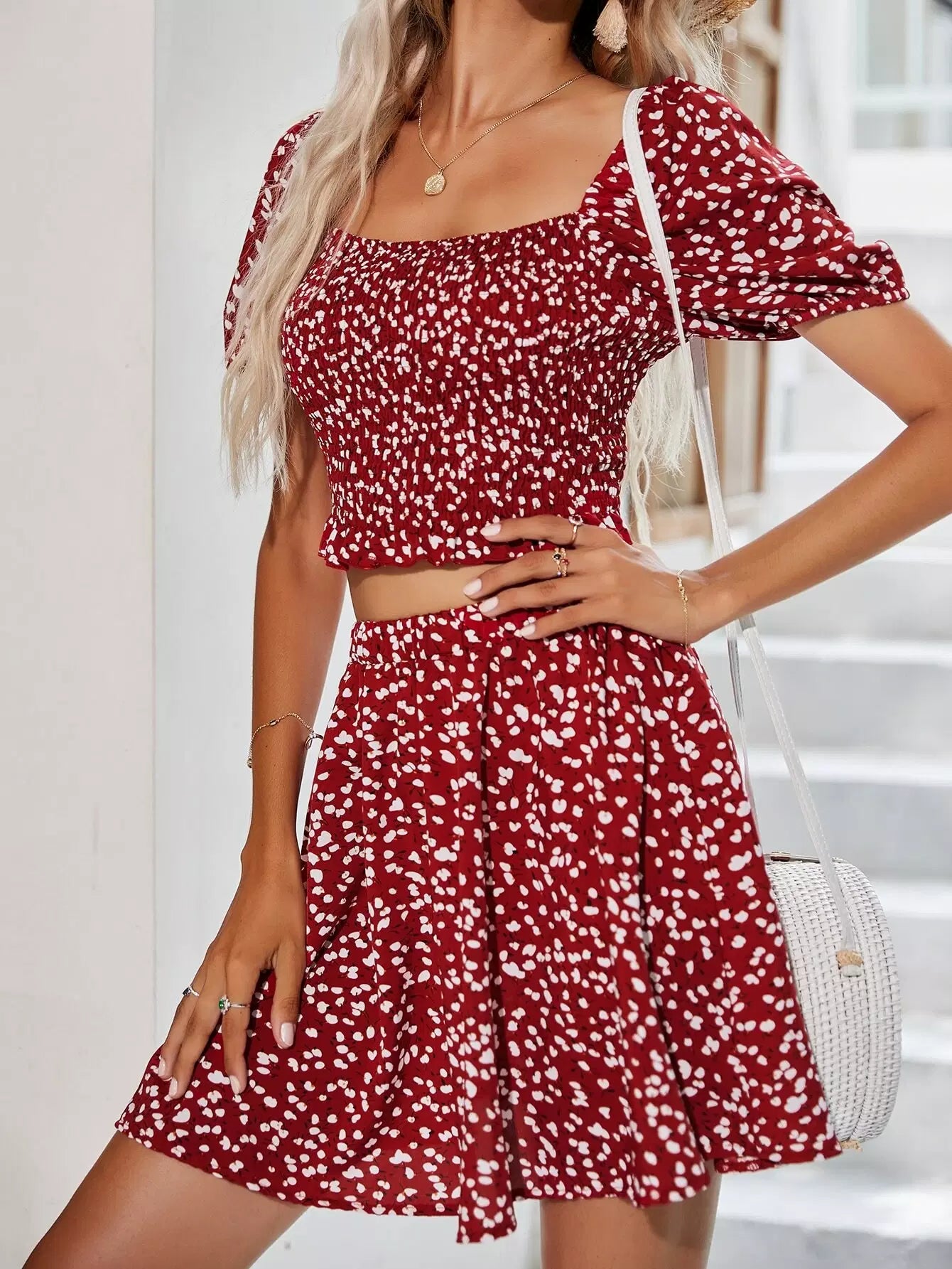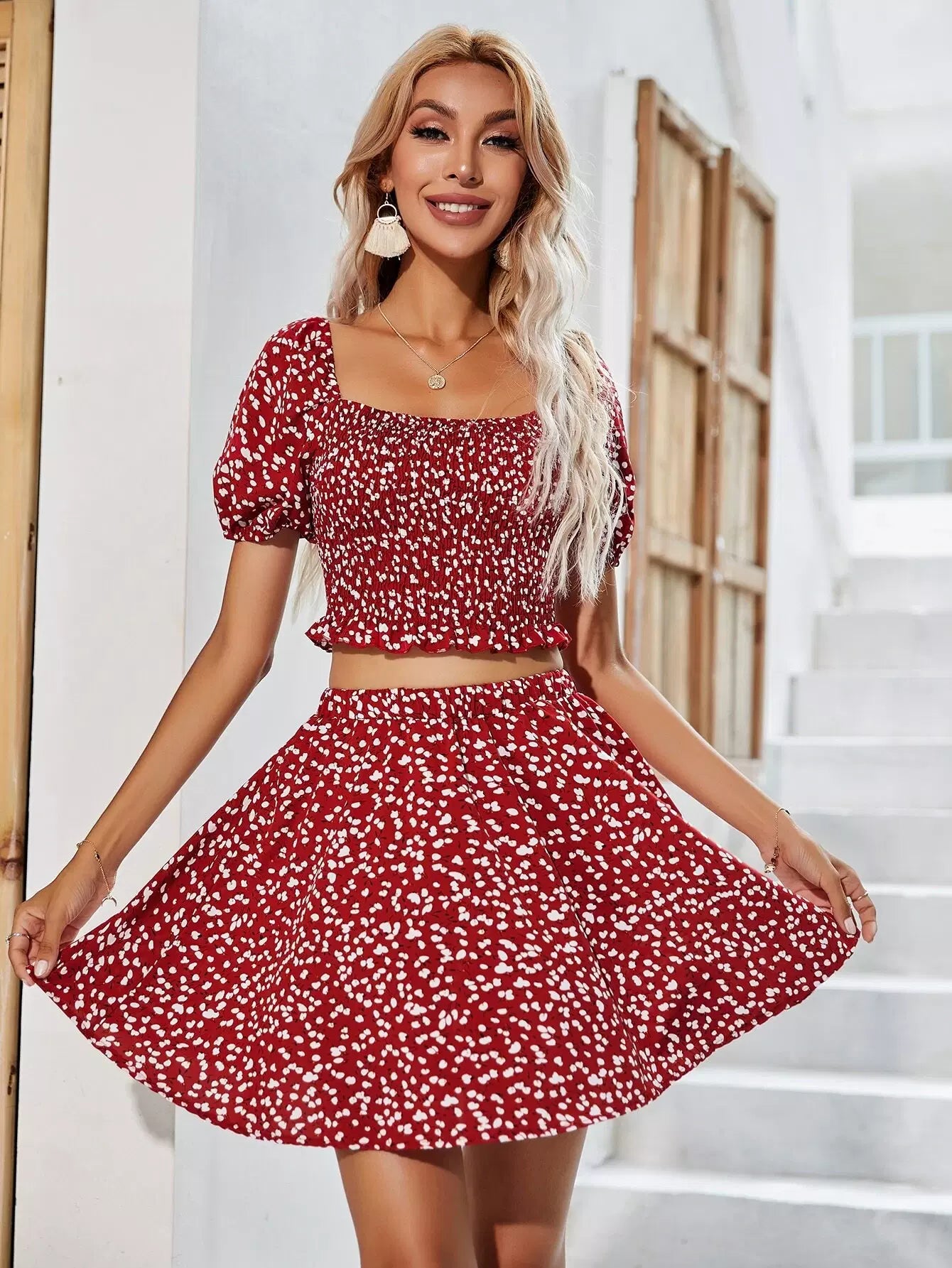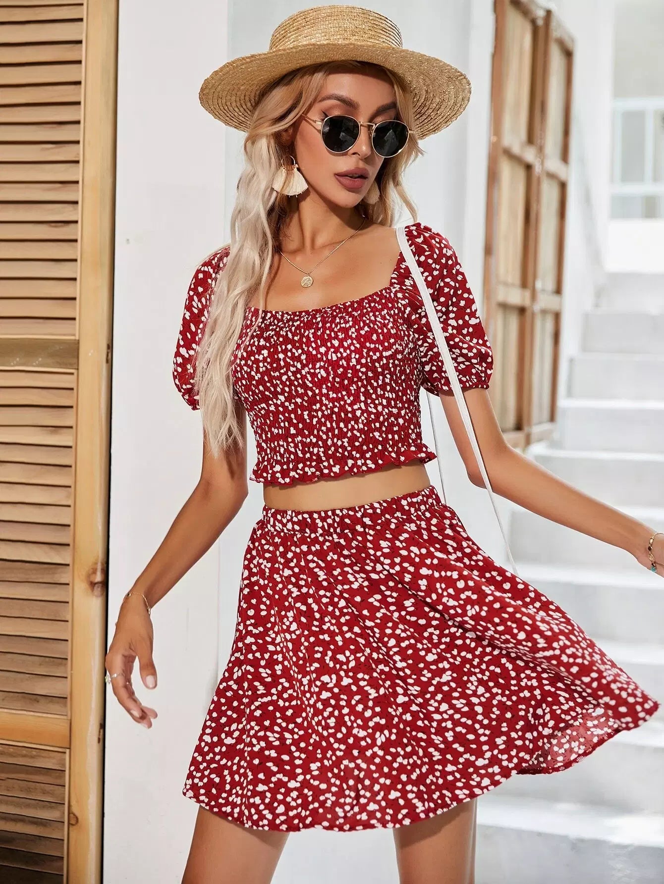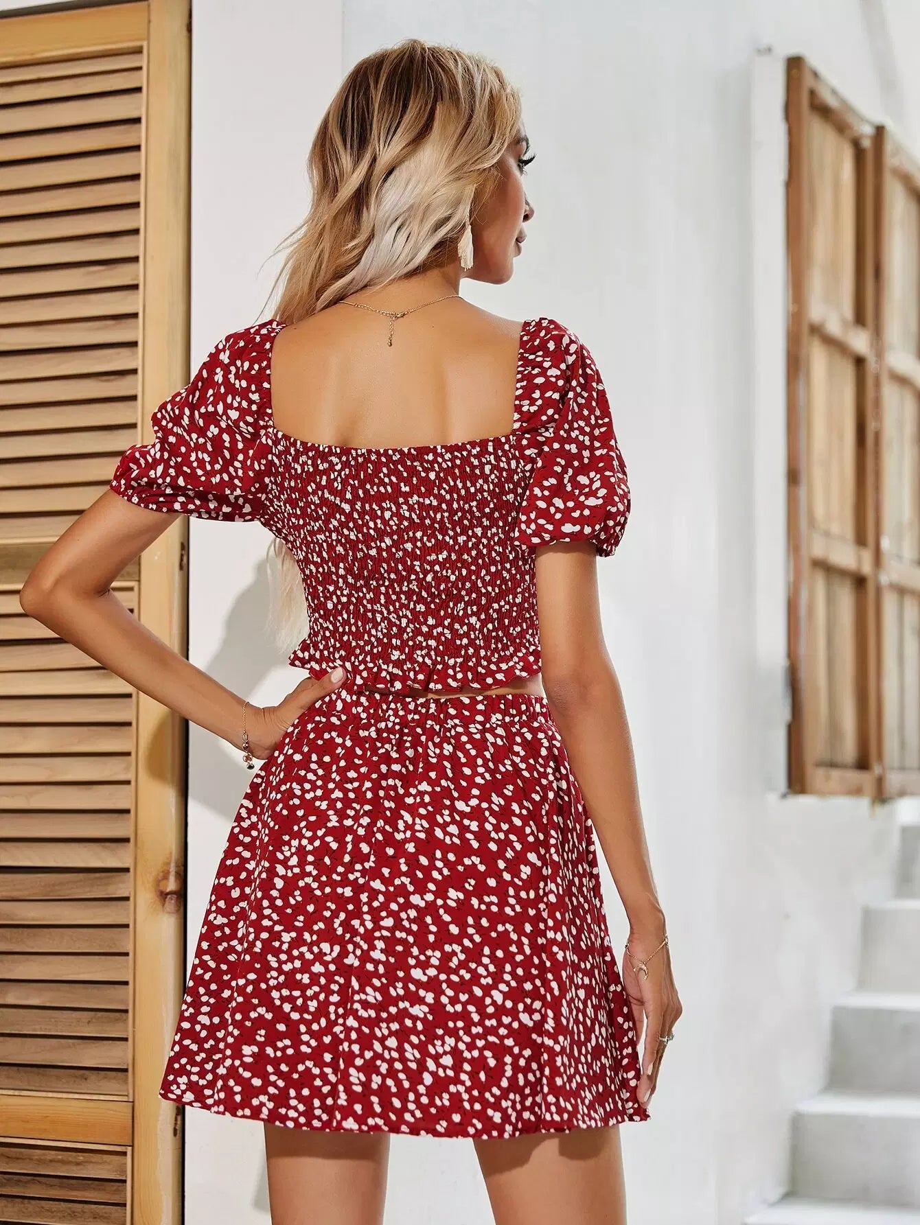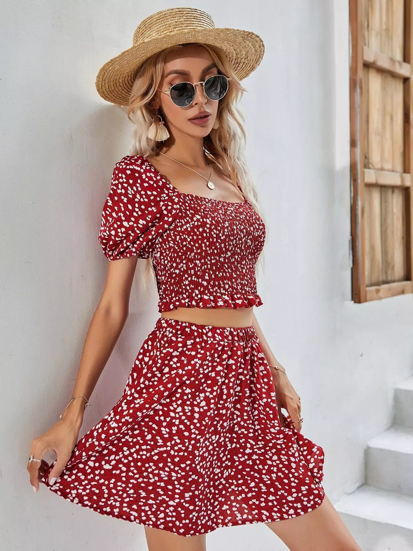 Ditsy Floral Puff Sleeve Shirred Top and Skirt Set