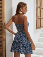 Drawstring Front Ditsy Floral Tube Top With Skirt