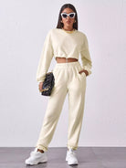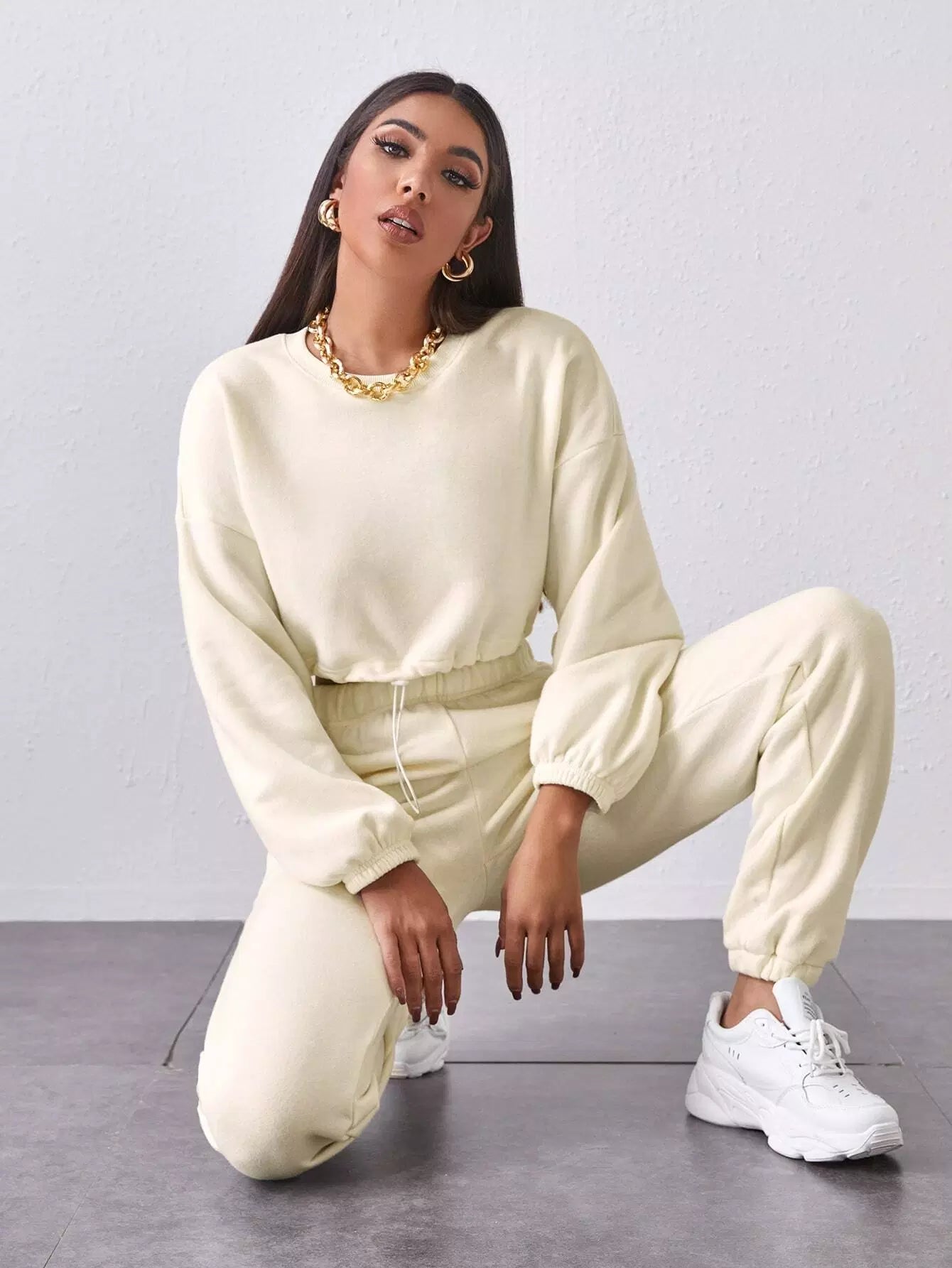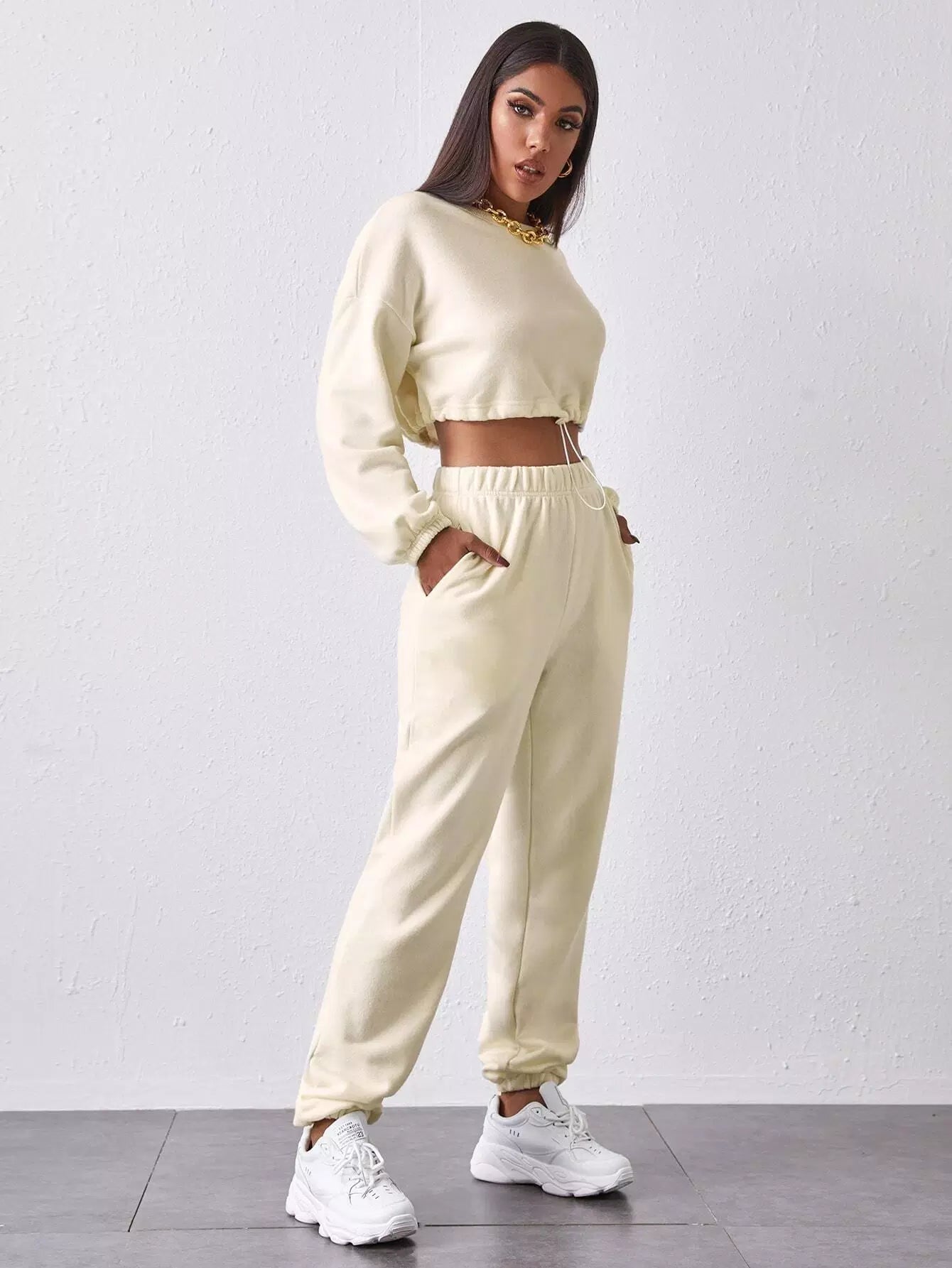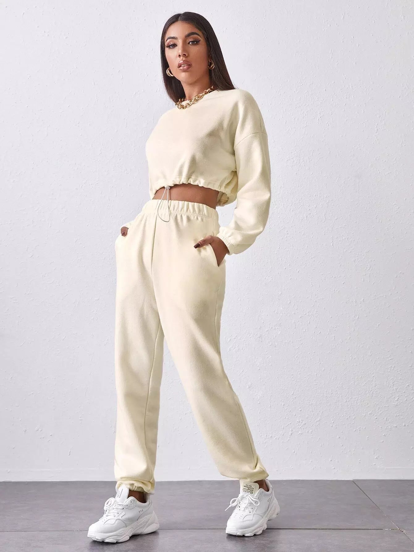 Drawstring Hem Drop Shoulder Pullover & Sweatpants Set