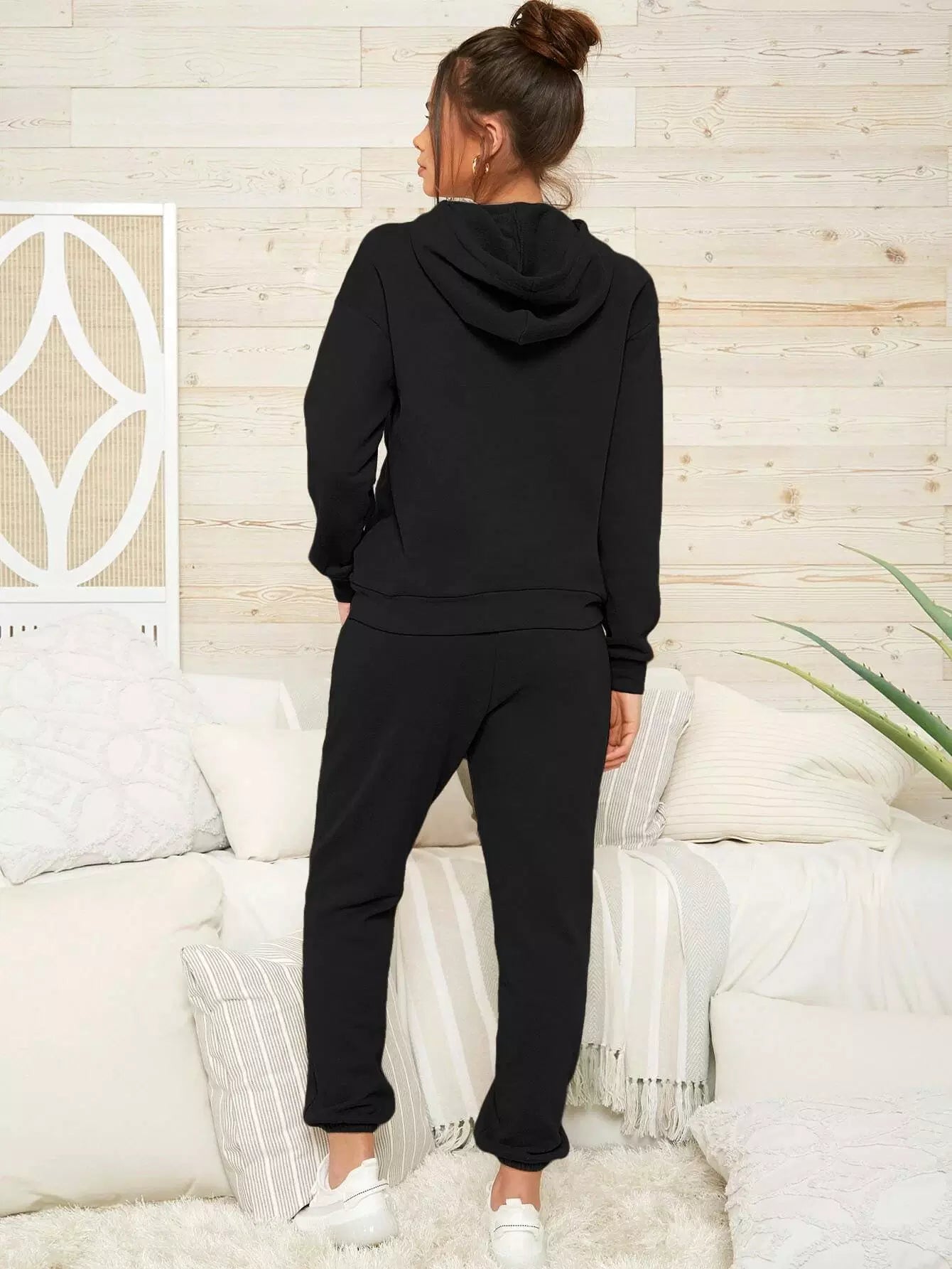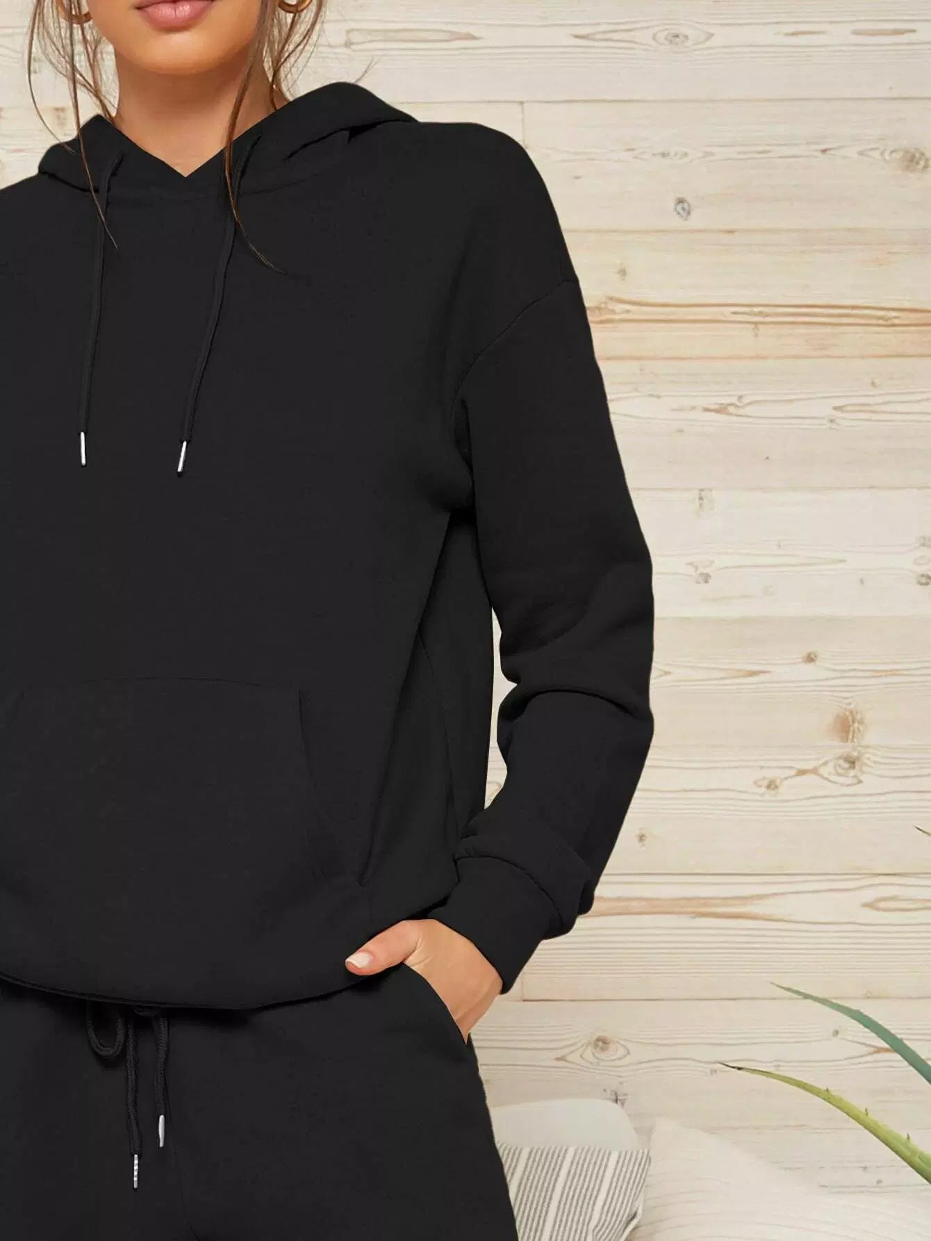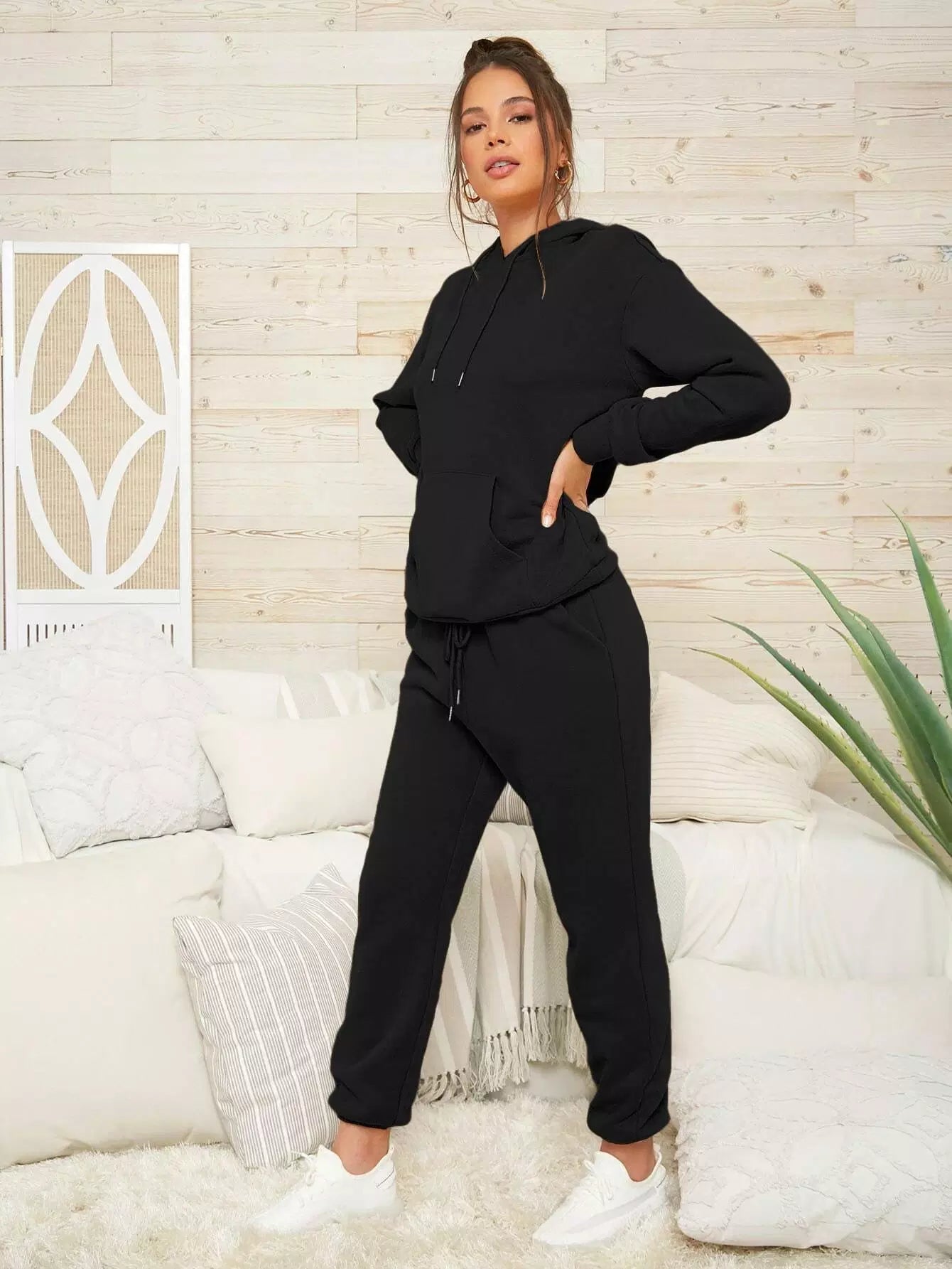 Drawstring Hoodie & High-Rise Joggers Set