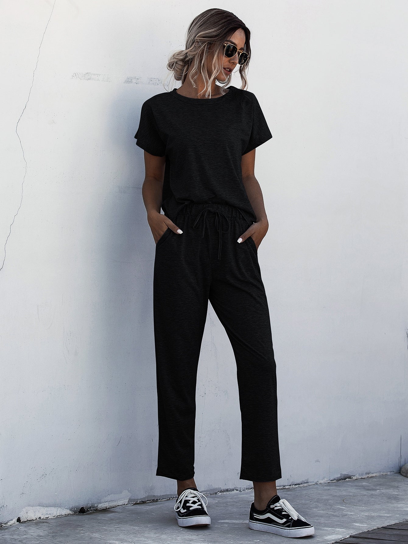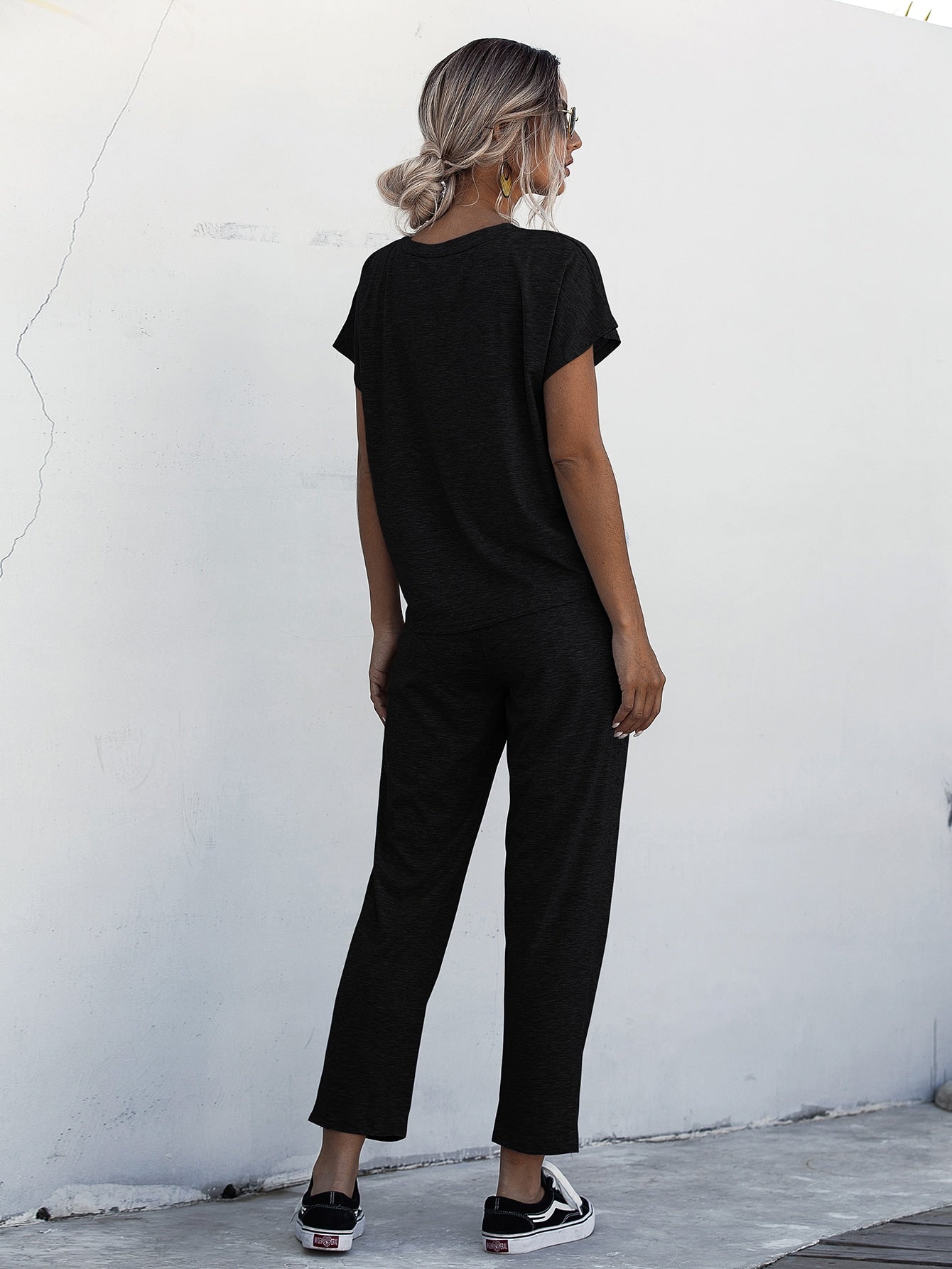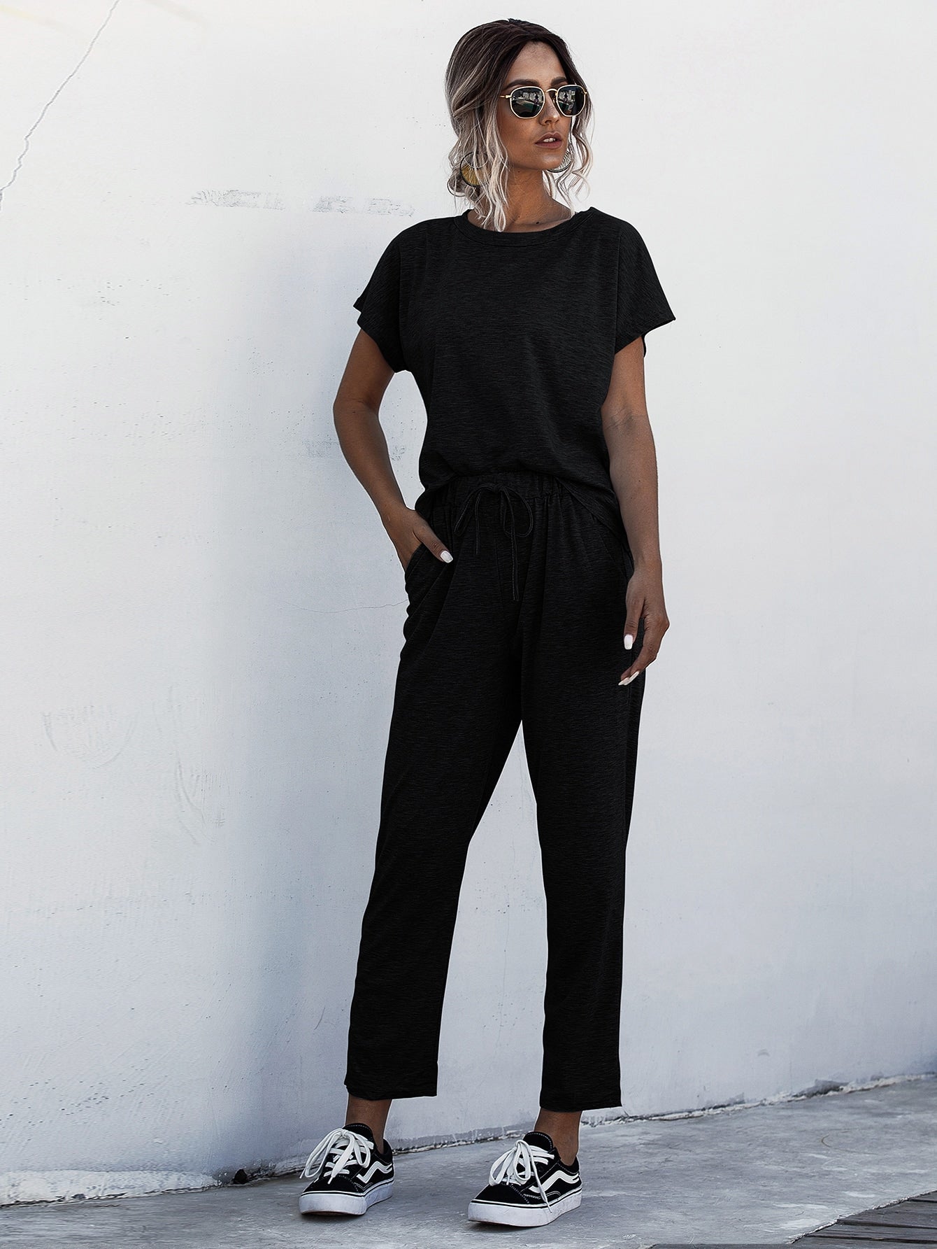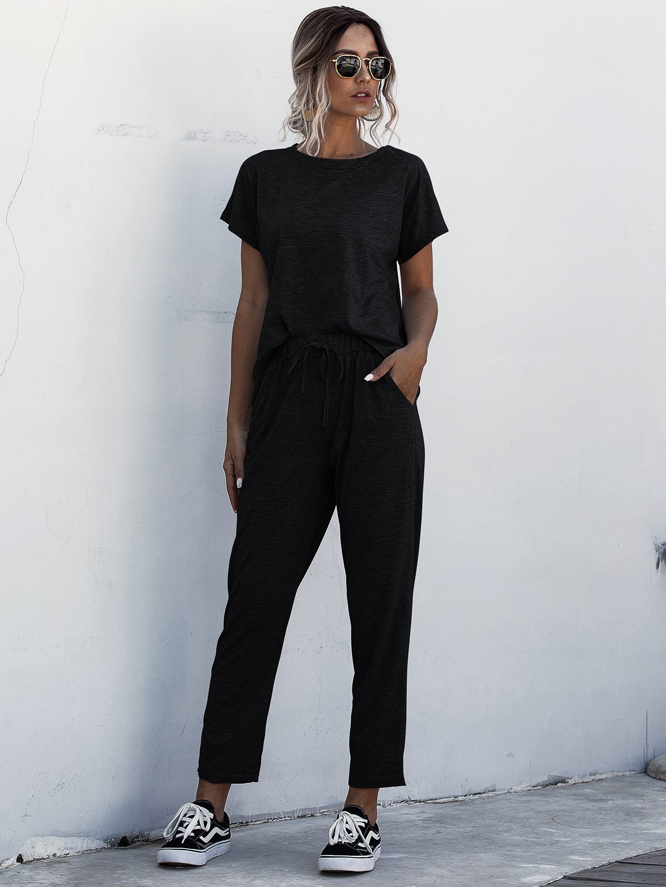 Solid Batwing Sleeve Tee & Drawstring Sweatpants