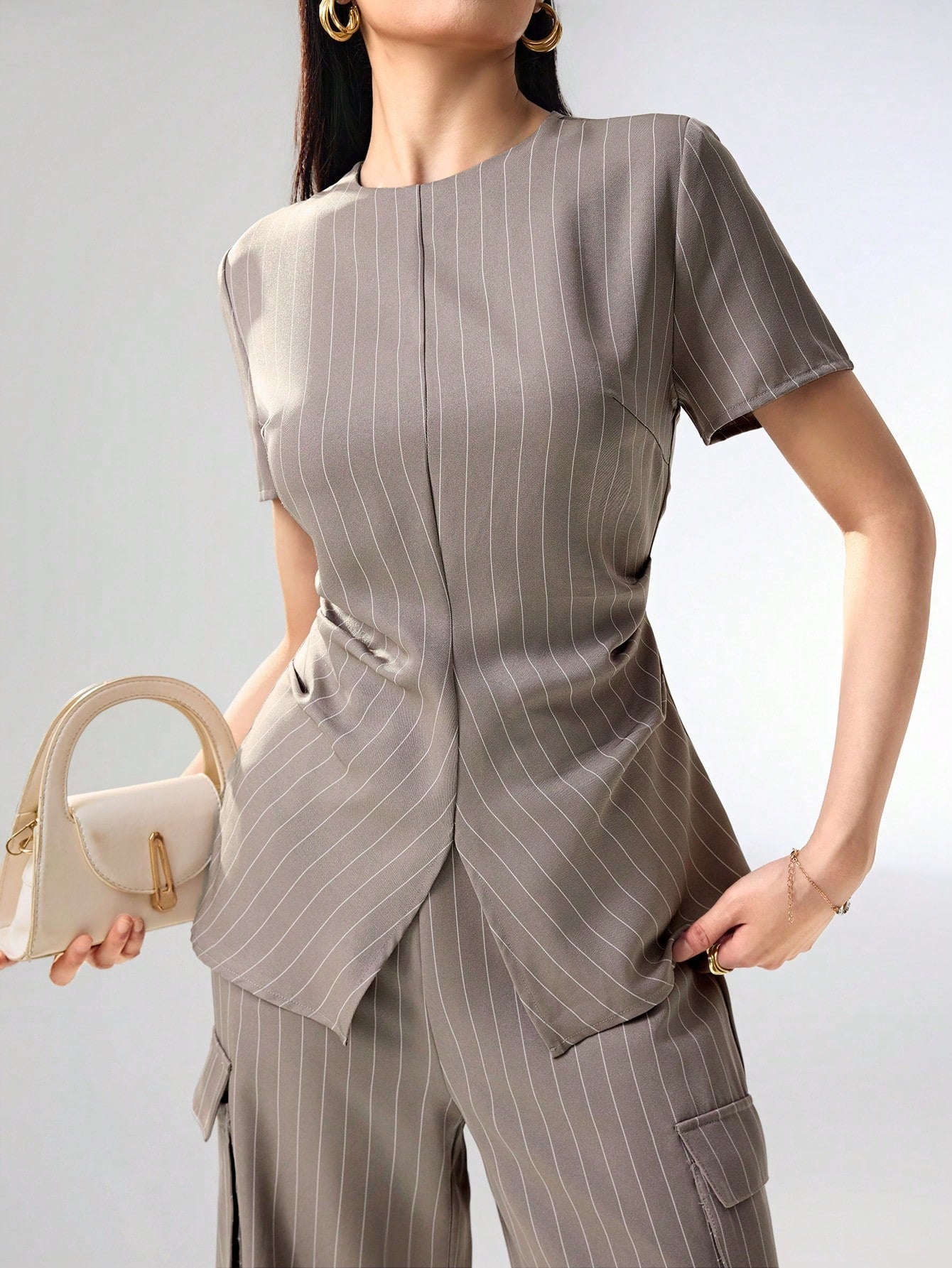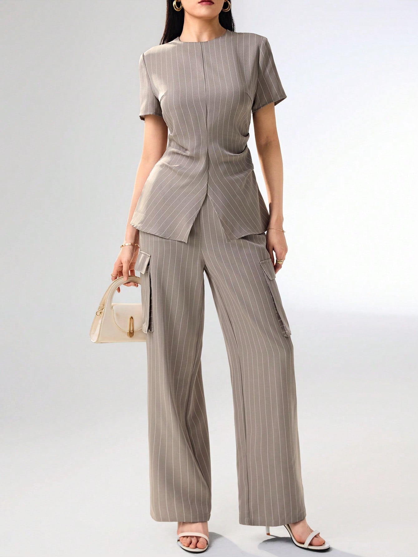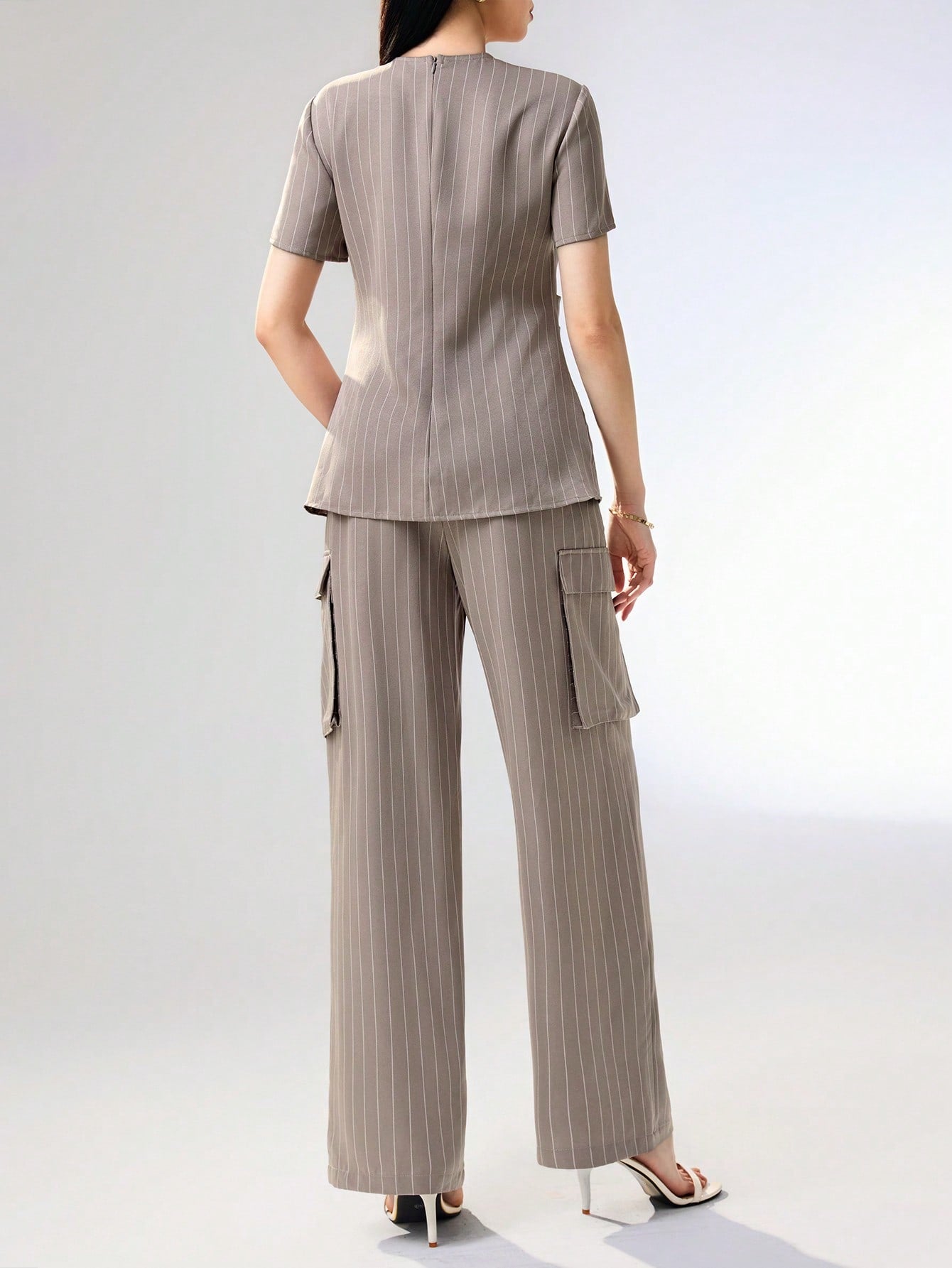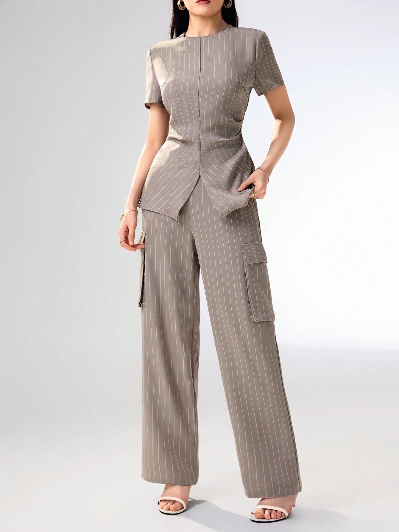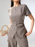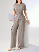 Heiryn Women 2 Pieces Set: Striped Round Neck Short Sleeve Top And Shorts Women Summer Sets