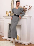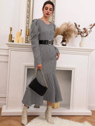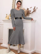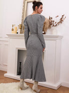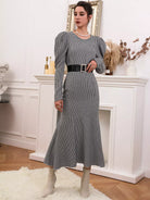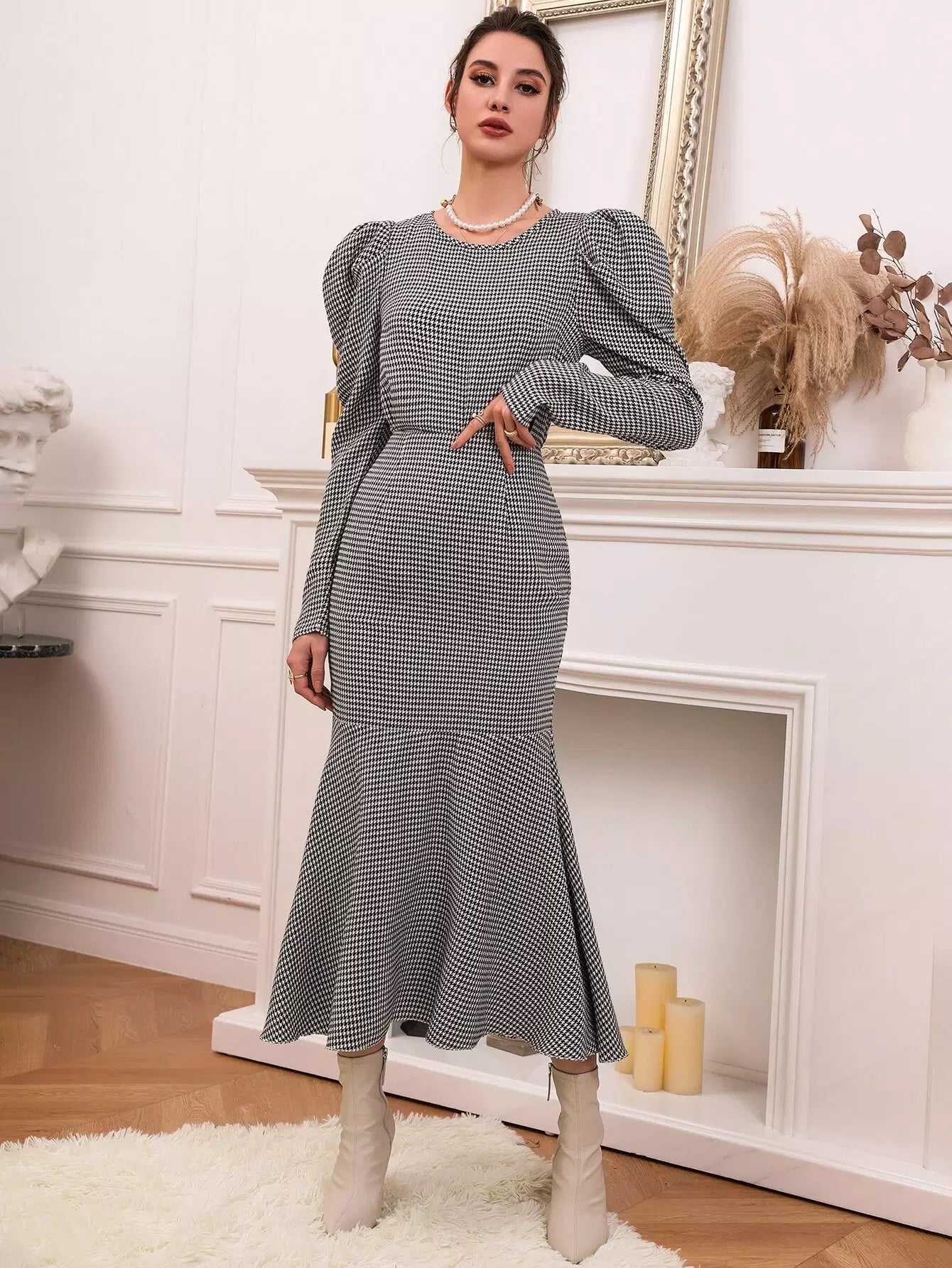 Houndstooth Leg-of-mutton Sleeve Top & Mermaid Skirt