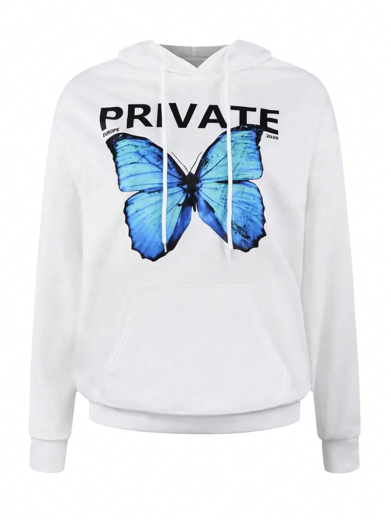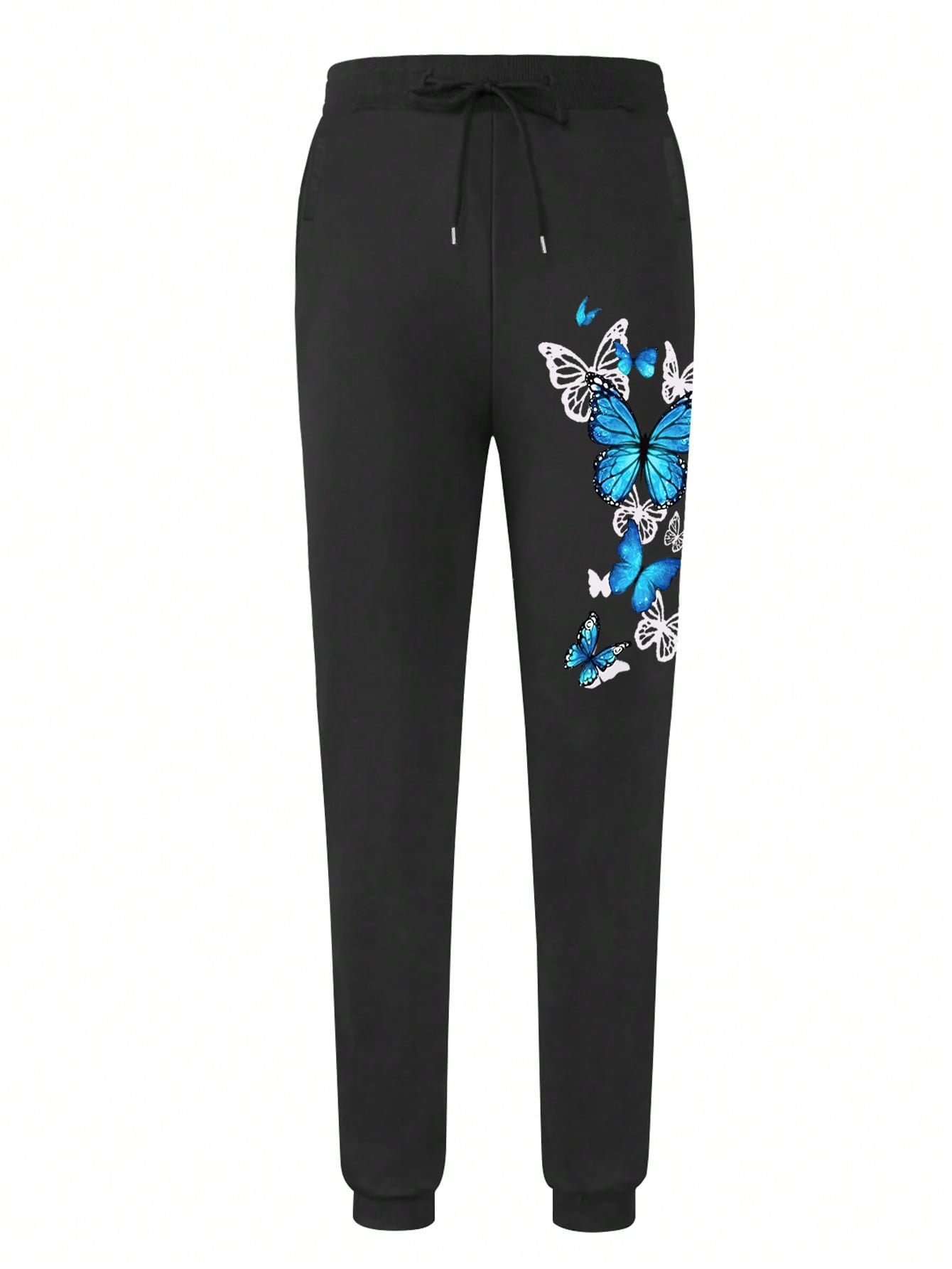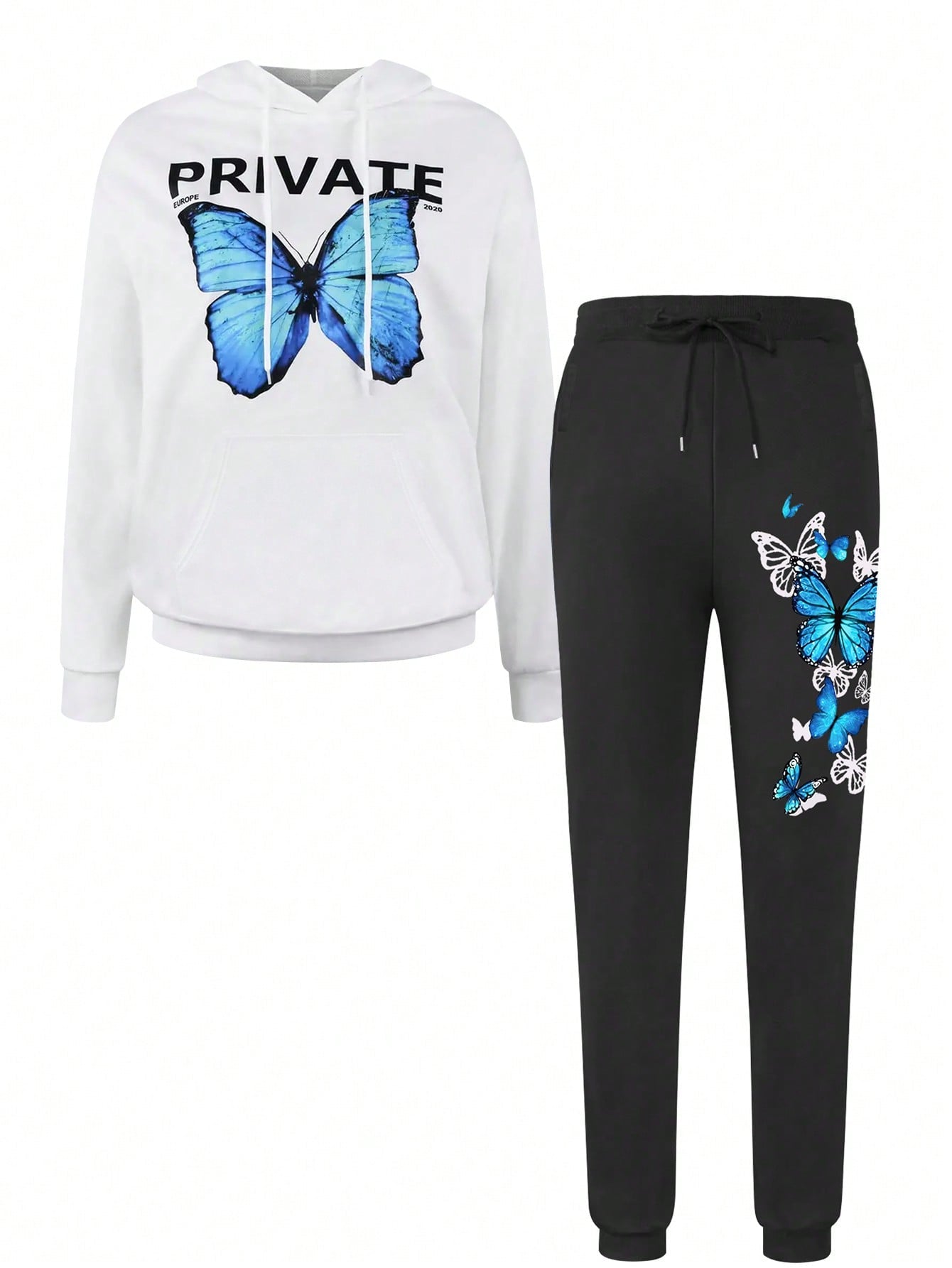 women INAWLY 2pcs Women Butterfly Print Hooded Long Sleeve Top With Pockets And Drawstring Waist Pants Set