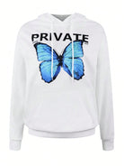 INAWLY 2pcs Women Butterfly Print Hooded Long Sleeve Top With Pockets And Drawstring Waist Pants Set