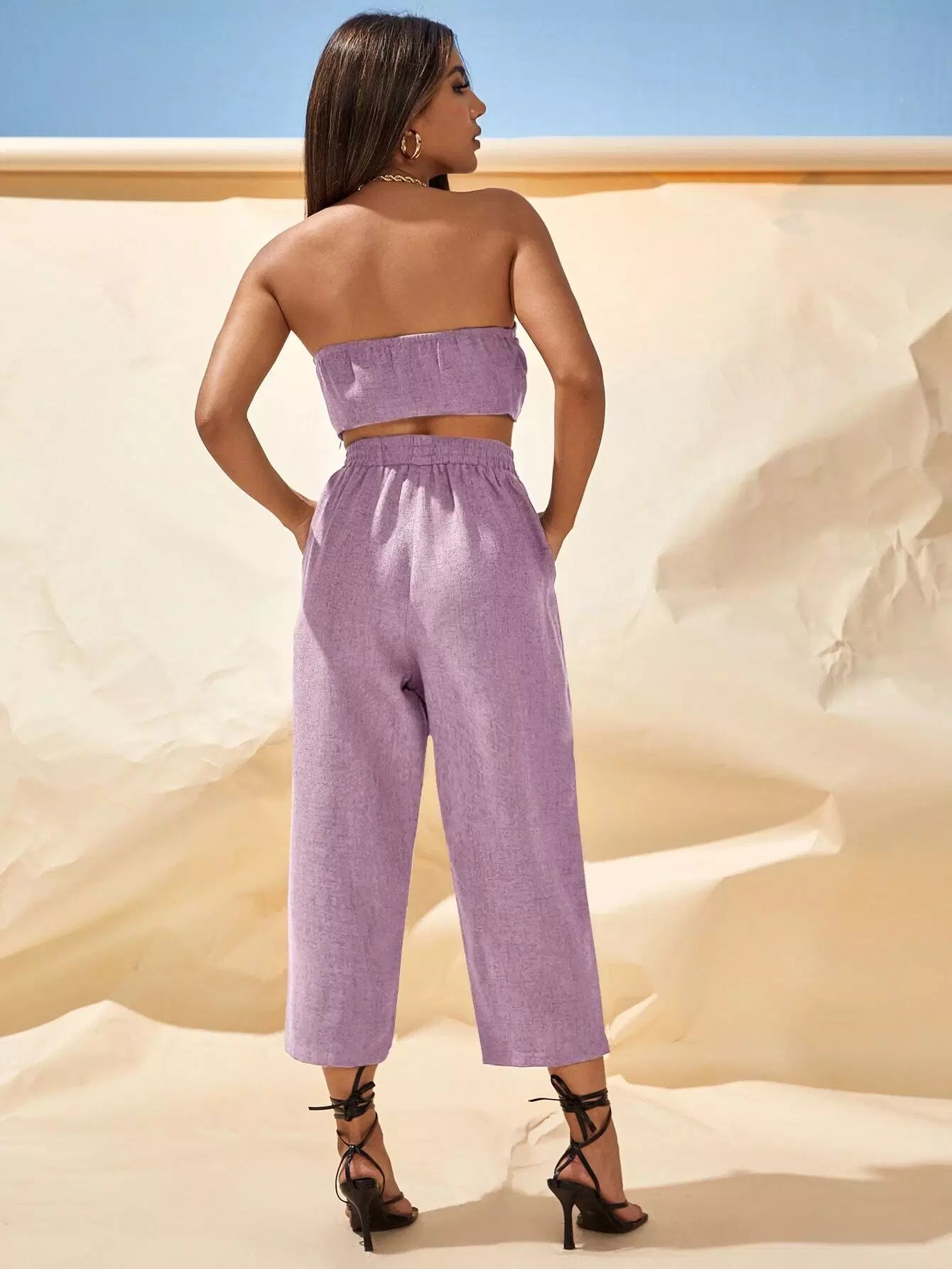 Knotted Crop Tube Top & Wide Leg Pants Set