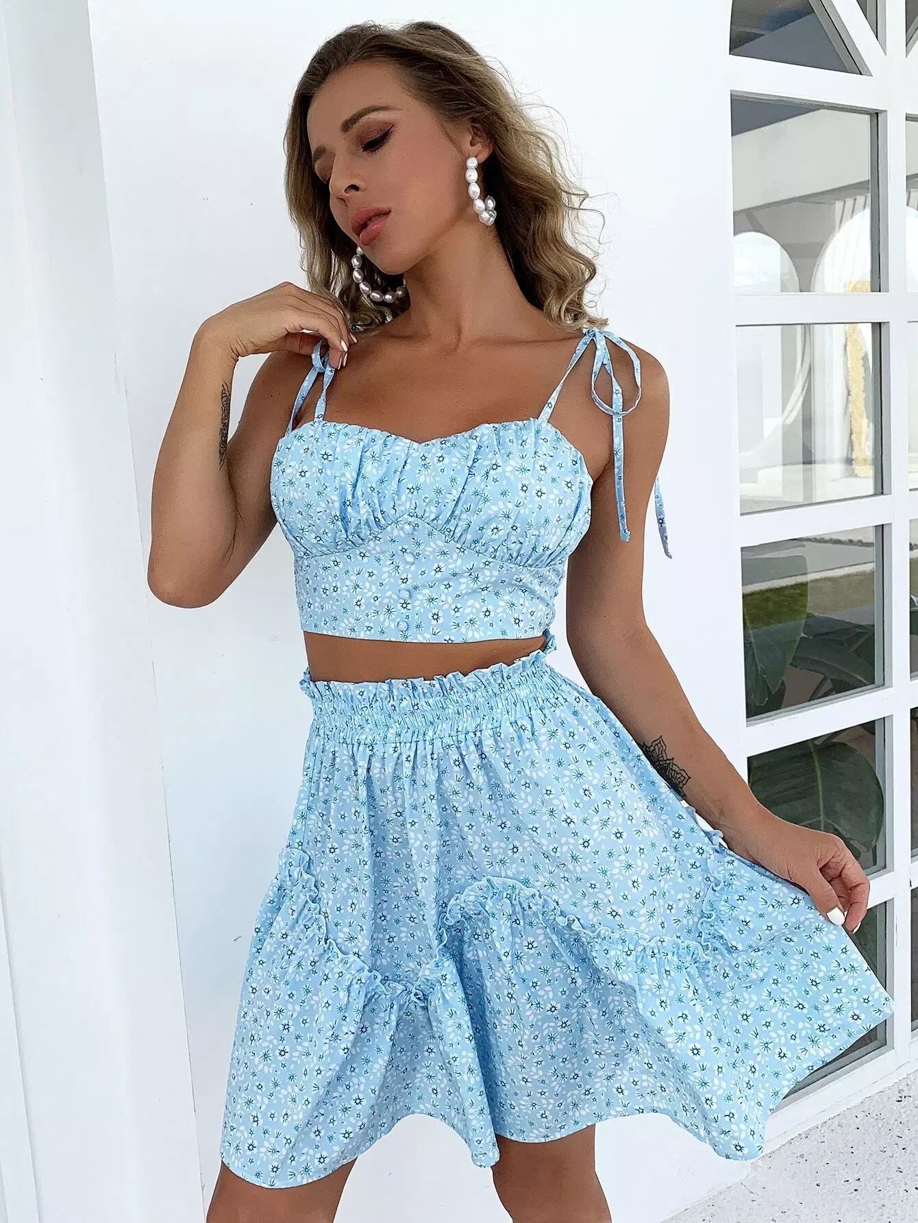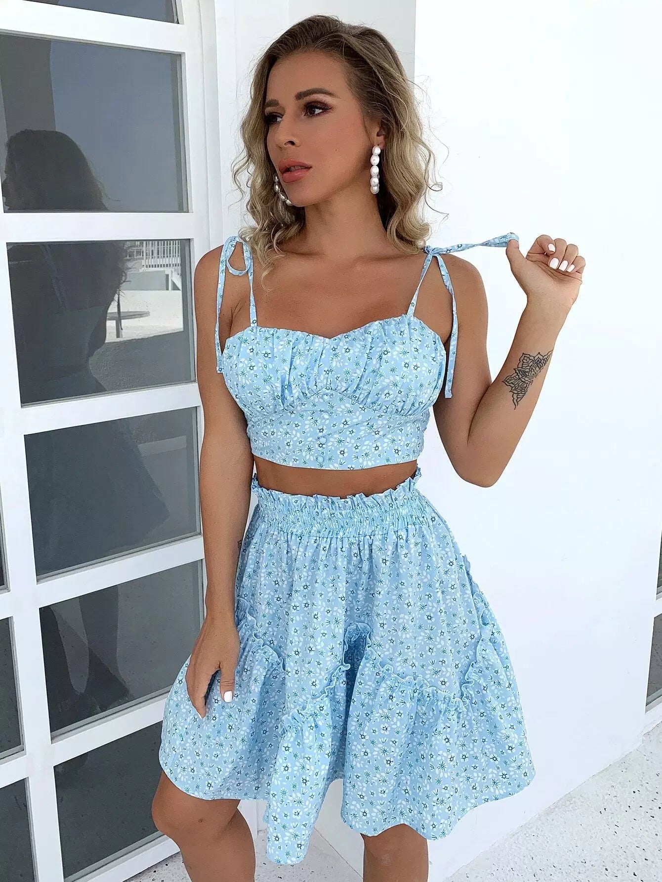 Knotted Shoulder Ditsy Floral Cami Top & Skirt Set