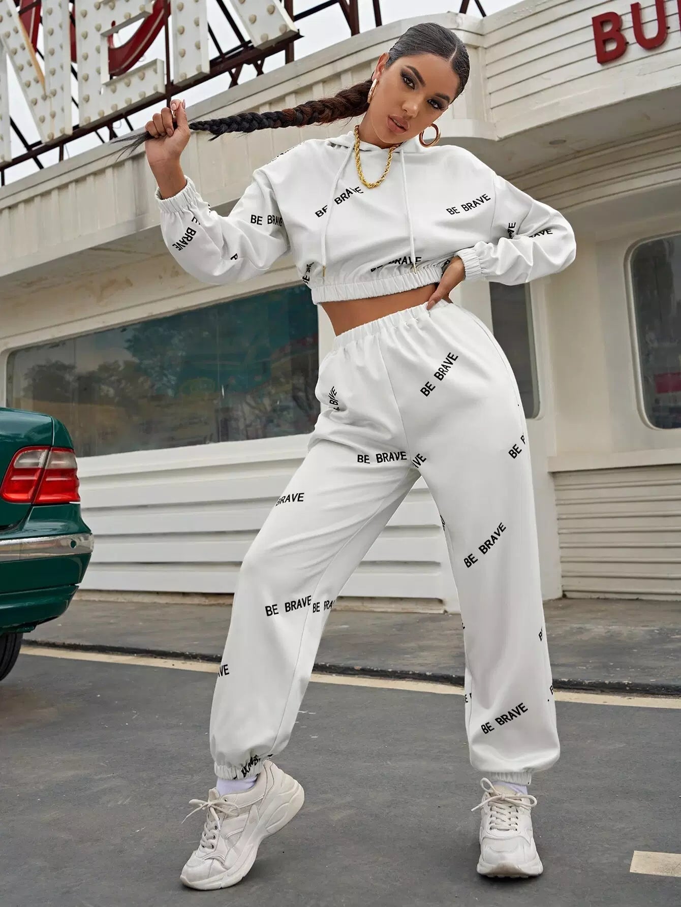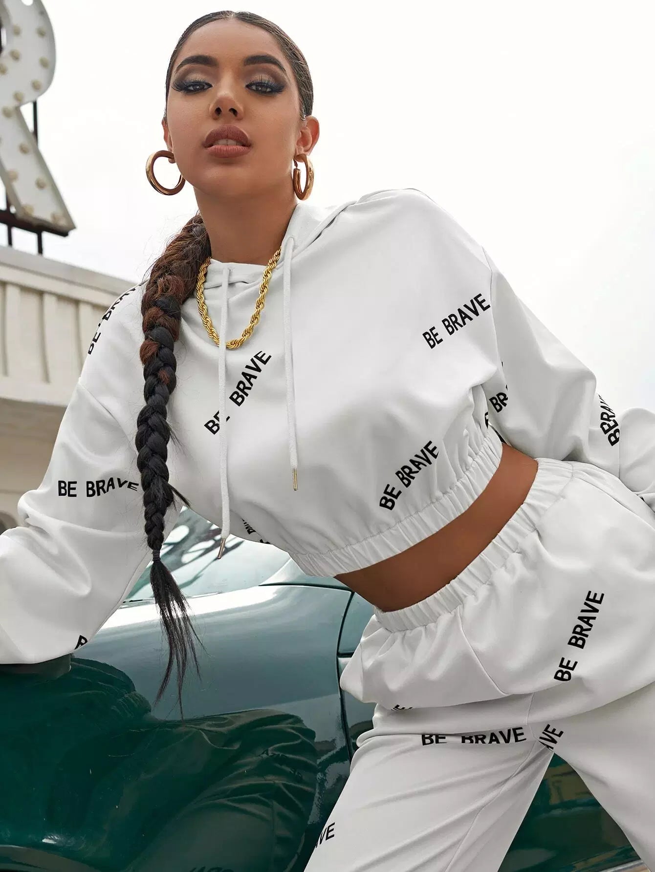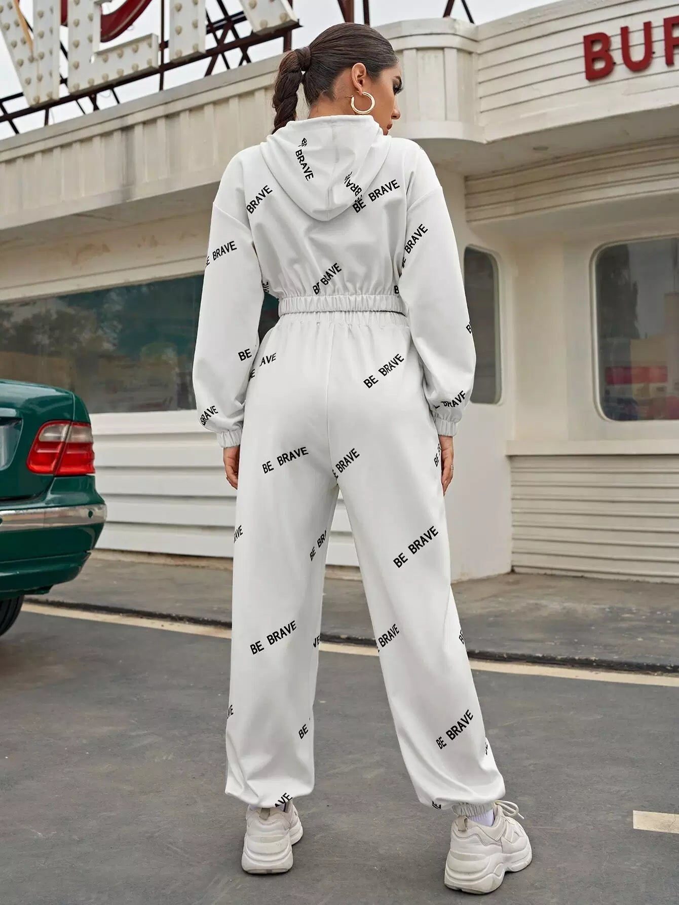 Letter Graphic Drawstring Hoodie & Sweatpants Set