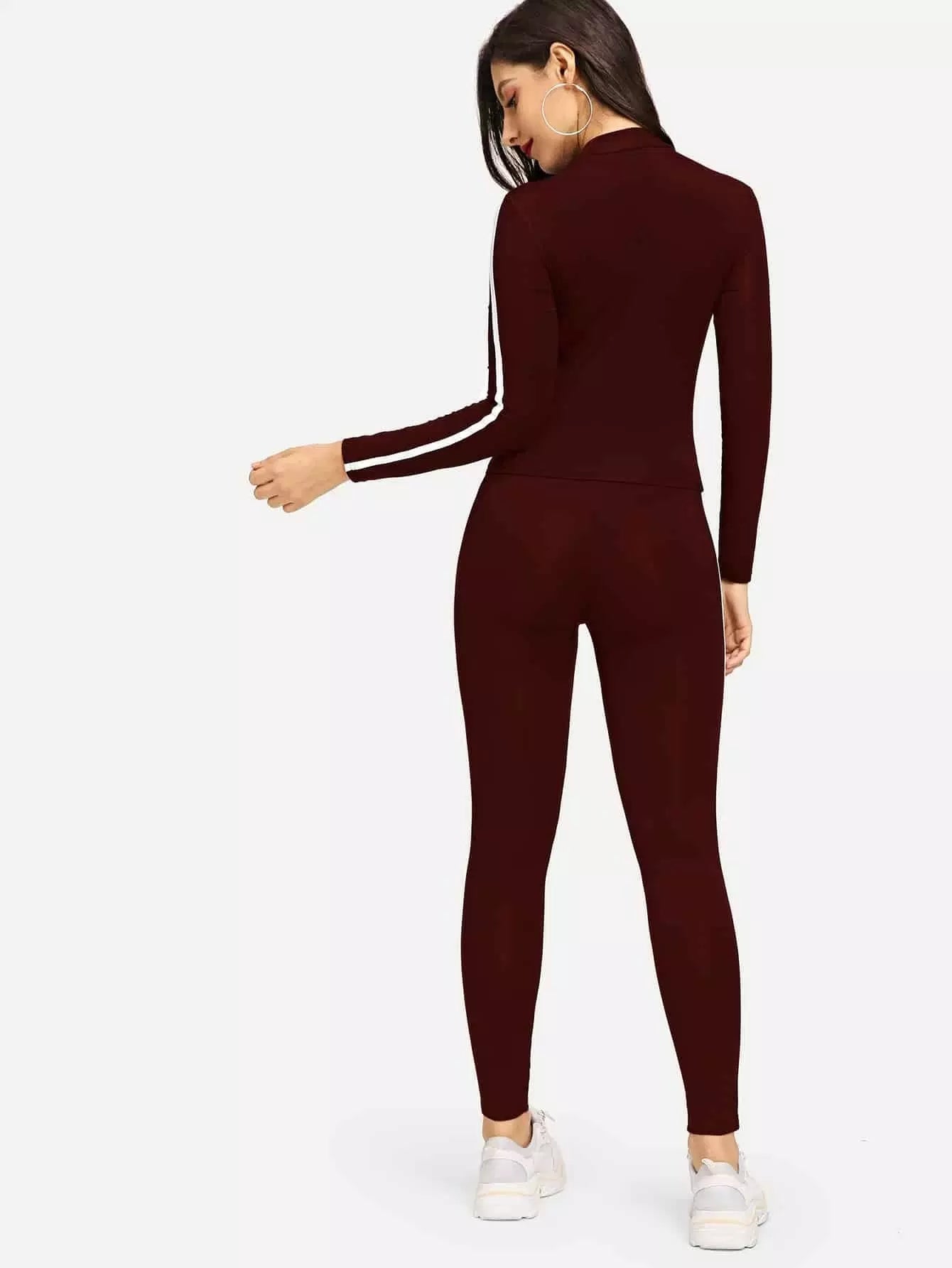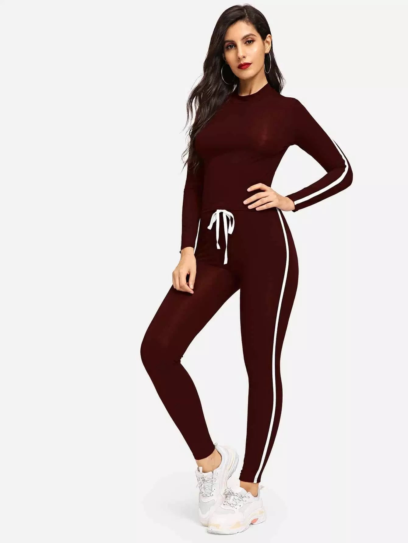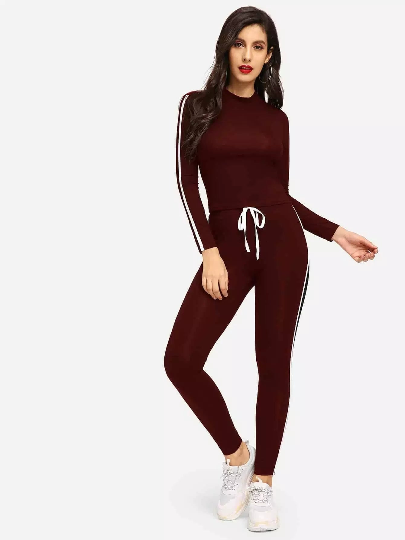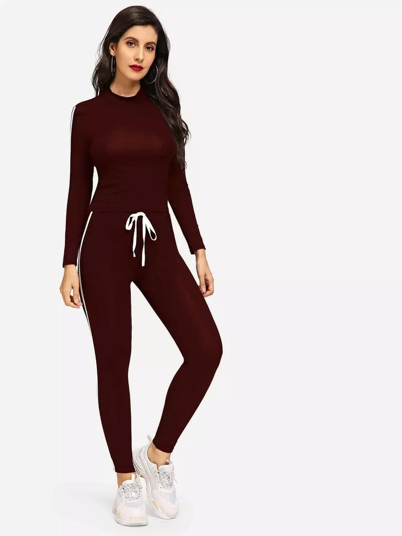 Mock Neck Striped Top & Drawstring Waist Pants Set