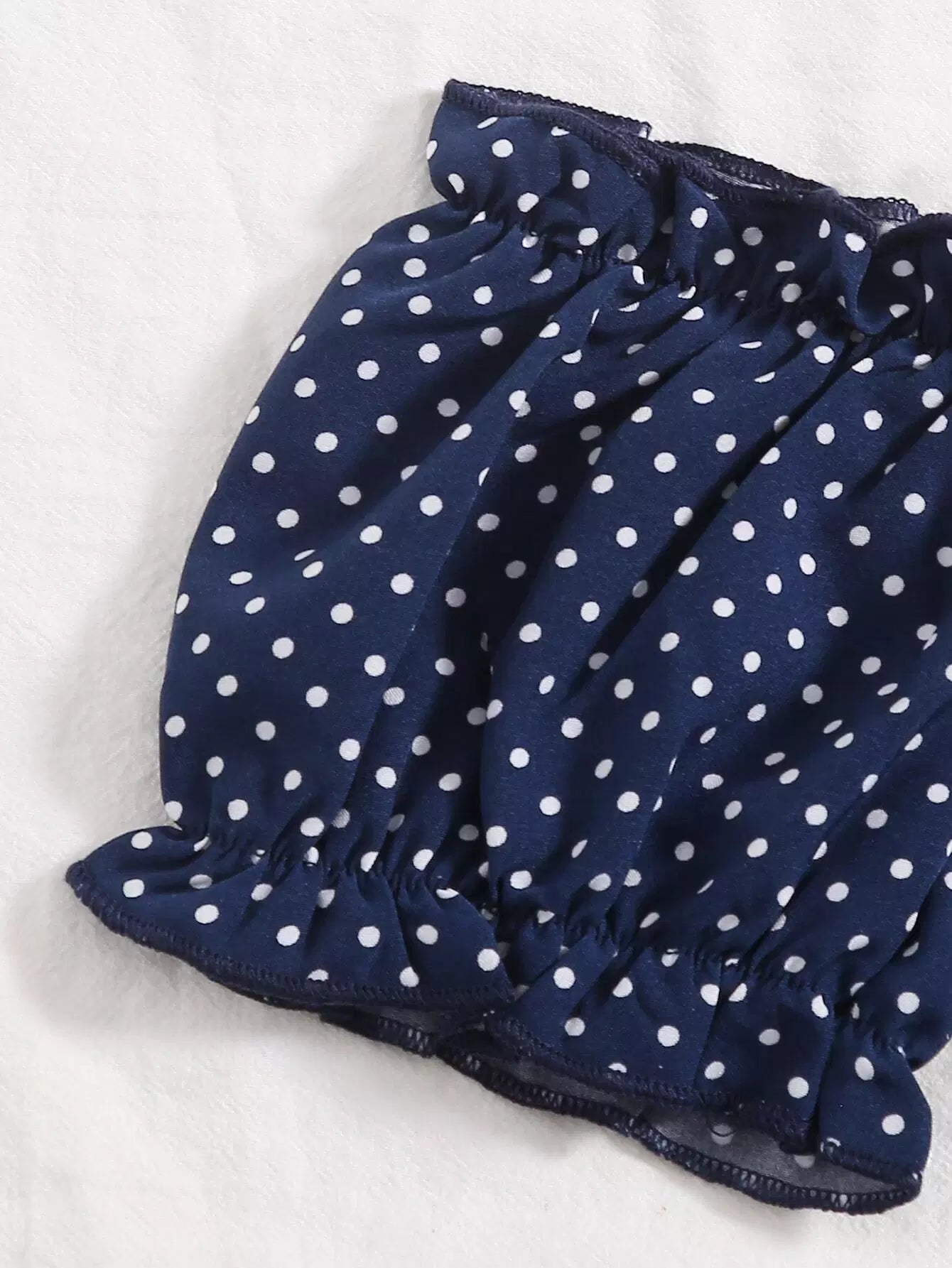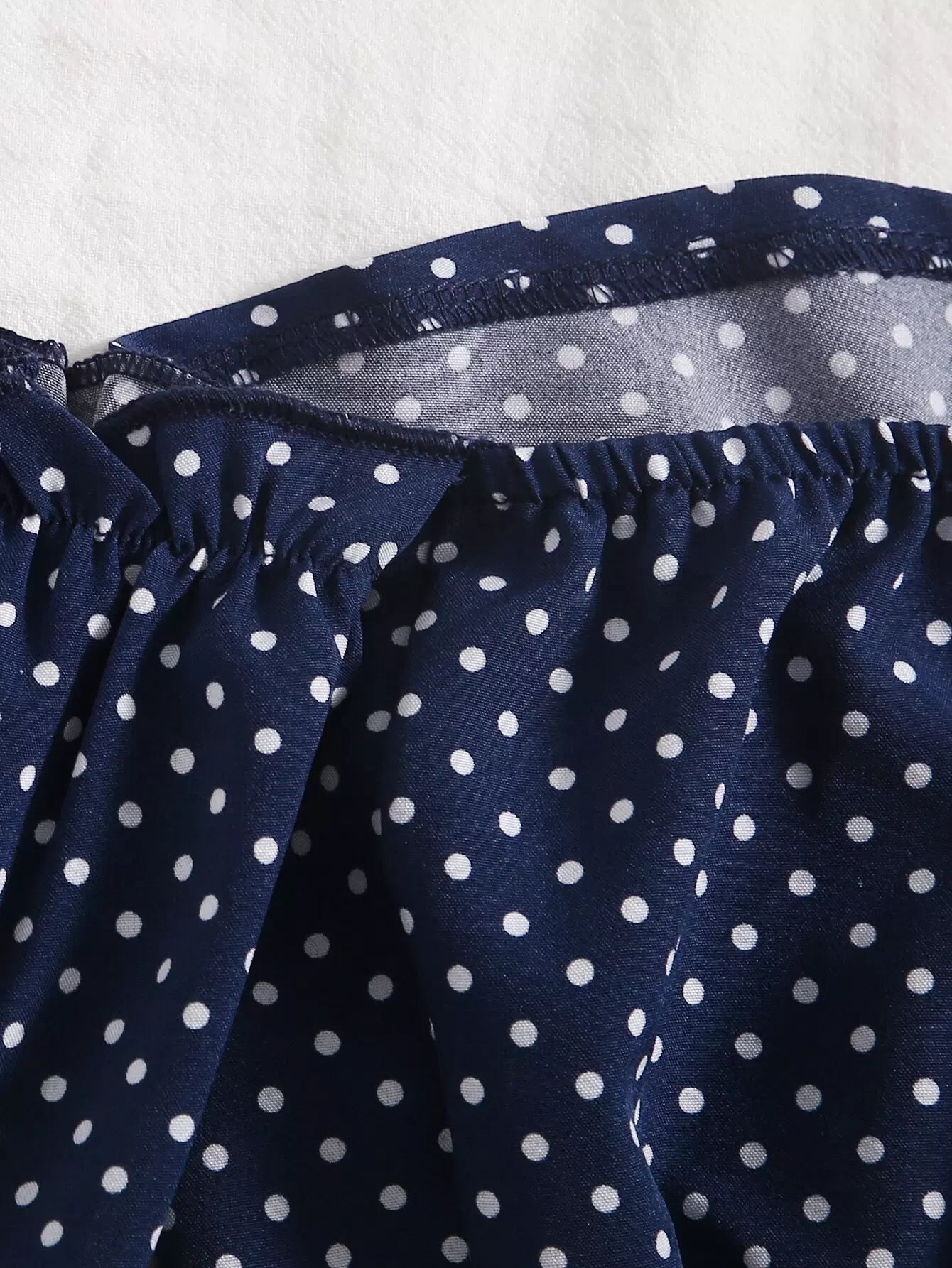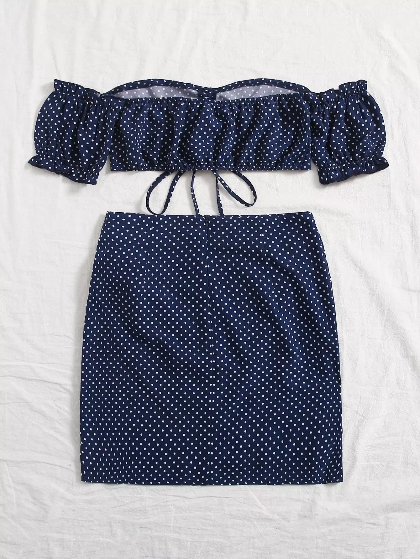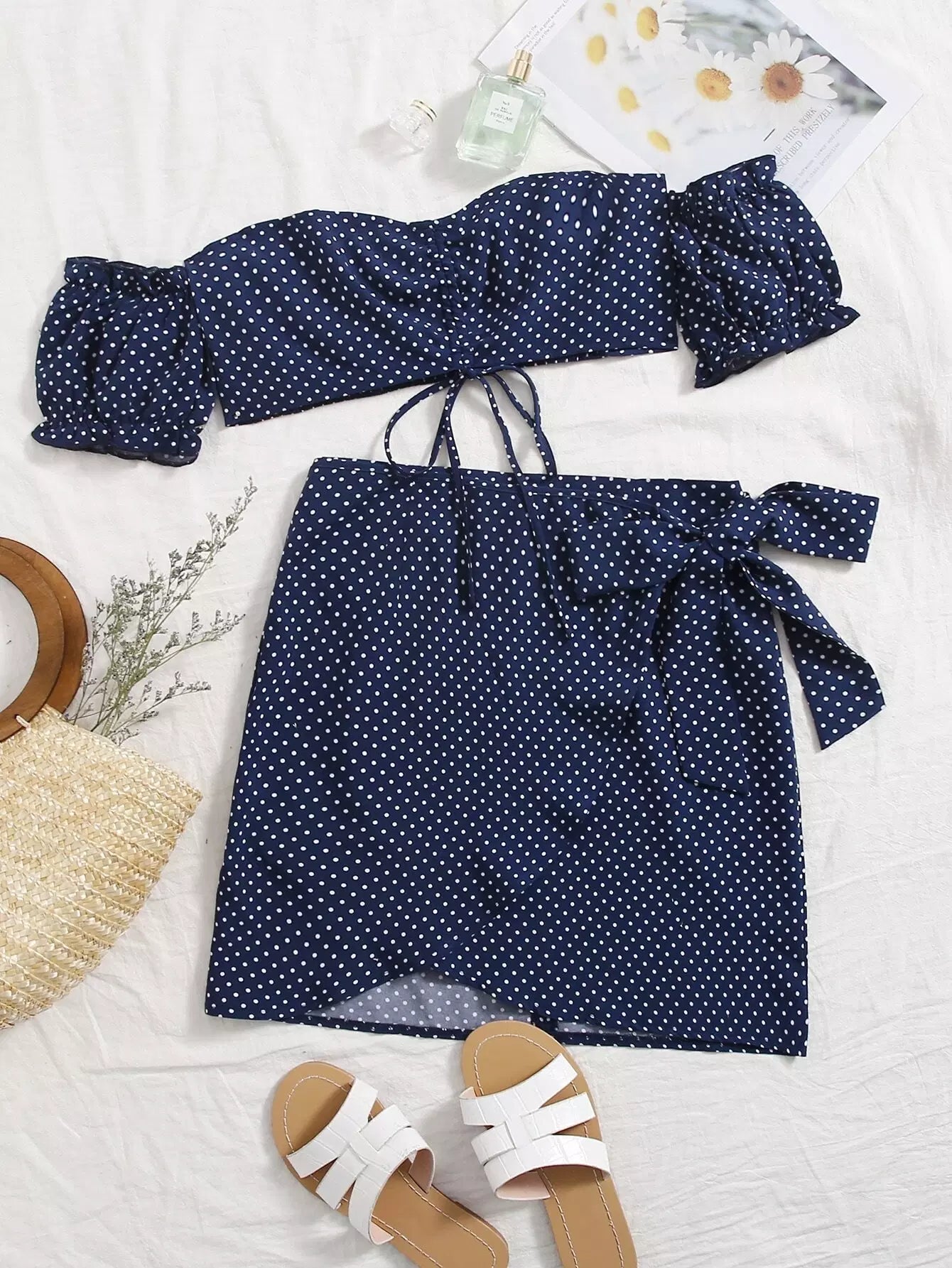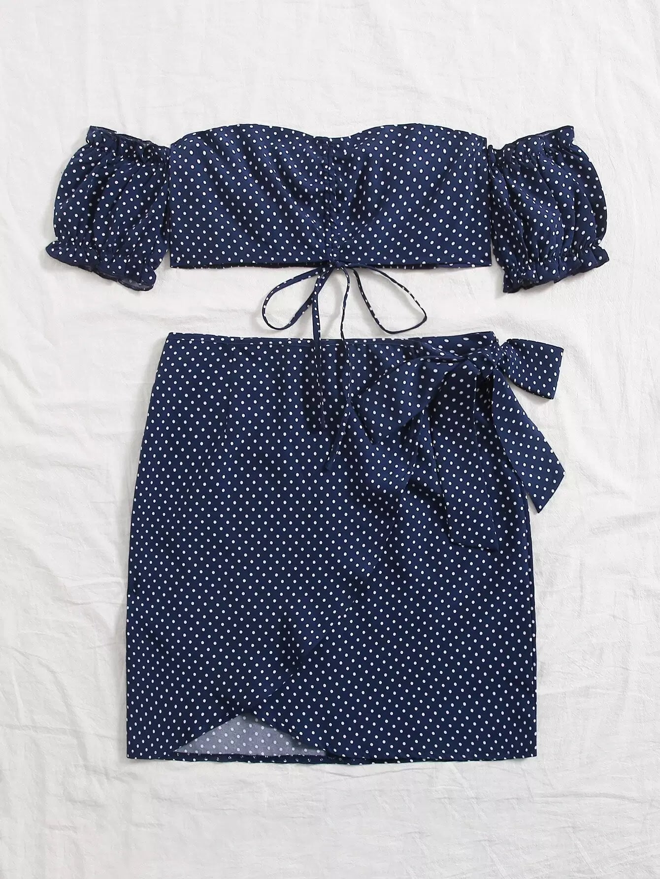 Off Shoulder Polka Dot Bandeau Top & Wrap Knot Skirt Set