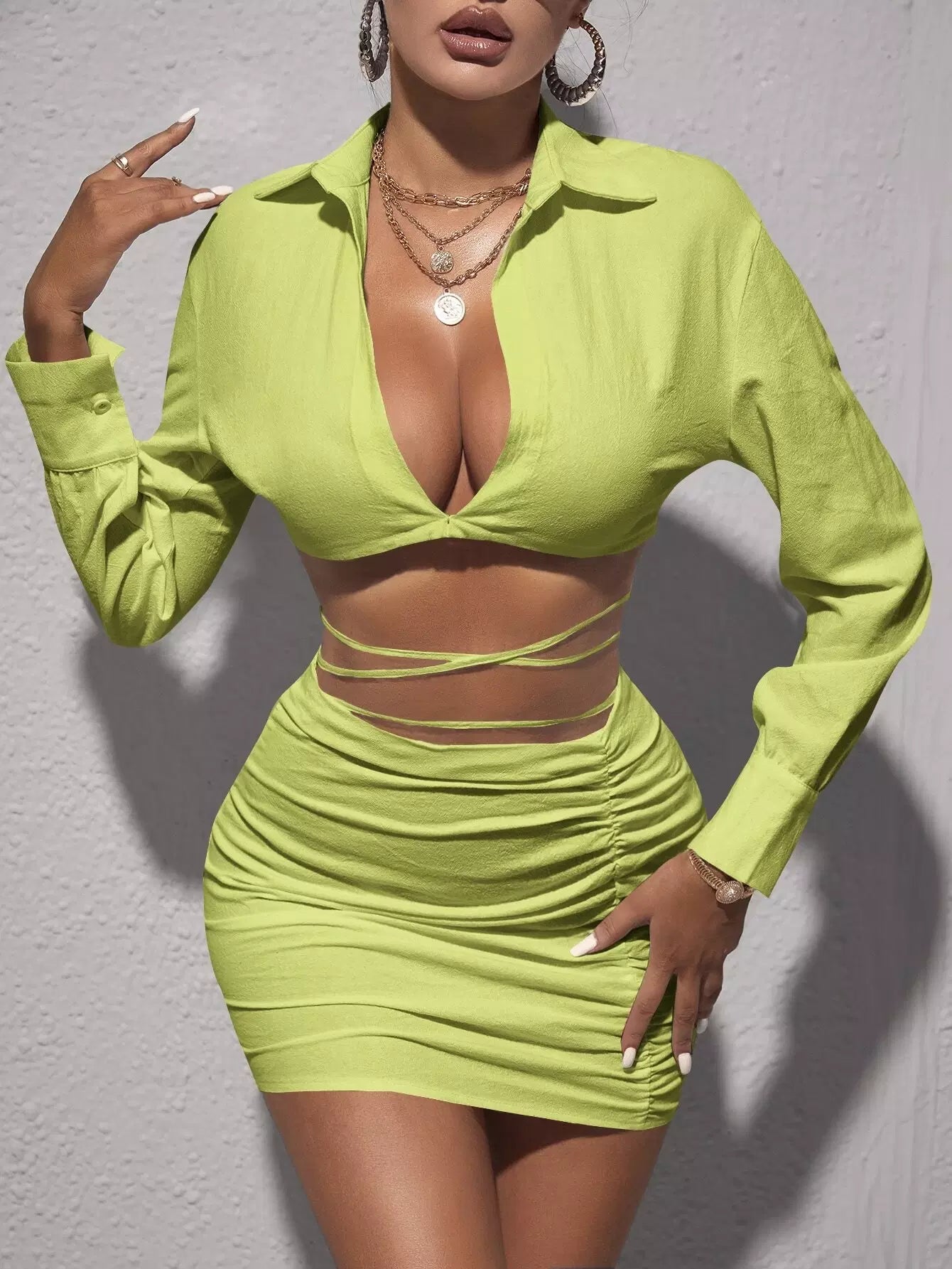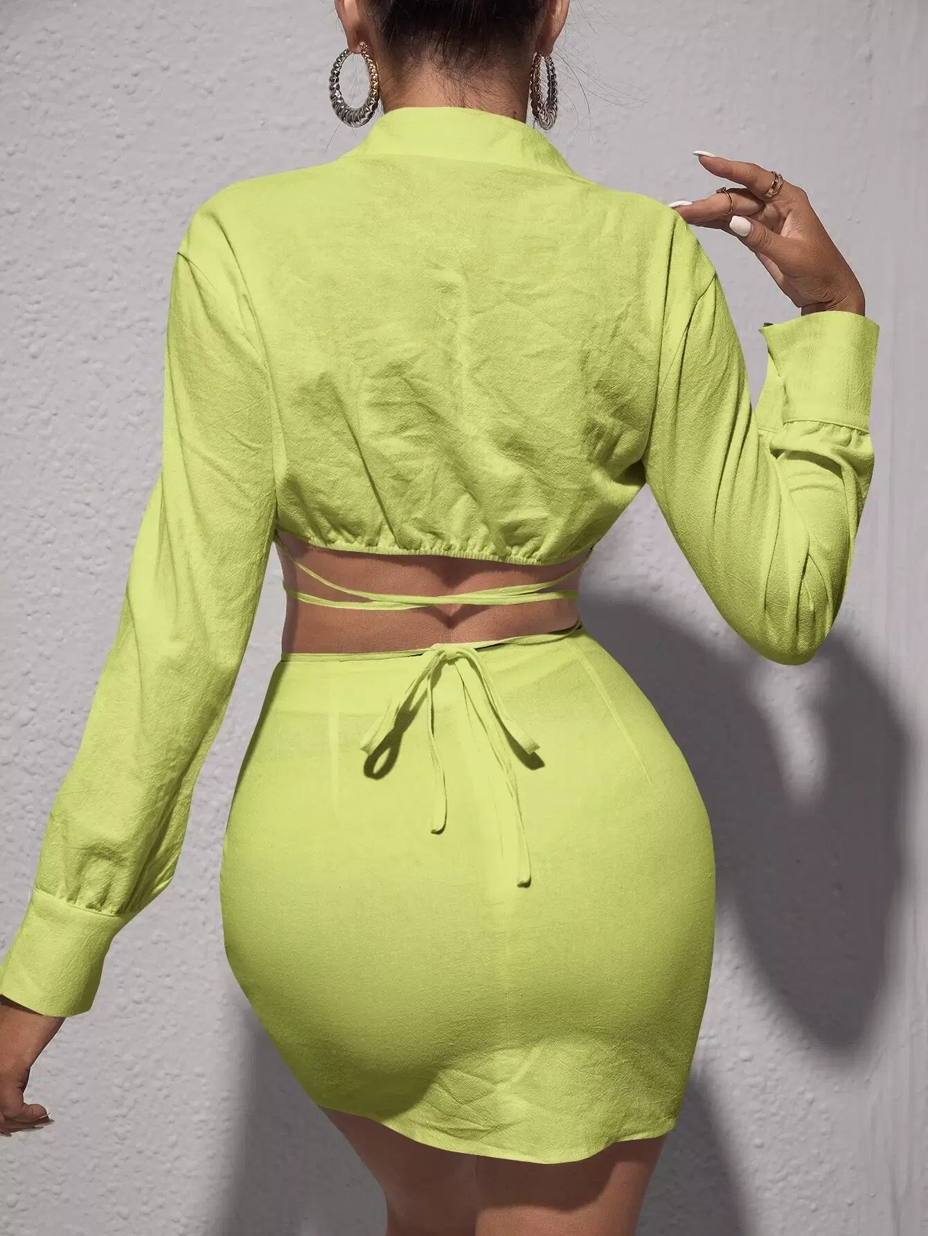 Plunging Neck Crop Top & Criss Cross Tie Back Bodycon Skirt