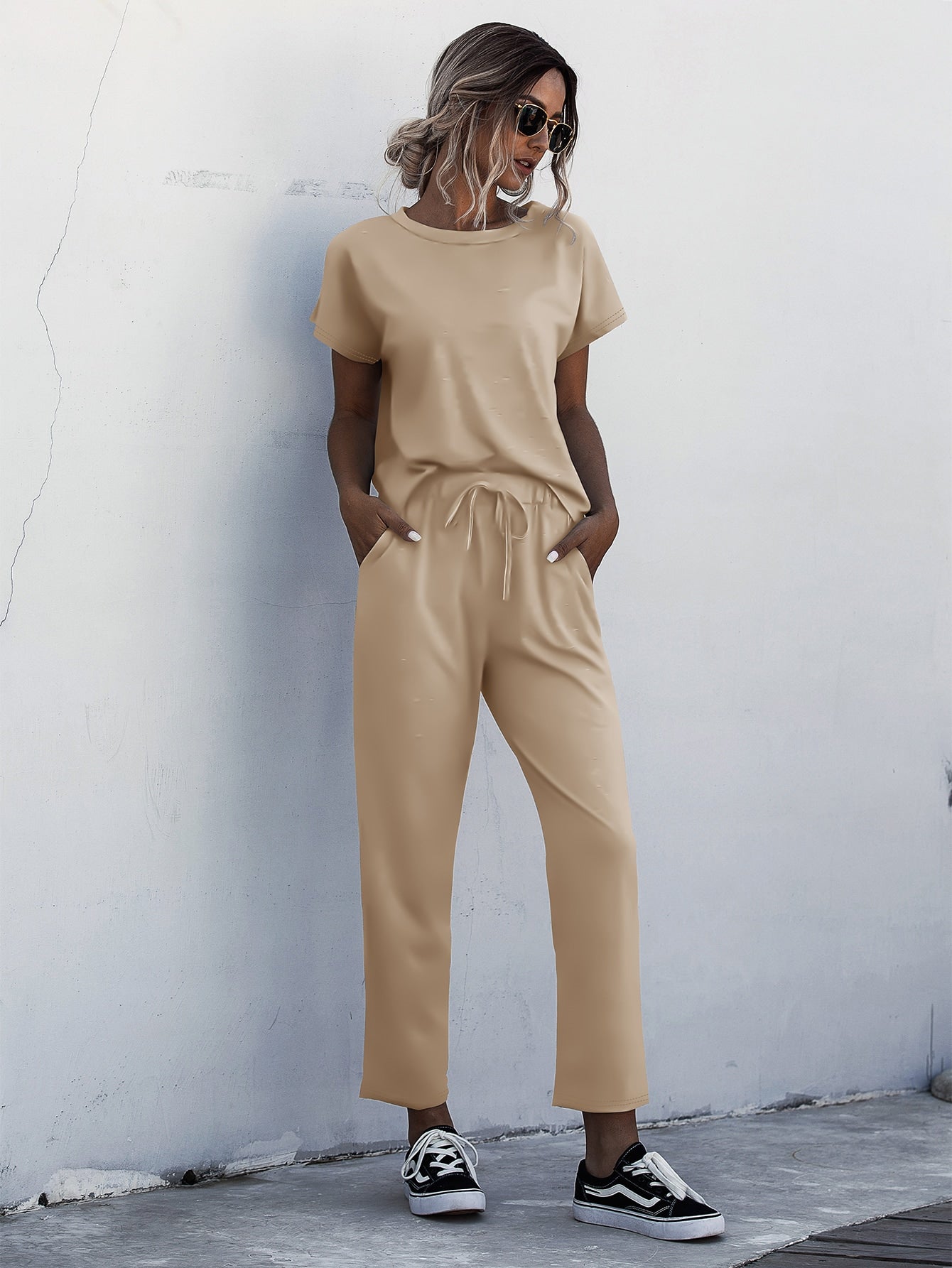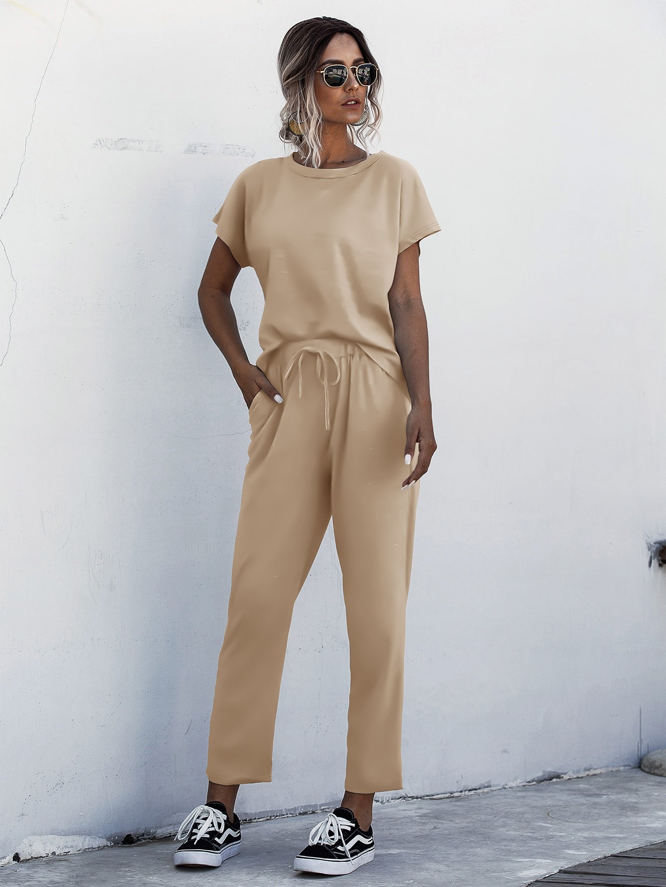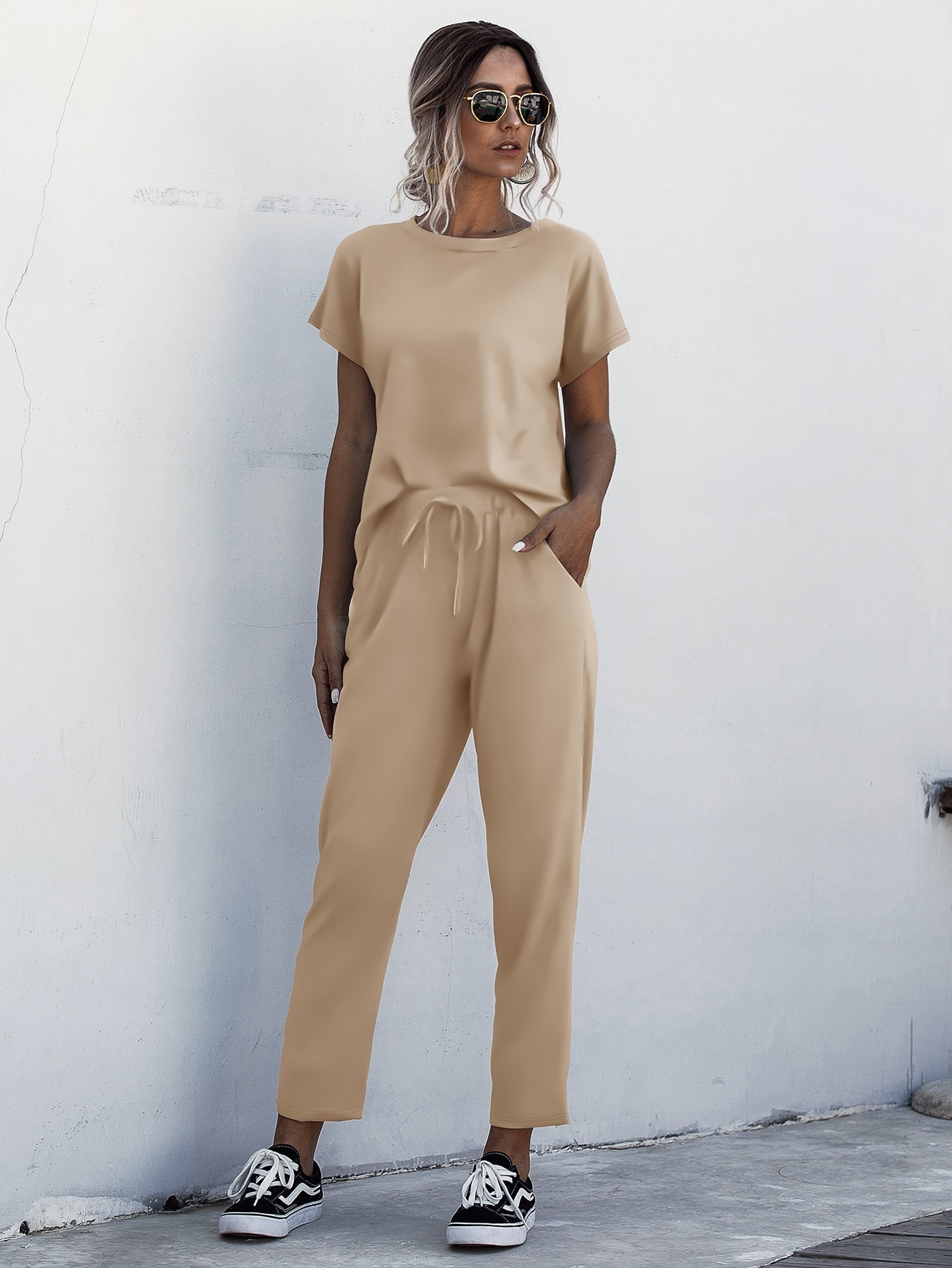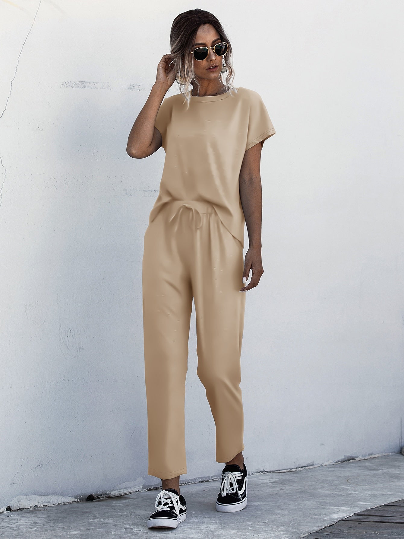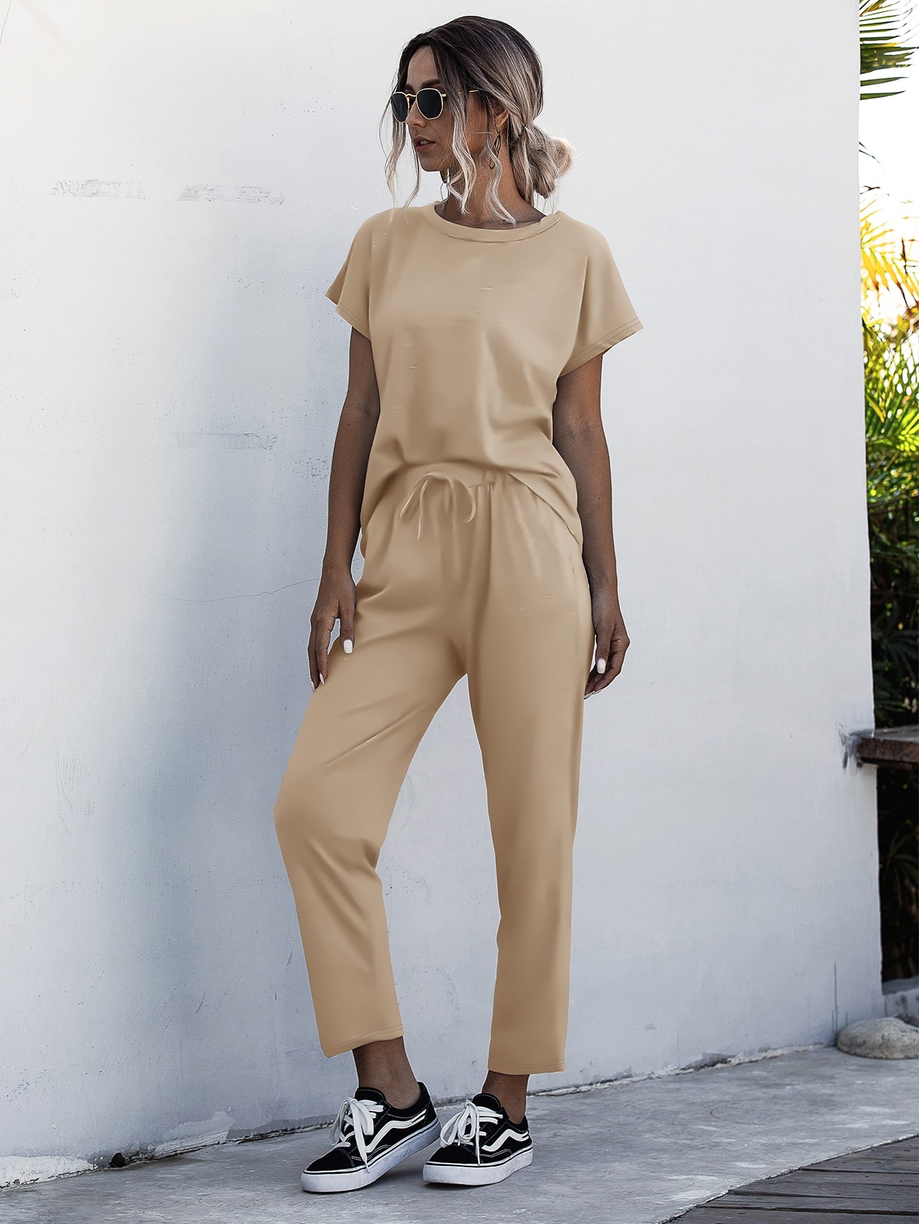 Batwing Sleeve Tee With Drawstring Sweatpants