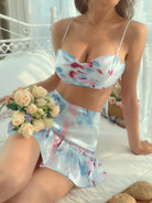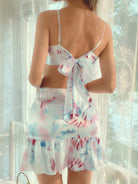 Random Draped Collar Tie Back Cami Top & Ruffle Hem Skirt