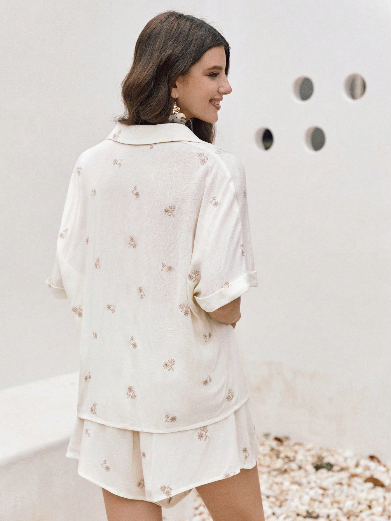 SHEIN Frenchy Delicate Embroidery And Grained Crepe Fabric