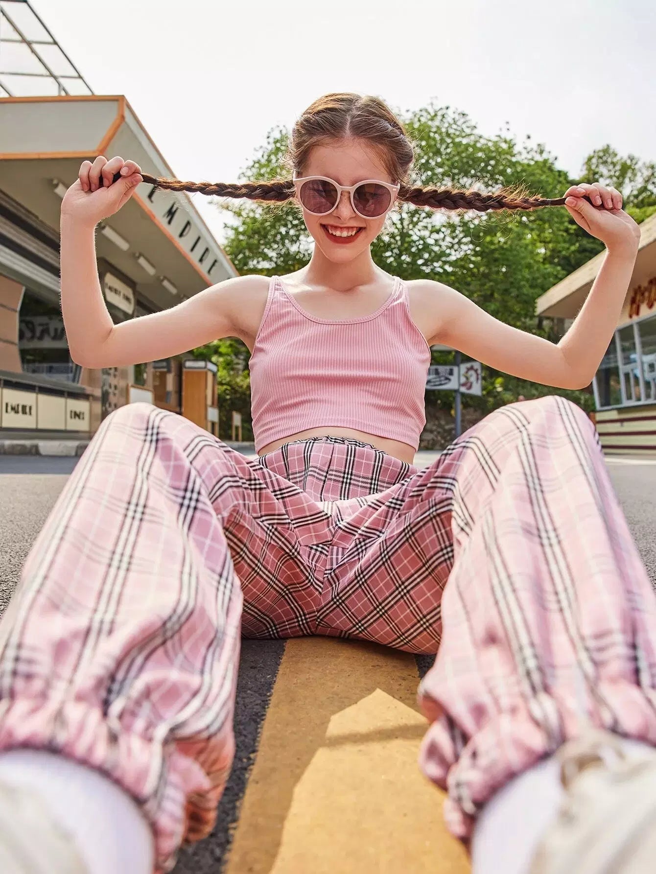 Solid Ribbed Tank Top & Plaid Joggers