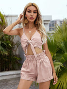 Striped Tie Front Cami Top & Paperbag Waist Shorts Set