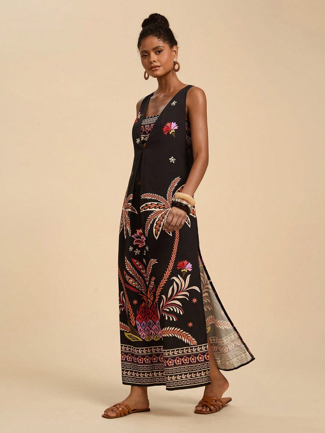 Travachic Summer Outdoor Holiday Date Outfit, Vacation V-Neck Side- Slit Blouse And Strapless Top Without Belt