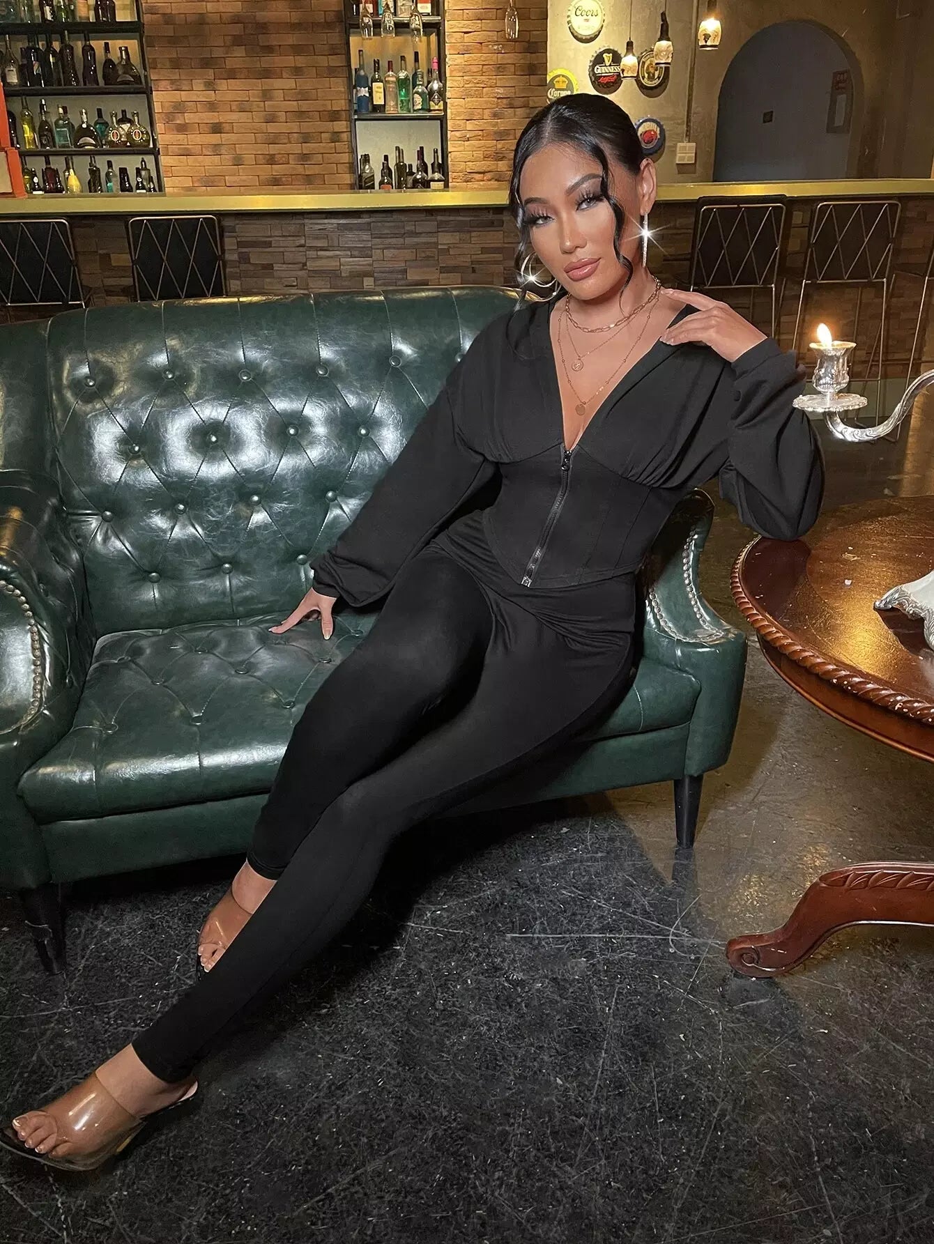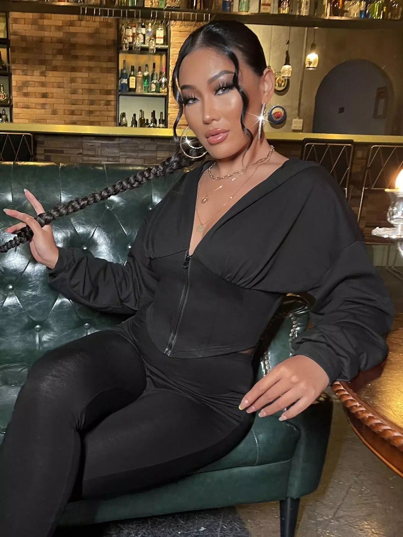 Zip Up Drop Shoulder Asymmetrical Hem Crop Hoodie & Leggings