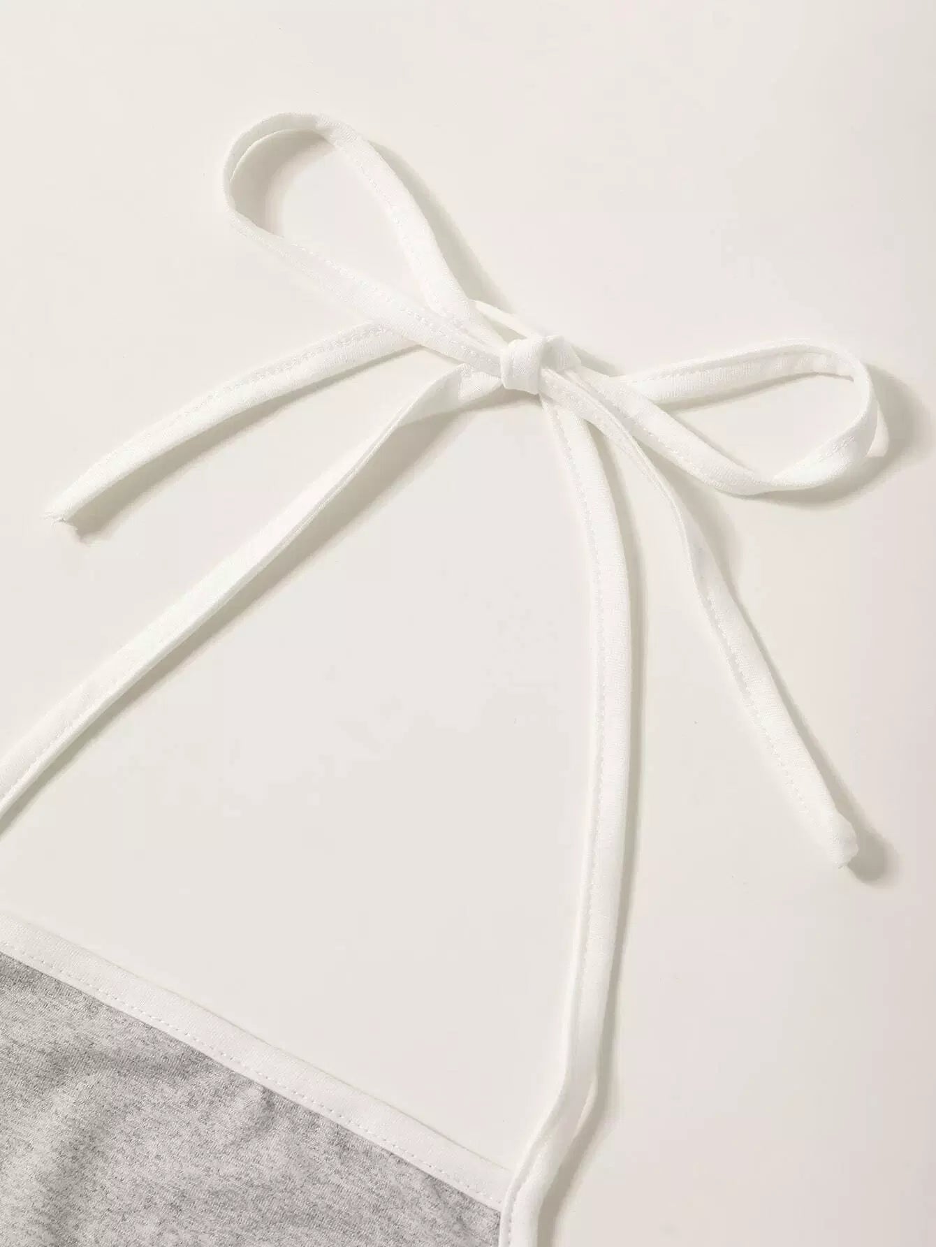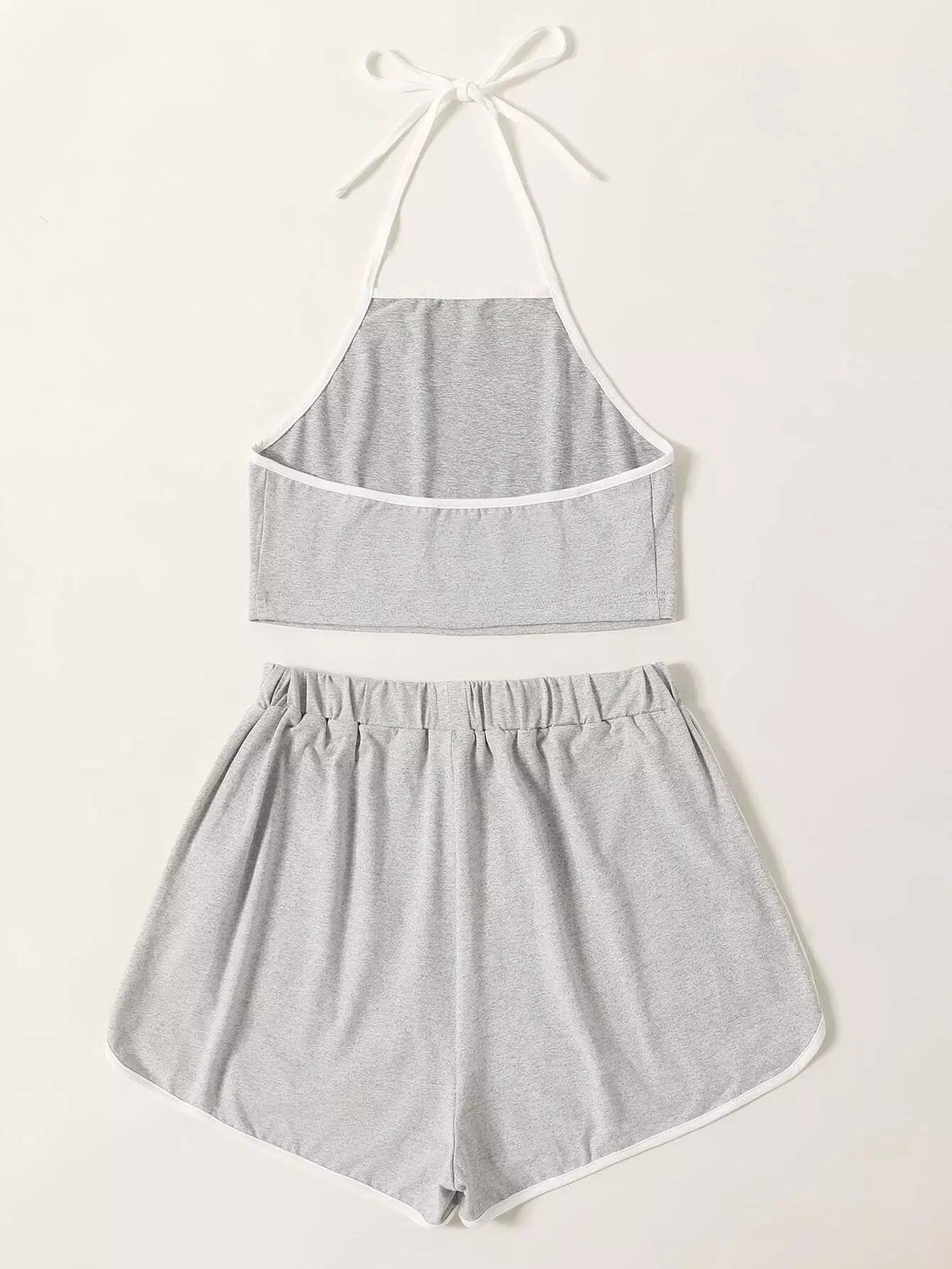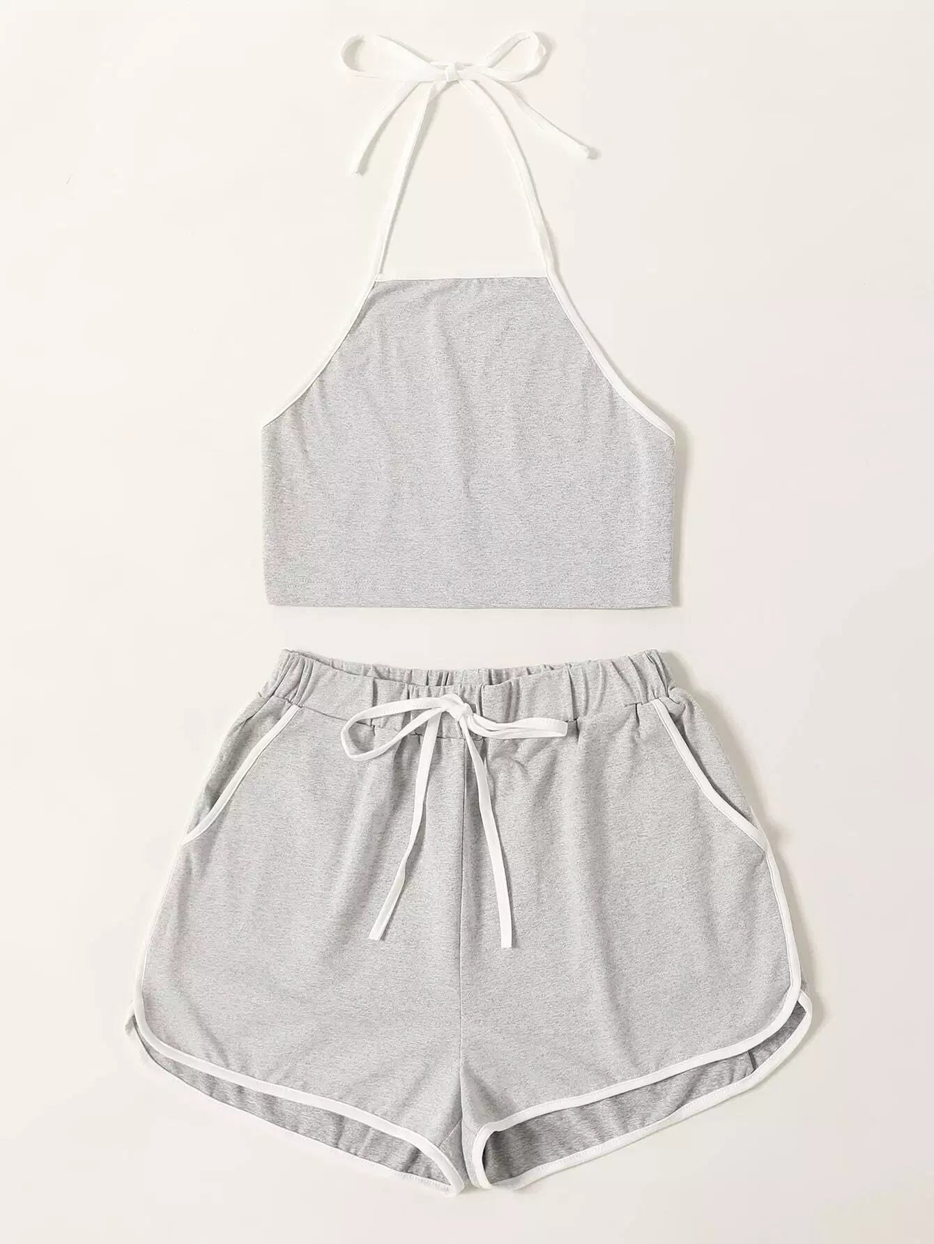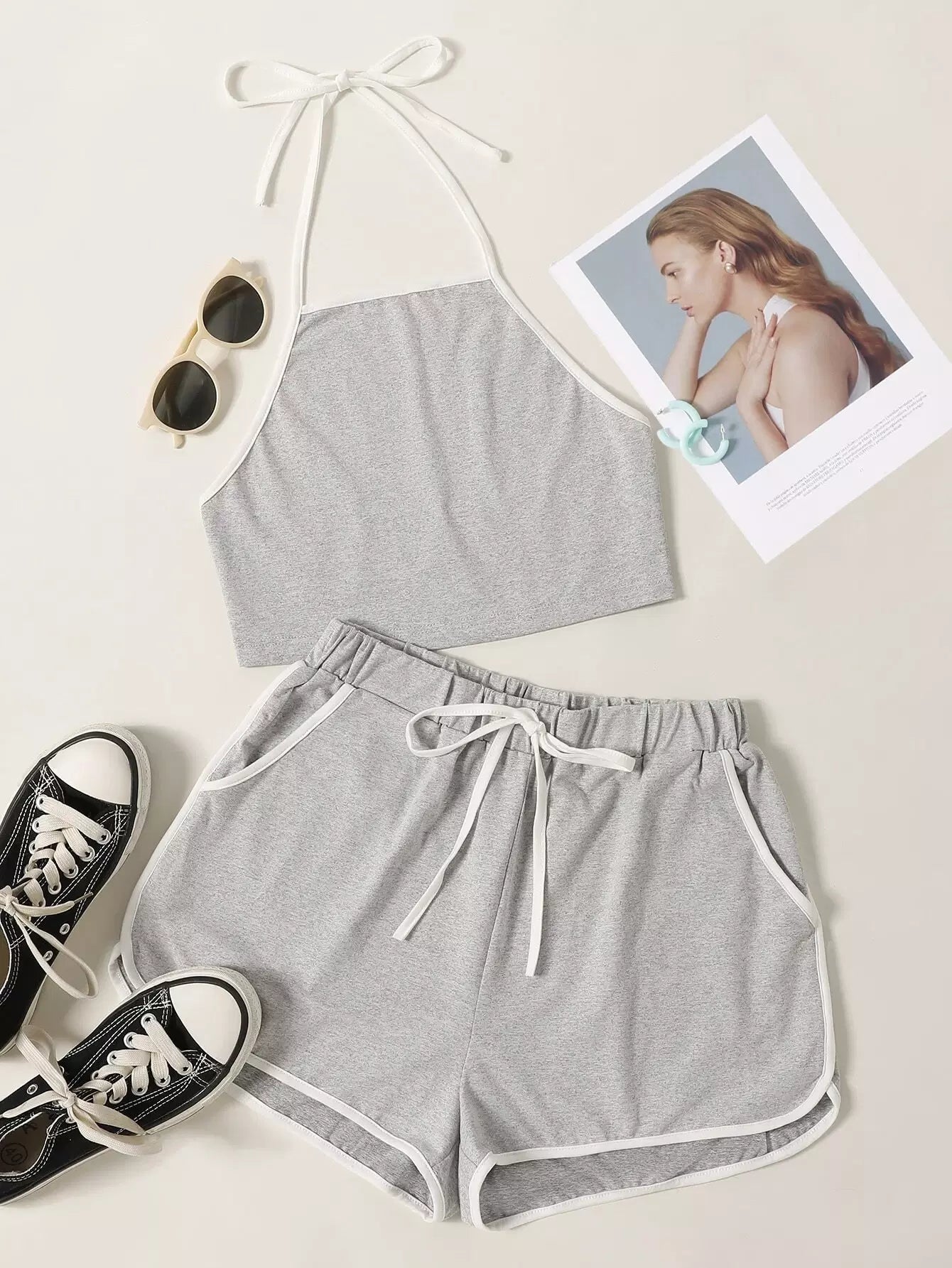 Contrast Binding Tie Back Halter Top & Track Shorts