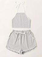 Women - Contrast Binding Tie Back Halter Top & Track Shorts