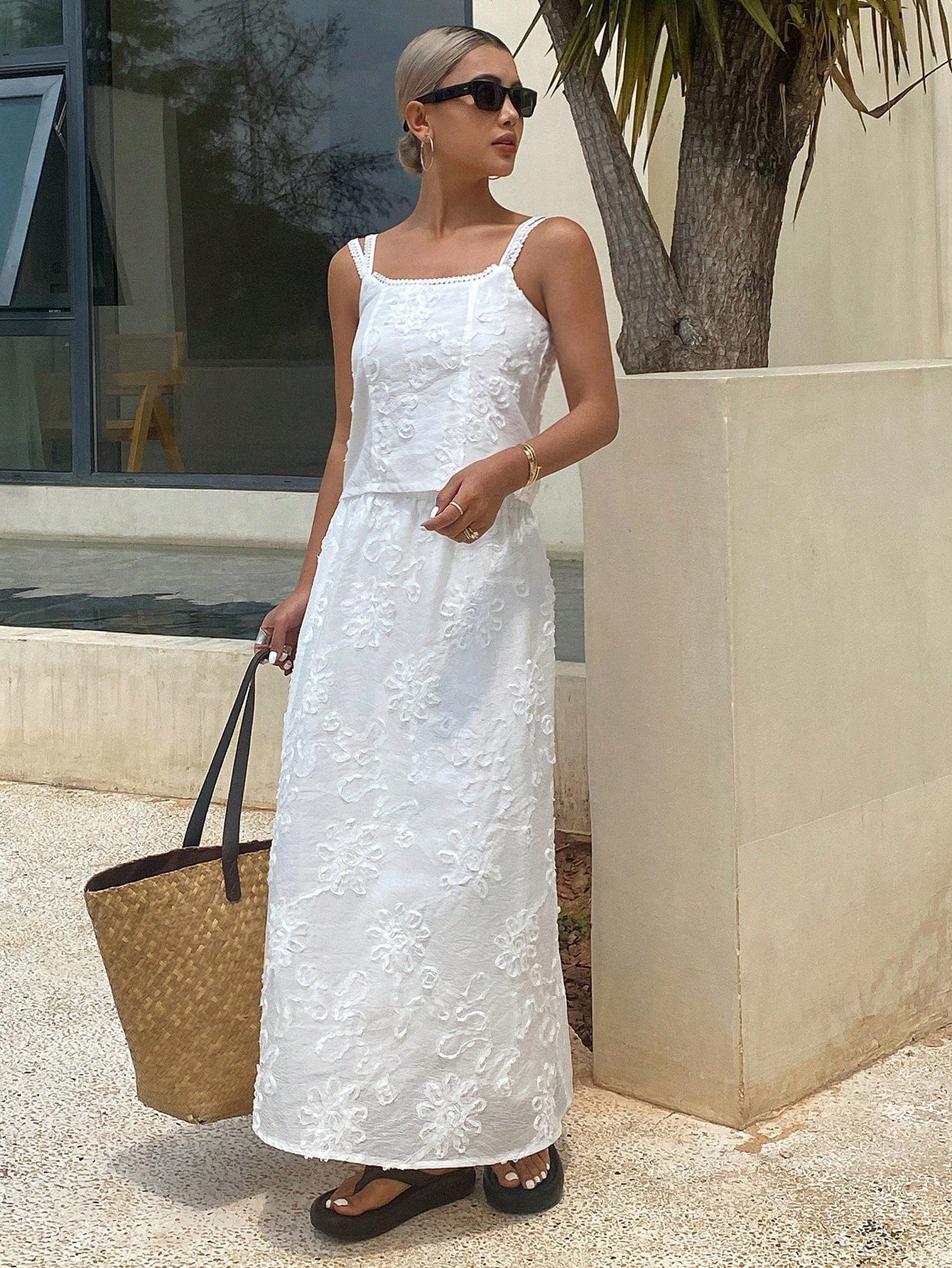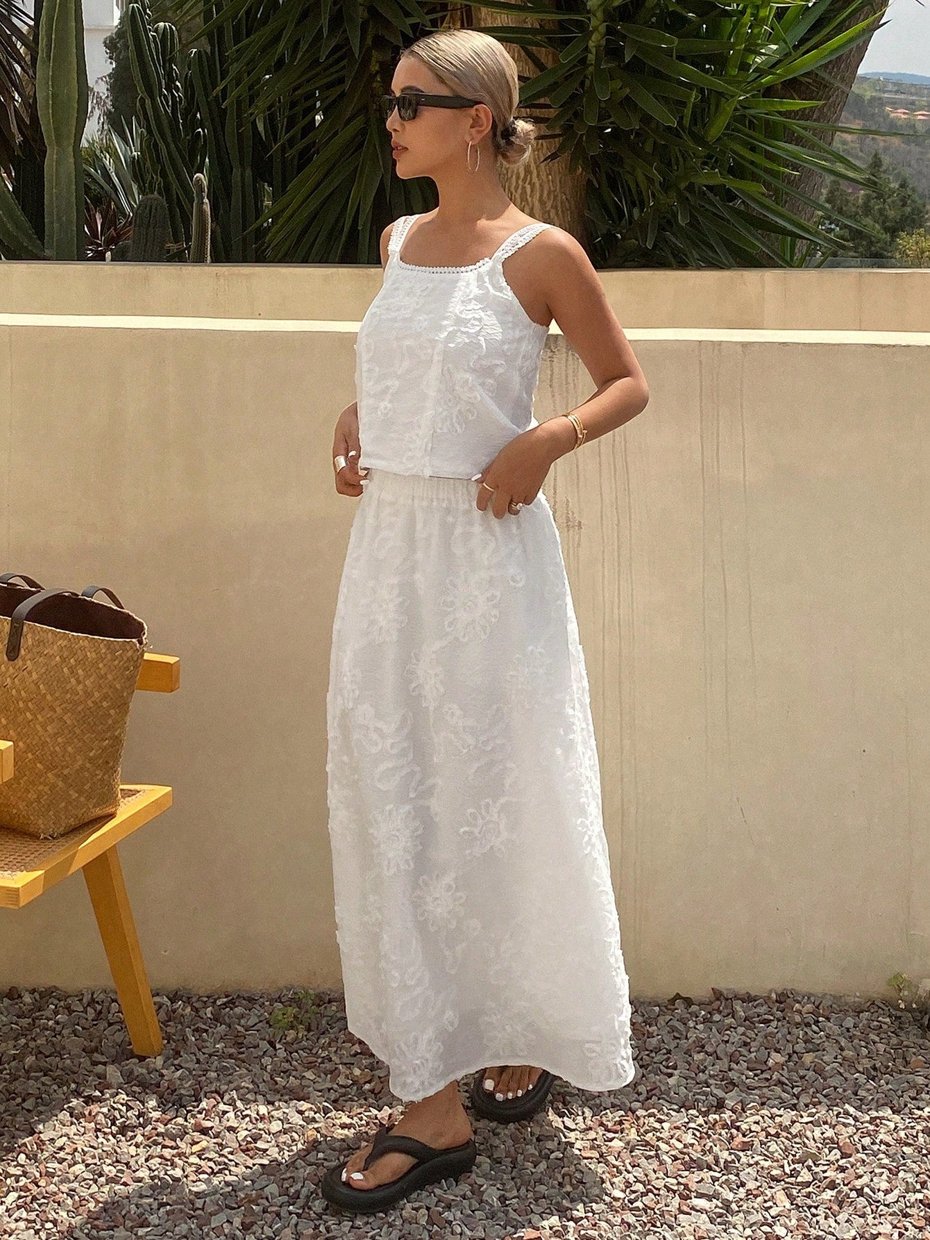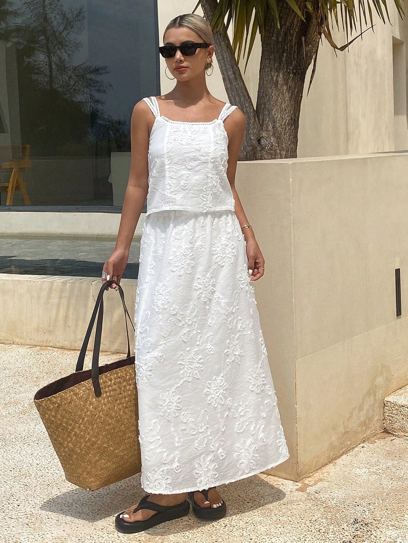 DAZY 2pcs/Set Women Vacation Beach Lace Jacquard Camisole And Straight Skirt Suit