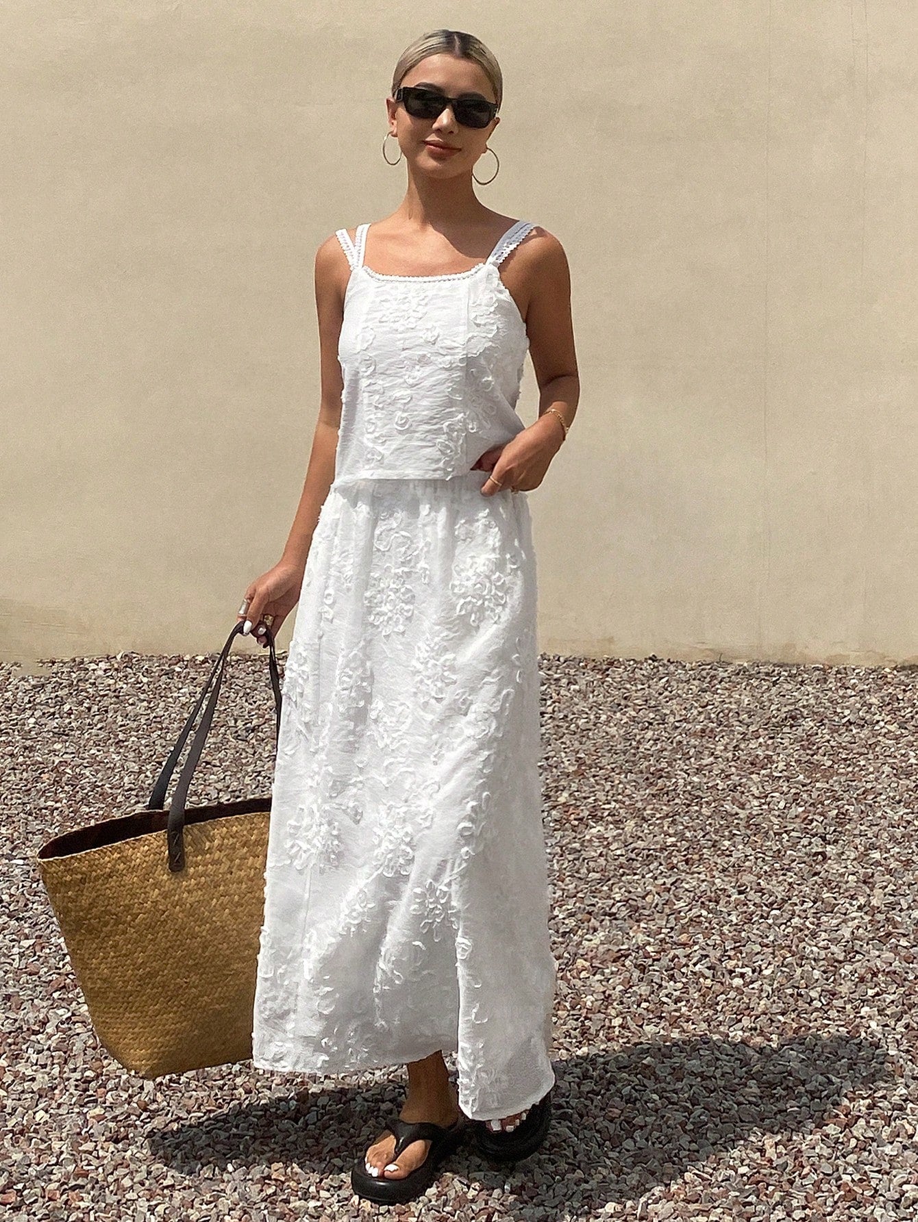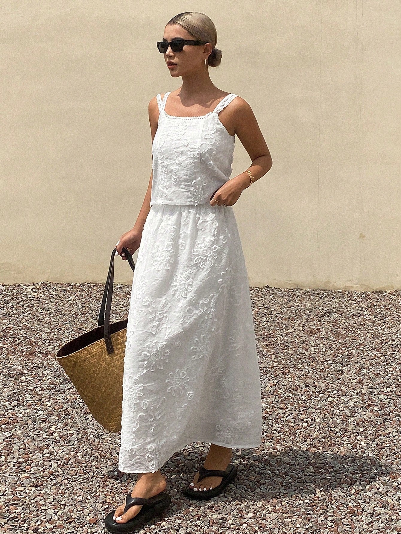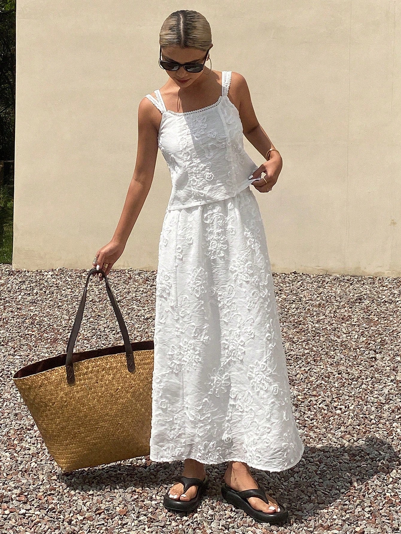 DAZY 2pcs/Set Women Vacation Beach Lace Jacquard Camisole And Straight Skirt Suit
