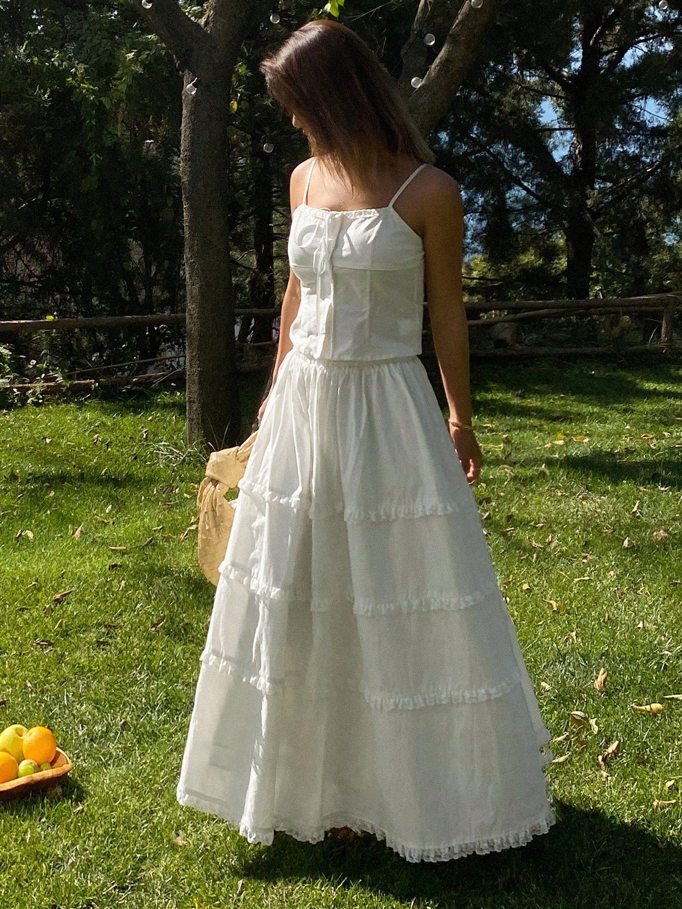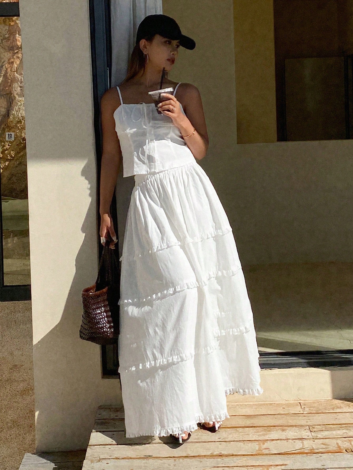 DAZY Women's Cinching Waist Frill Trim Camisole & Skirt 2pcs Set