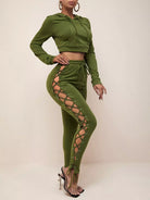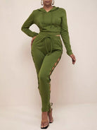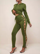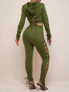 Women - Drawstring Kangaroo Pocket Crop Hoodie & Lace Up Side Leggings