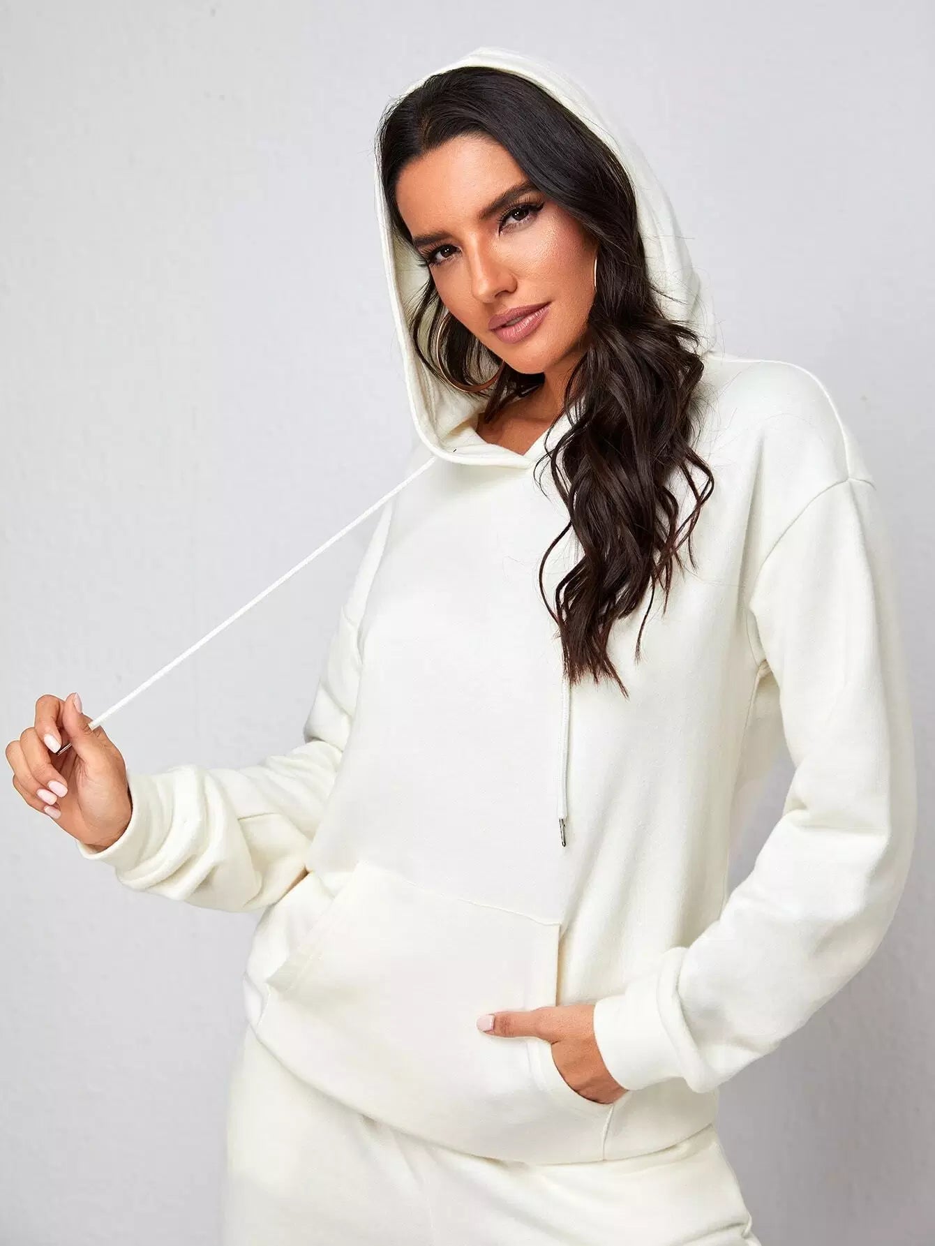 Drop Shoulder Kangaroo Pocket Hoodie & Sweatpants Set
