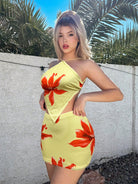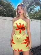 EgrlEra Women Asymmetrical Hem Floral Print Halter Neck Top + Mini Skirt 2 Pieces Set