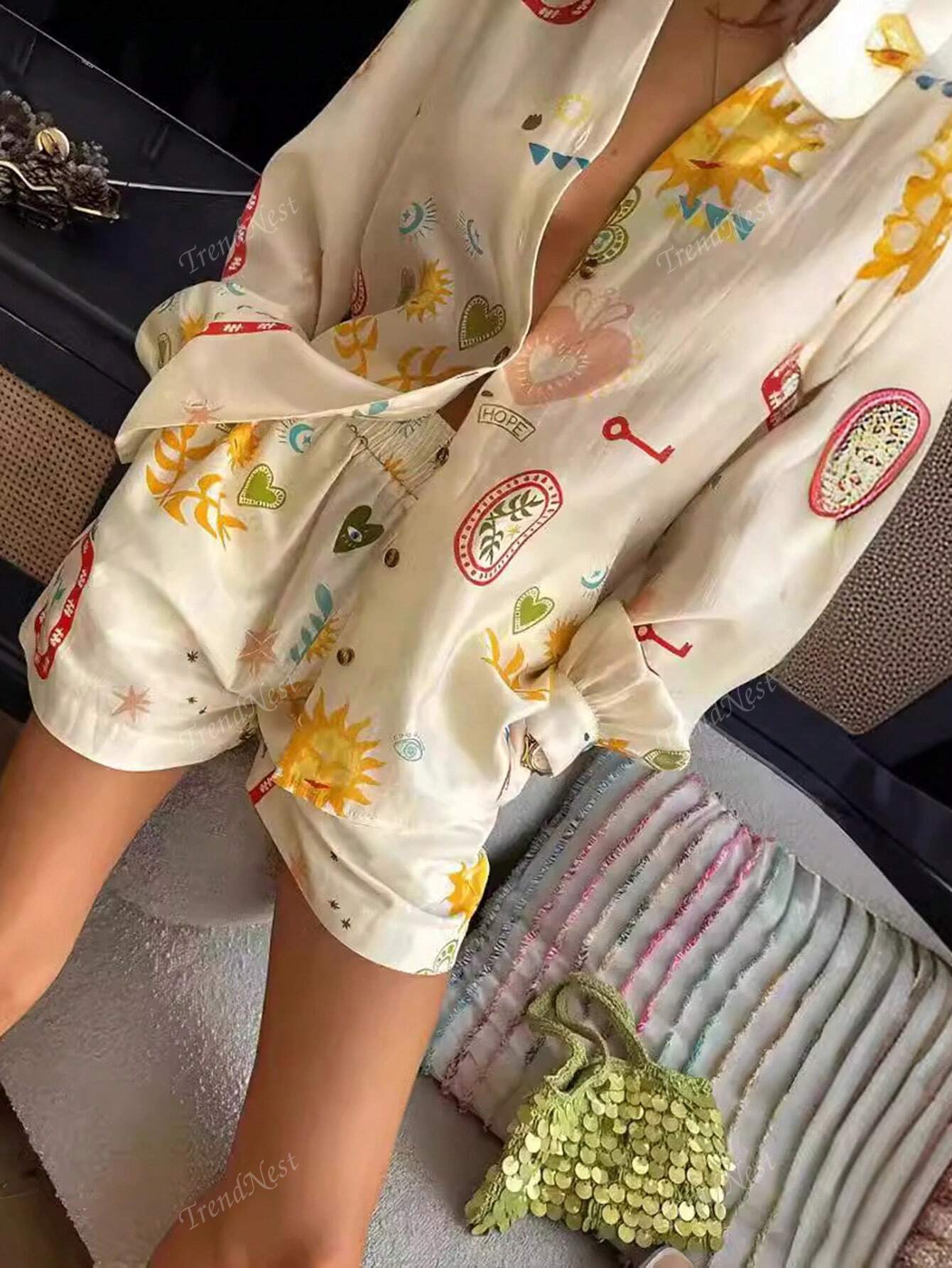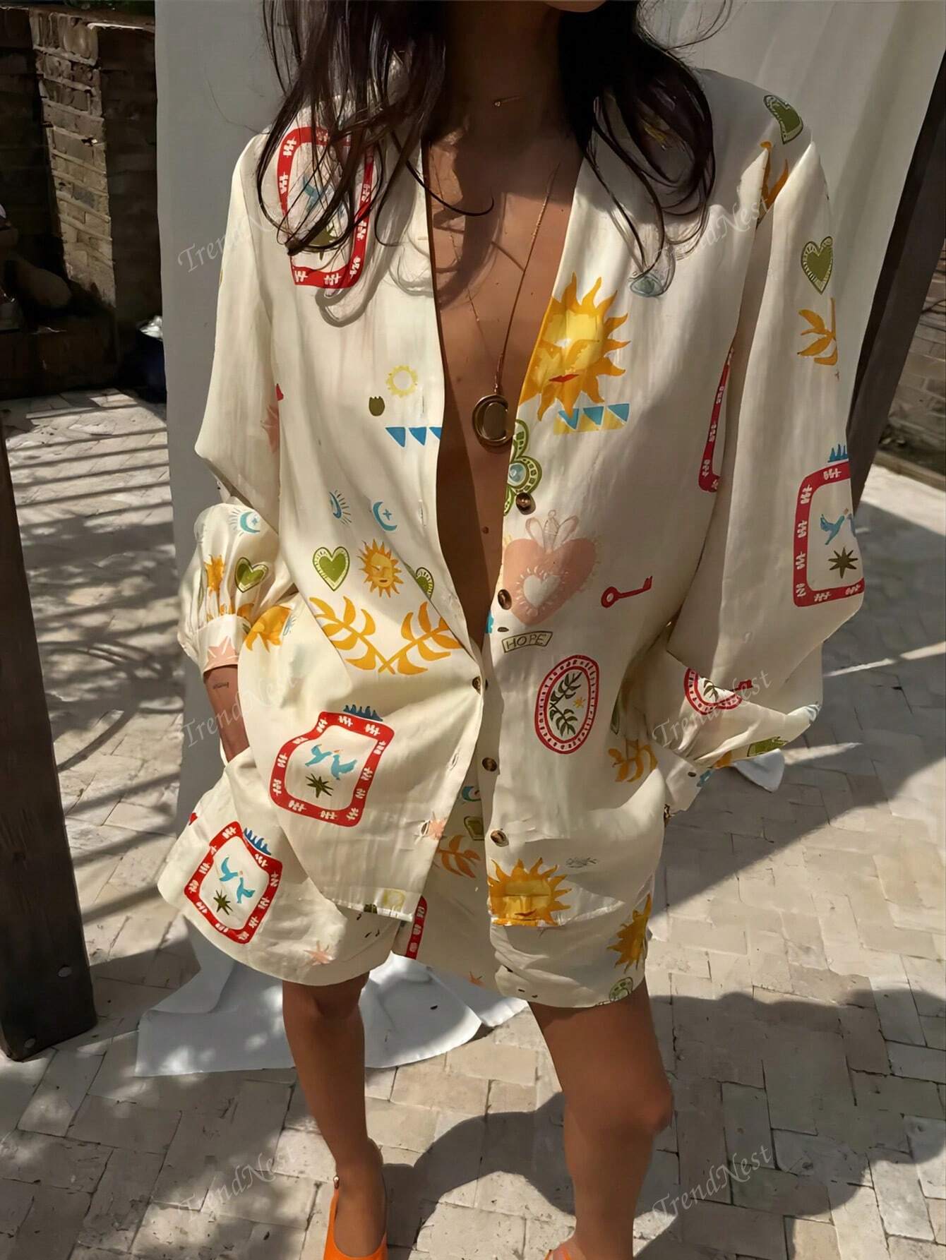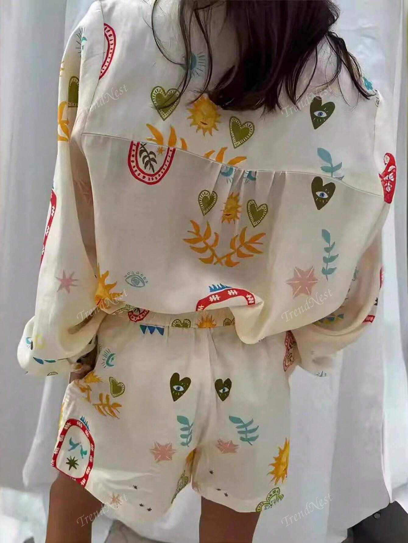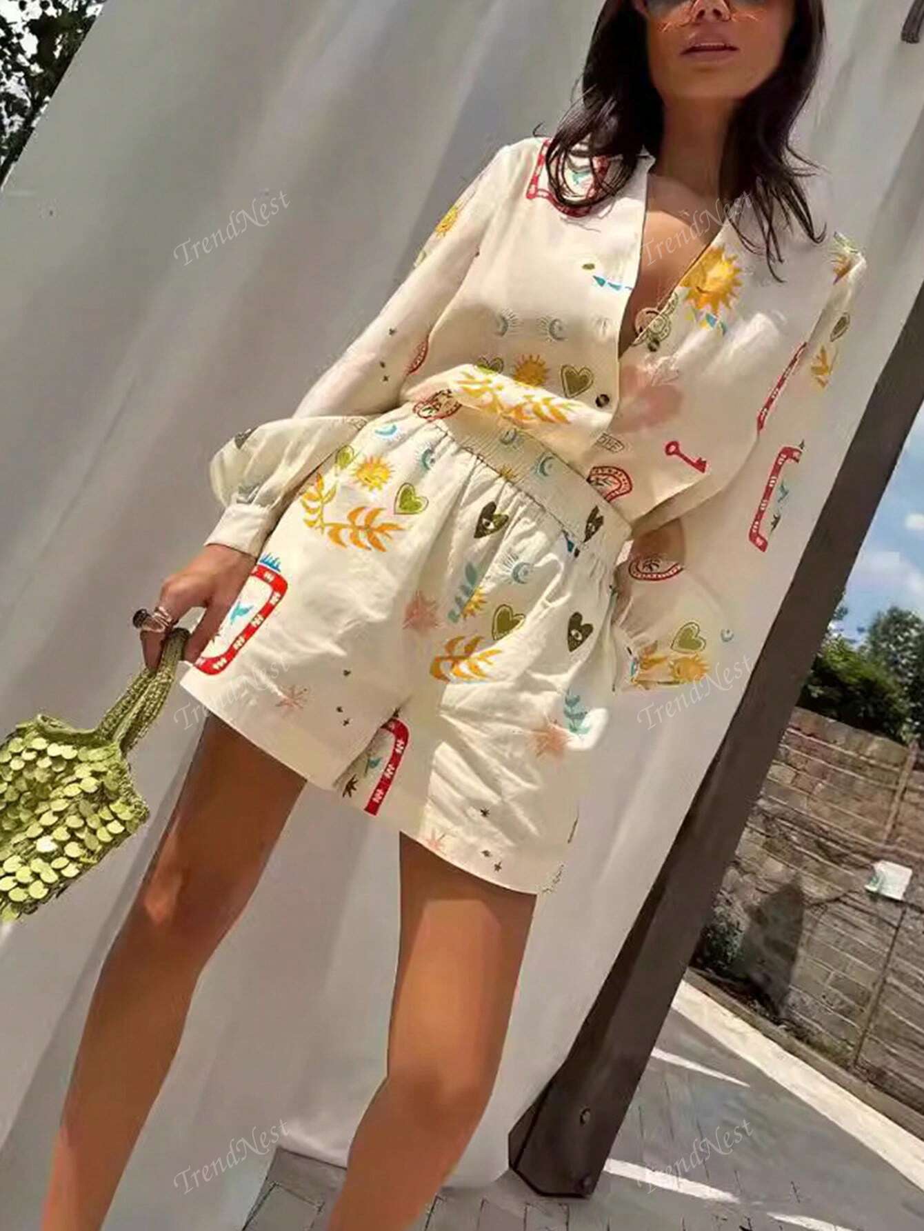 Fashionable Printed Linen Casual Shirt & Shorts Set, Versatile