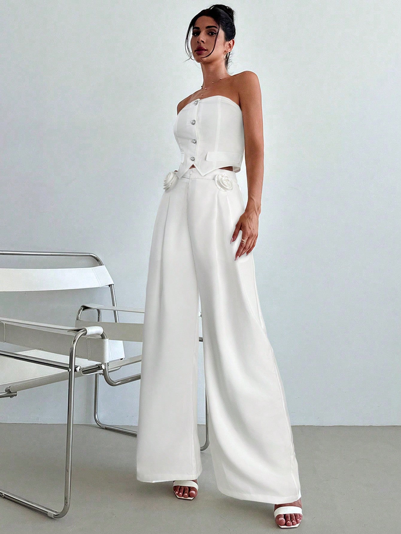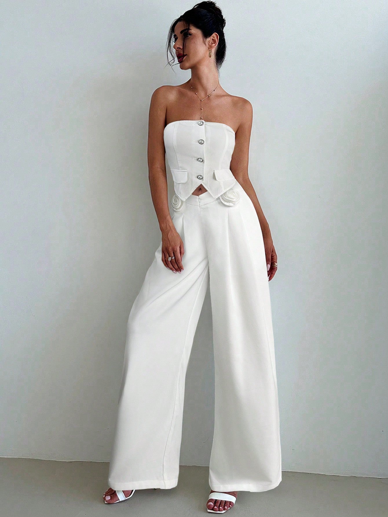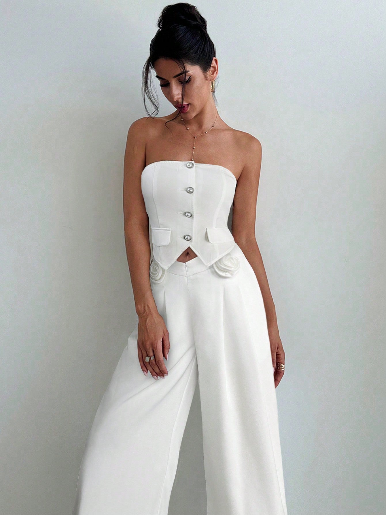 Firerie 2Pcs Set Women Elegant Romantic Fashion Commuting Sexy Style Outfit, Suitable For Party, Vacation,