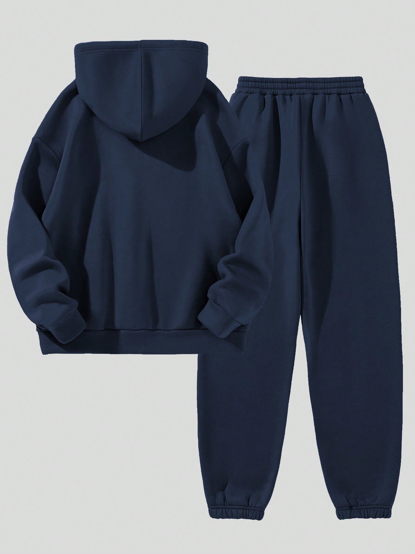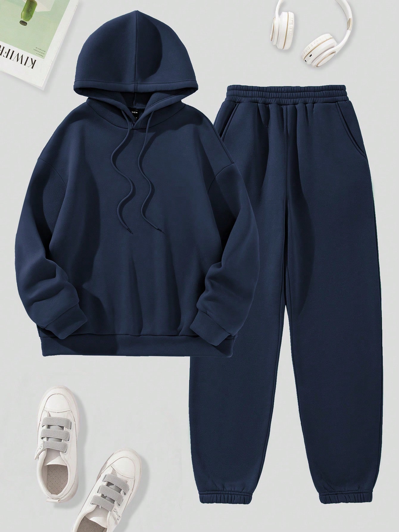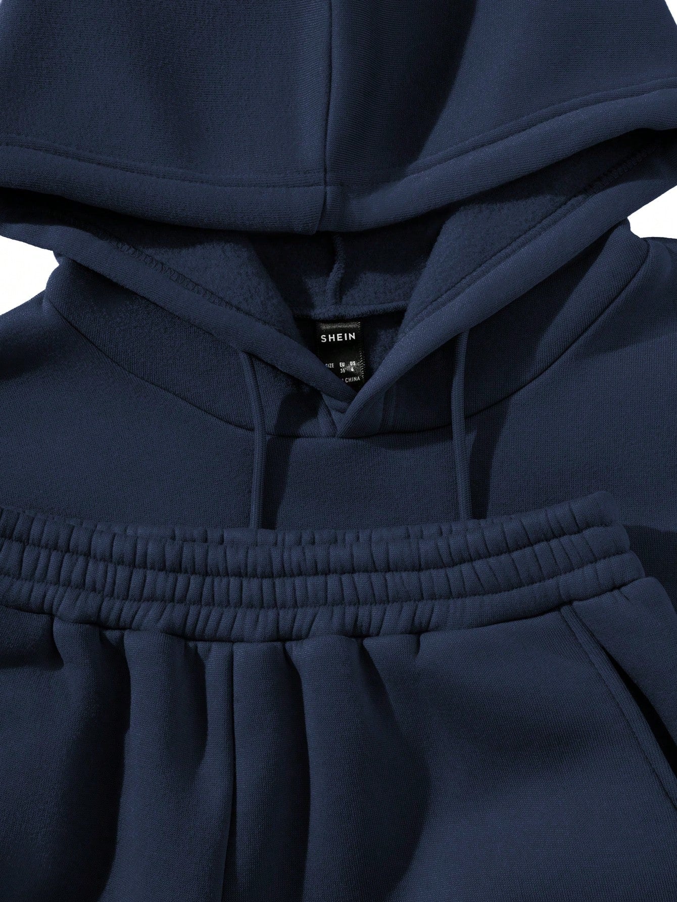 LUNE Solid Drawstring Thermal Lined Hoodie & Sweatpants