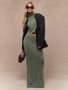 MISSGUIDED Ribbed Knit High Neck Crop Top And Maxi Skirt Set Fall Winter Holiday Party Co-Ord Sophisticated