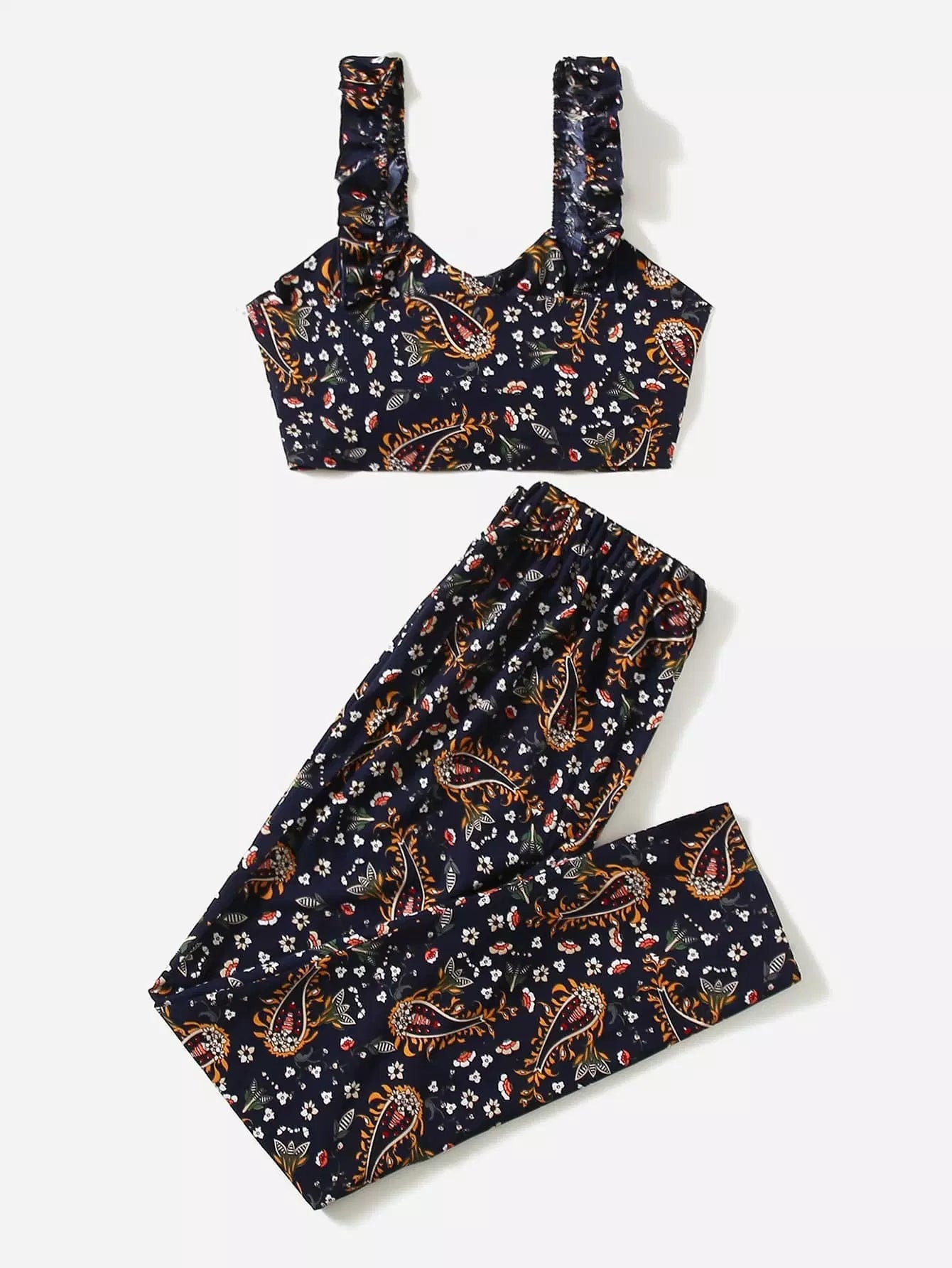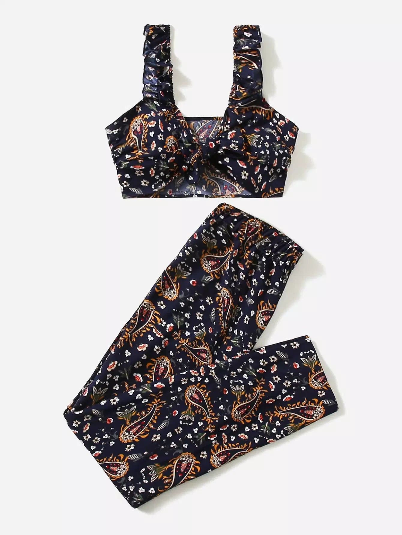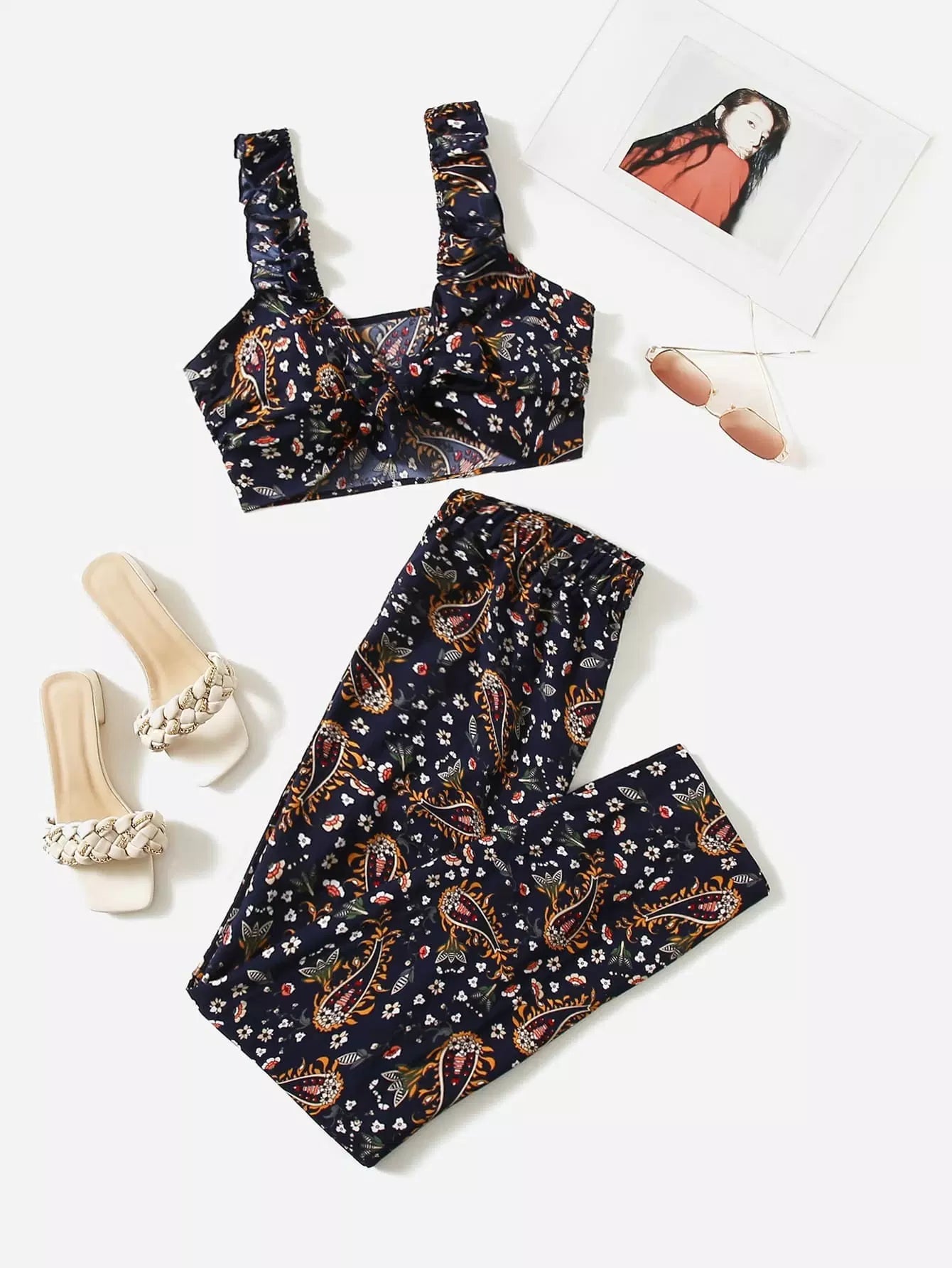 Women - Paisley Print Knot Front Crop Tank Top & Pants