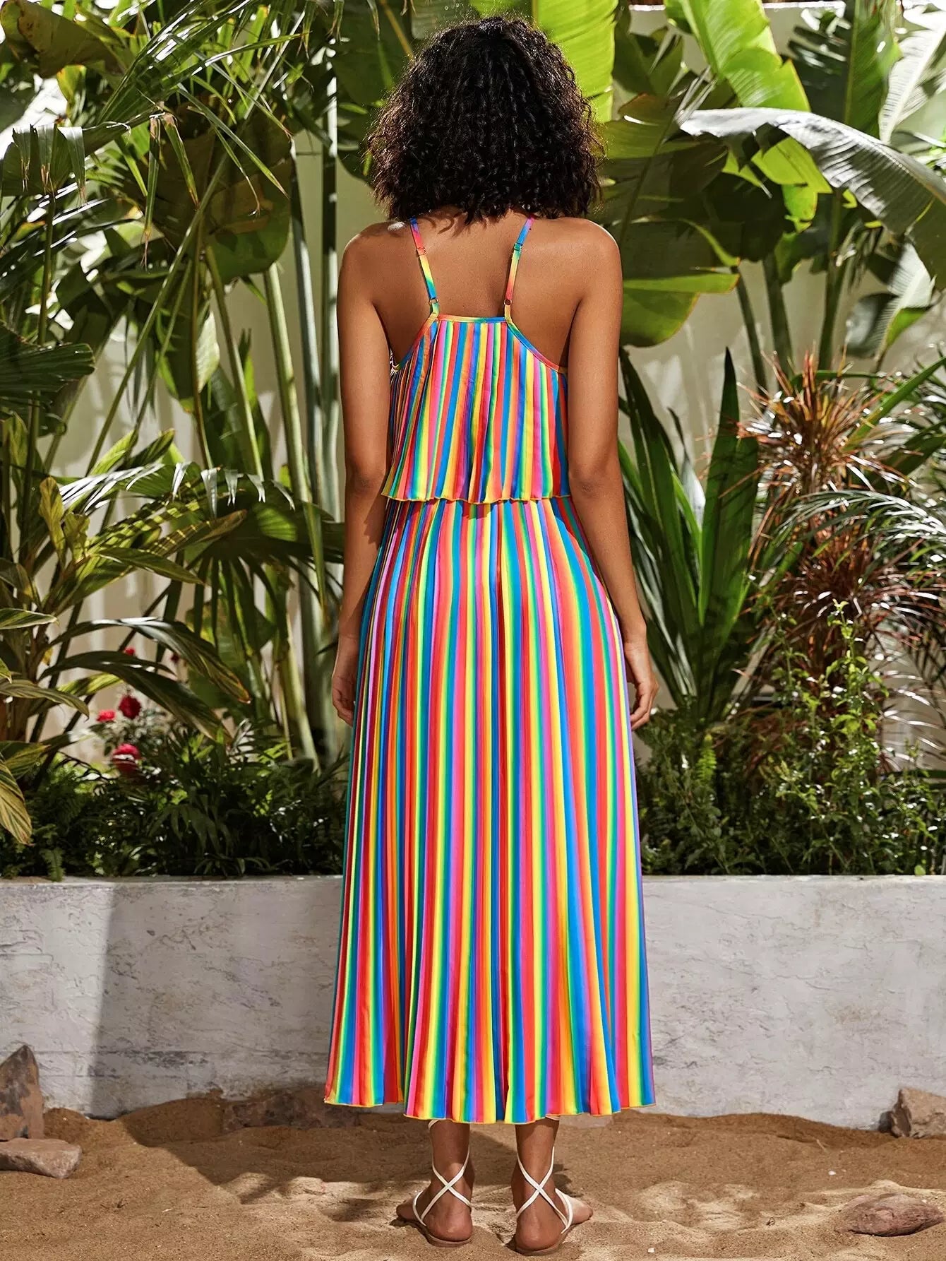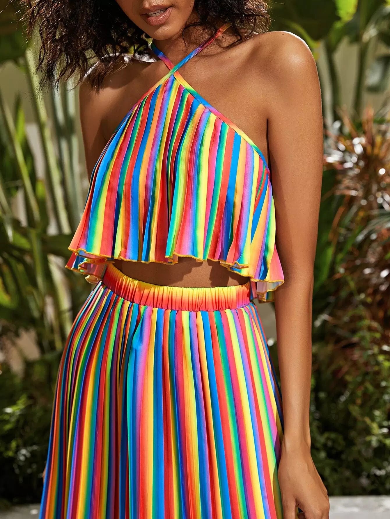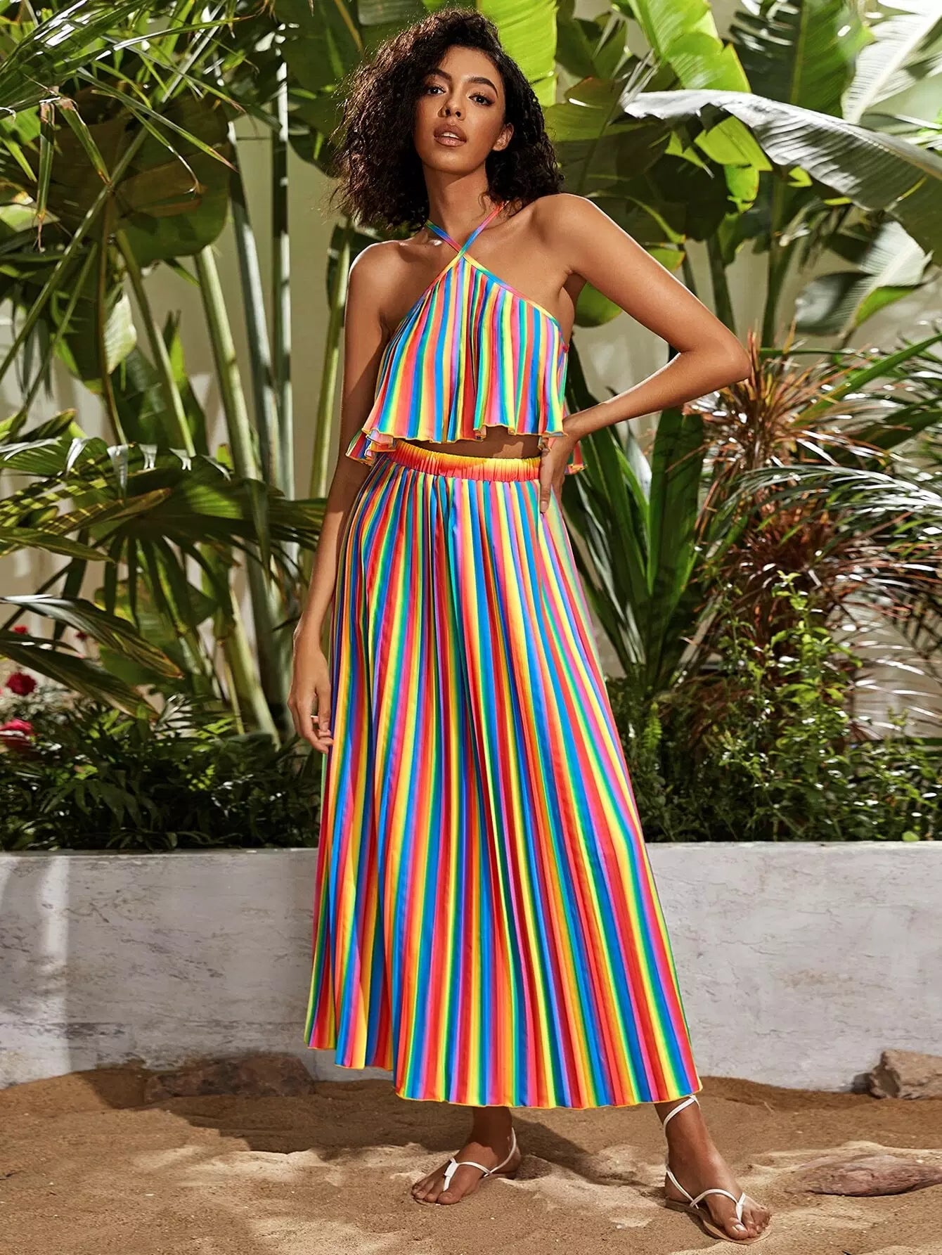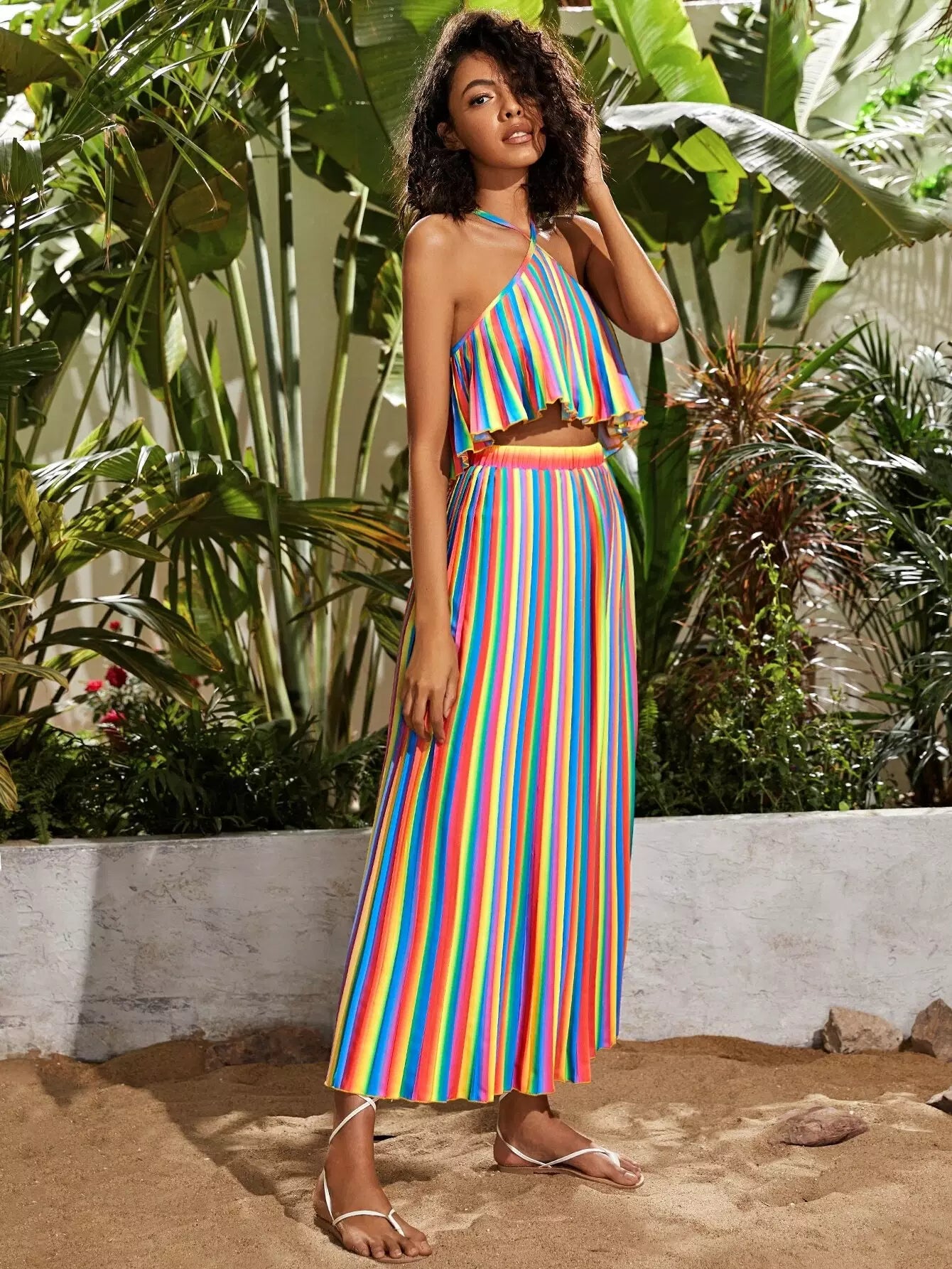 Rainbow Stripe Halter Top & Maxi Skirt Set