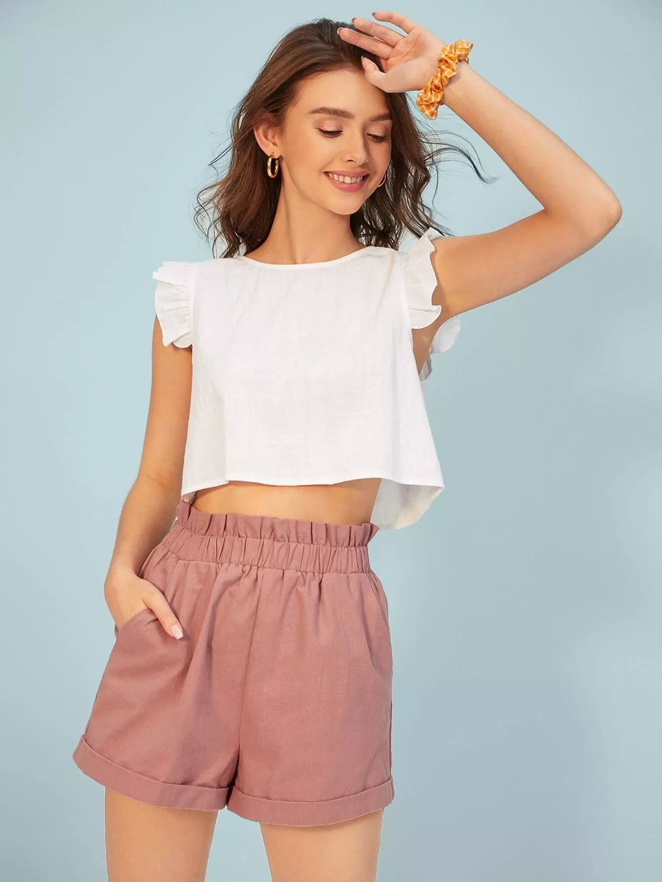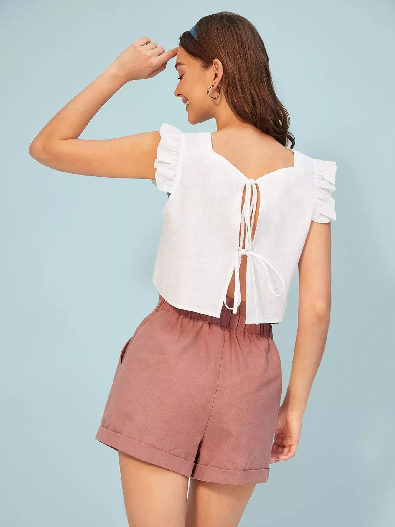 Ruffle Trim Tie Back Top & Pocket Shorts Set