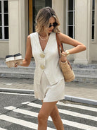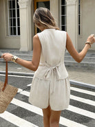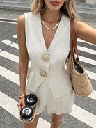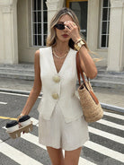 women Serisse 2pcs/Set Women's Summer Simple Fashion Shell Metal Button Camisole And Shorts Set