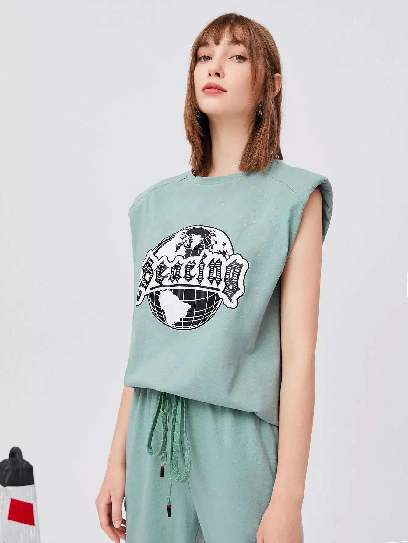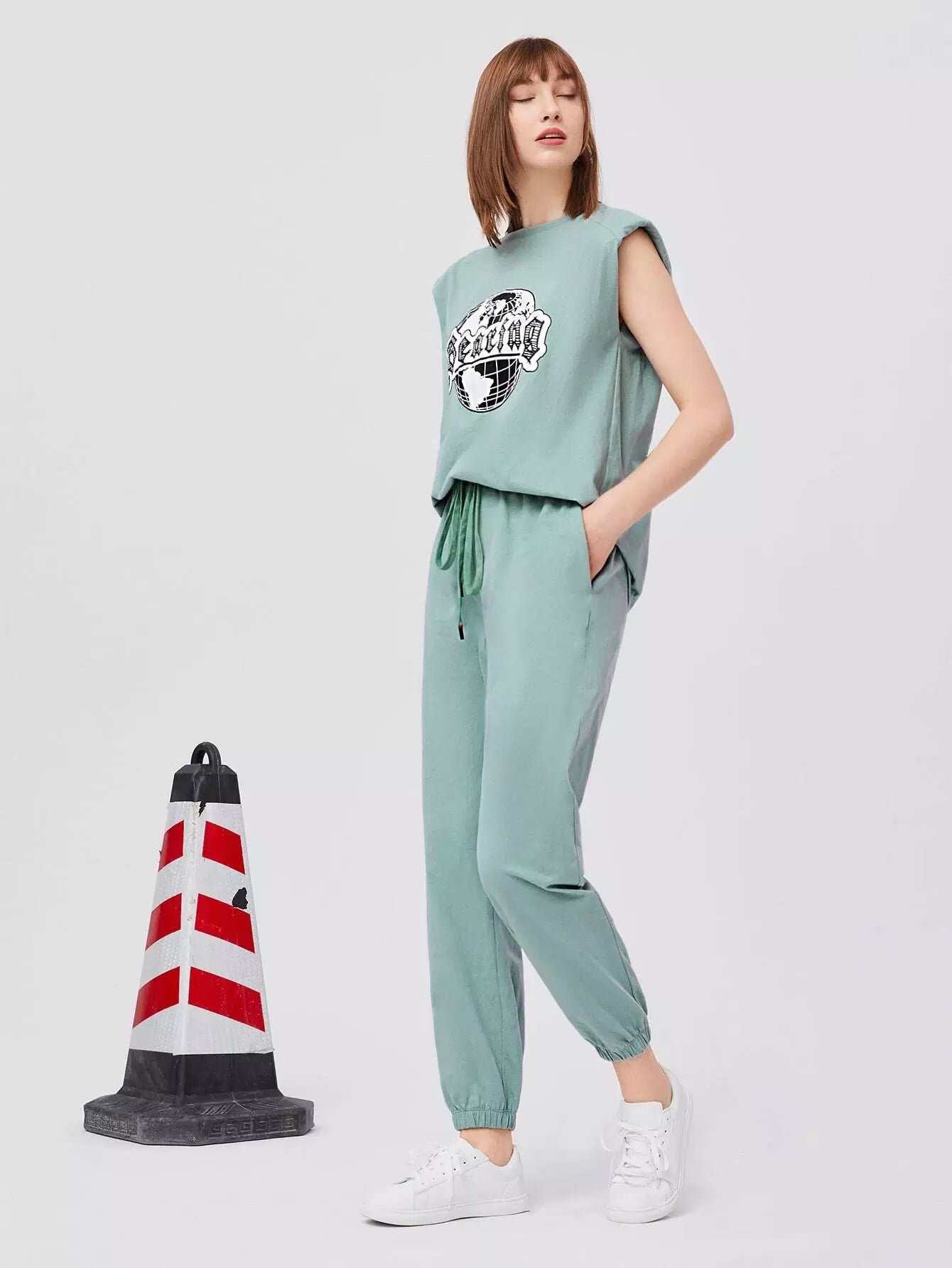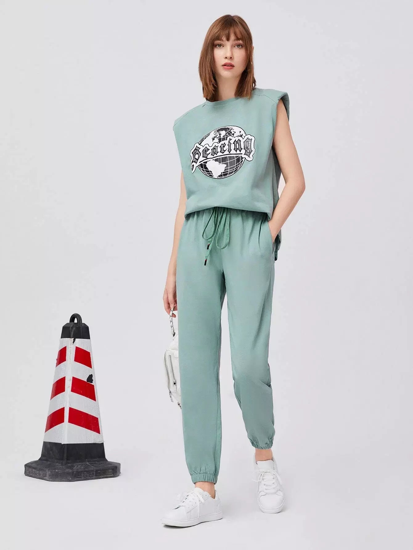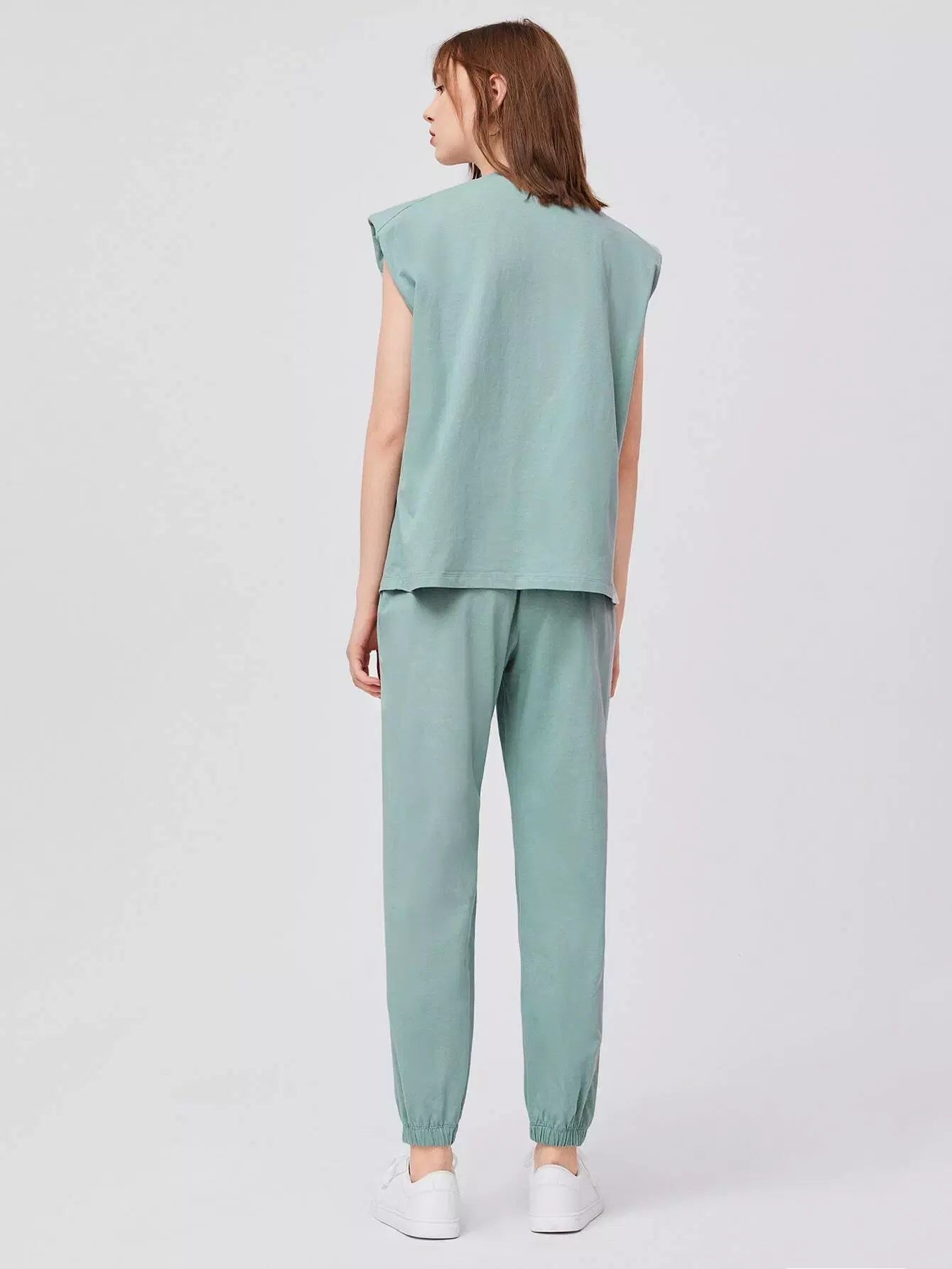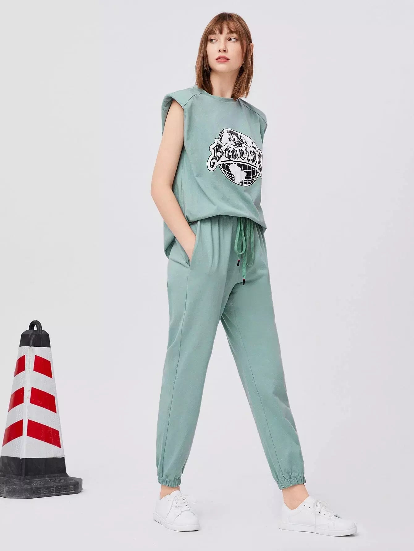 Shoulder Pad Tank Top & Drawstring Sweatpants Set