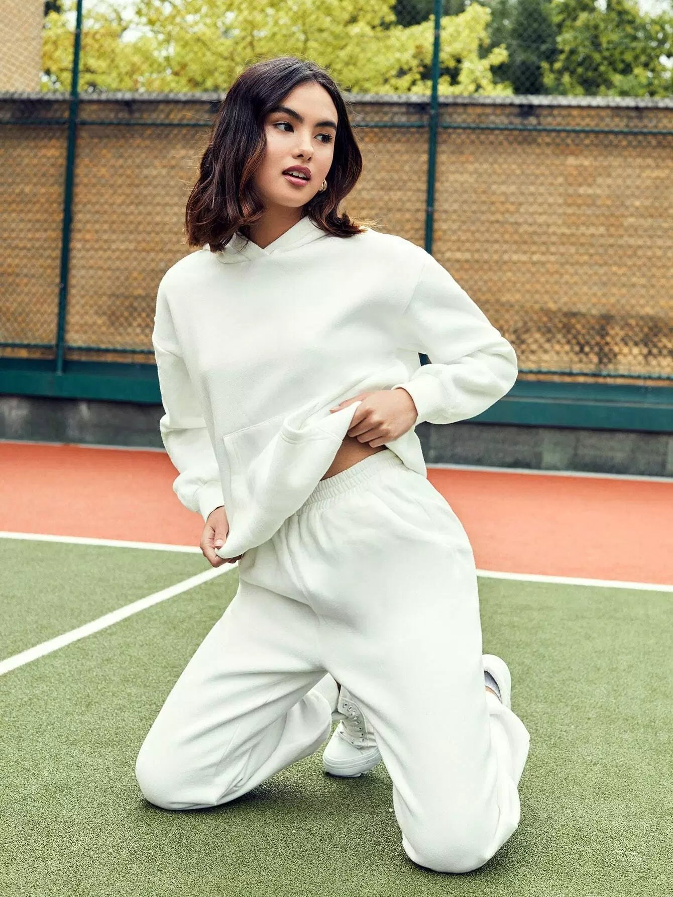 Solid Drop Shoulder Hoodie & Carrot Pants