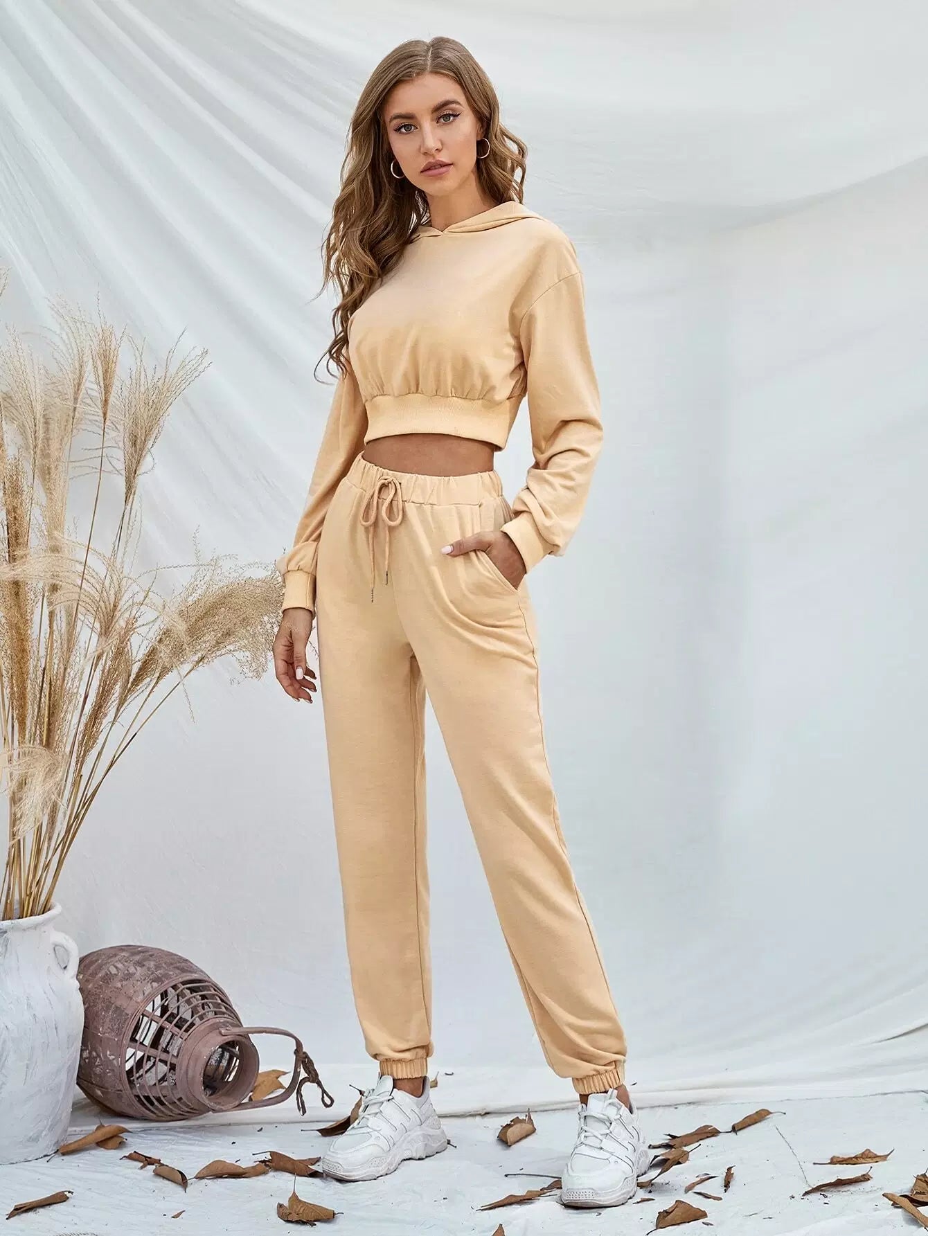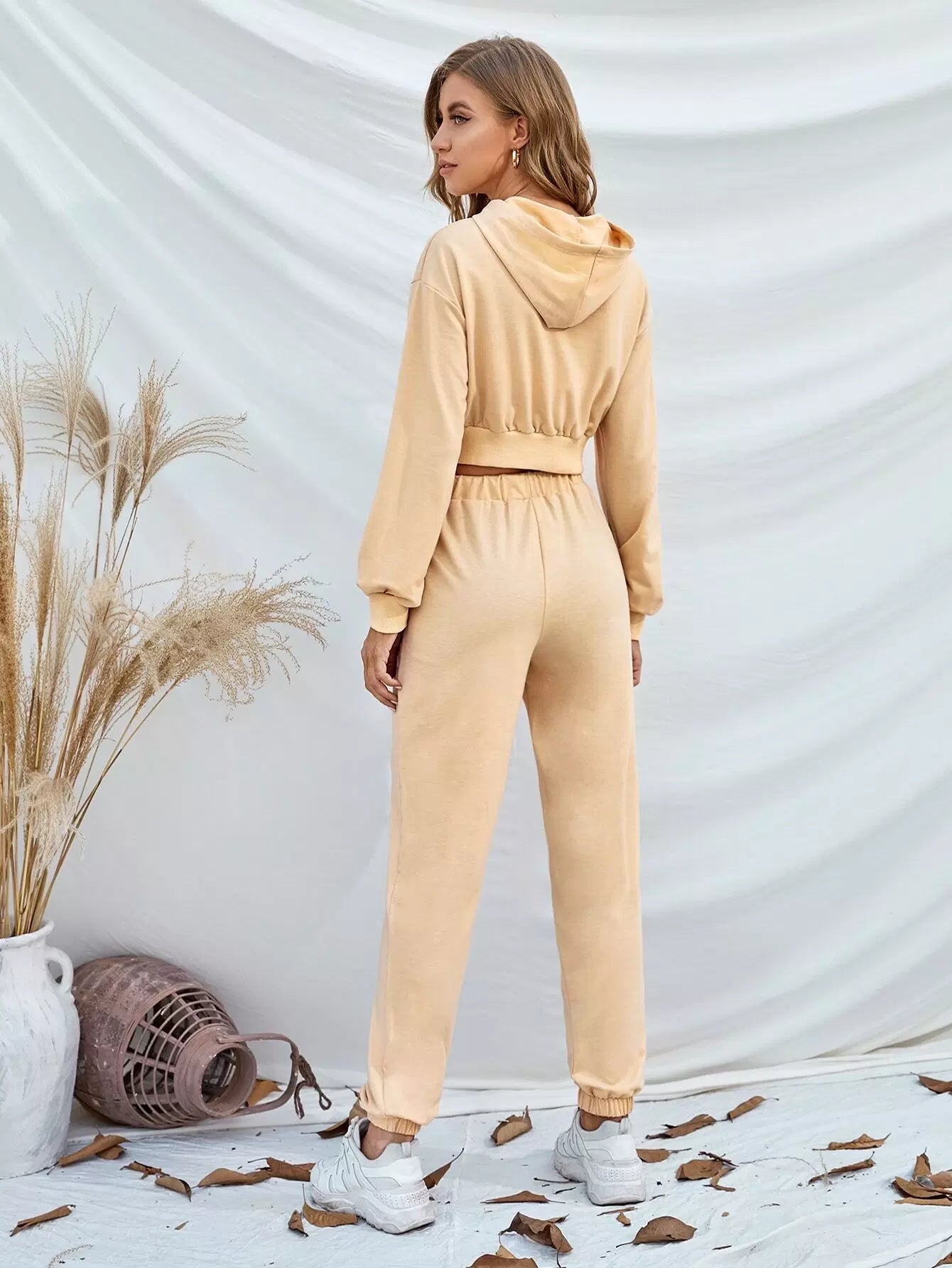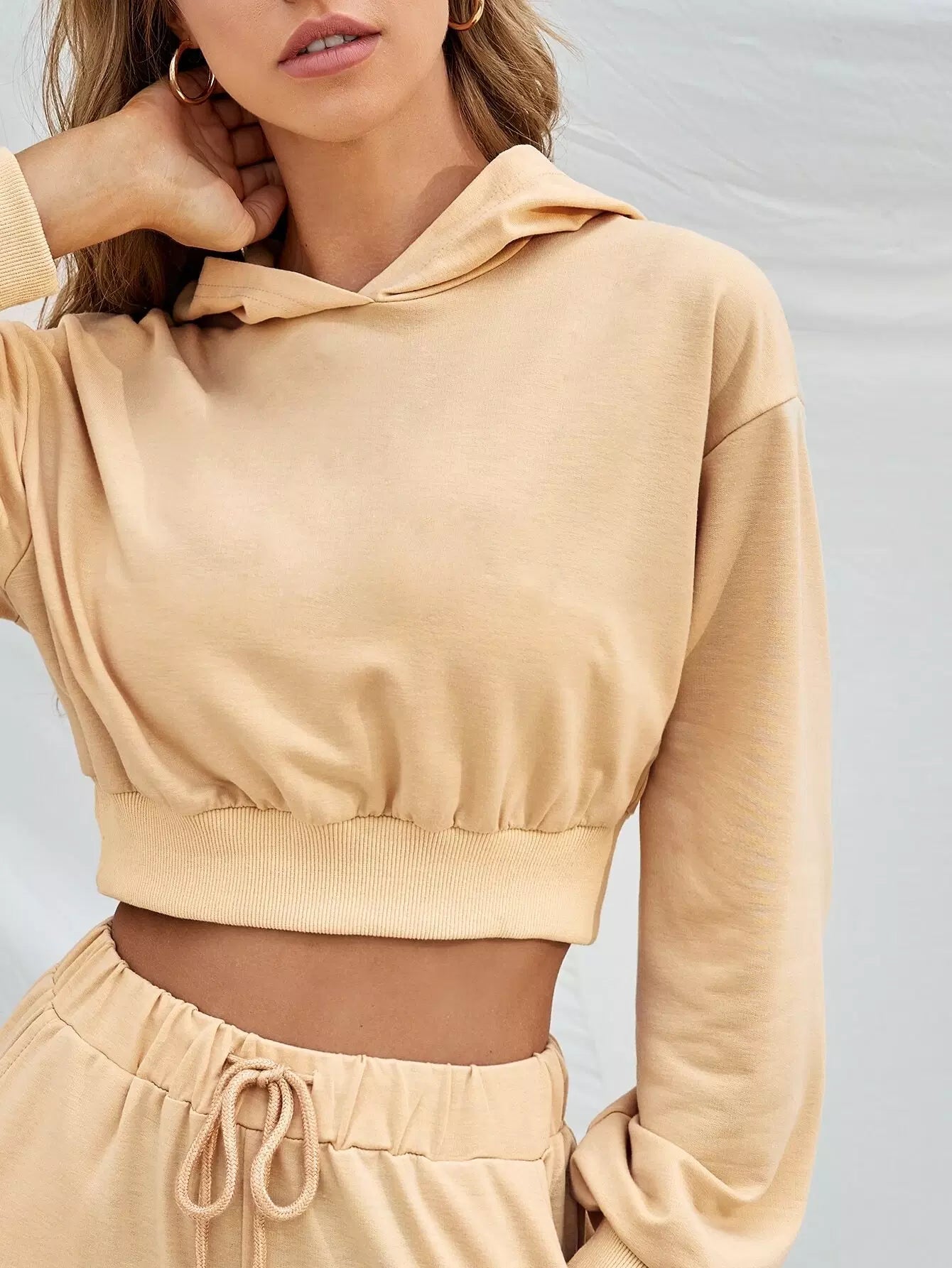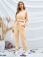Solid Hoodie & Drawstring Waist Sweatpants Set