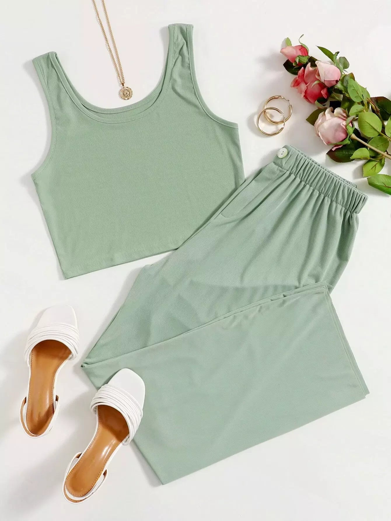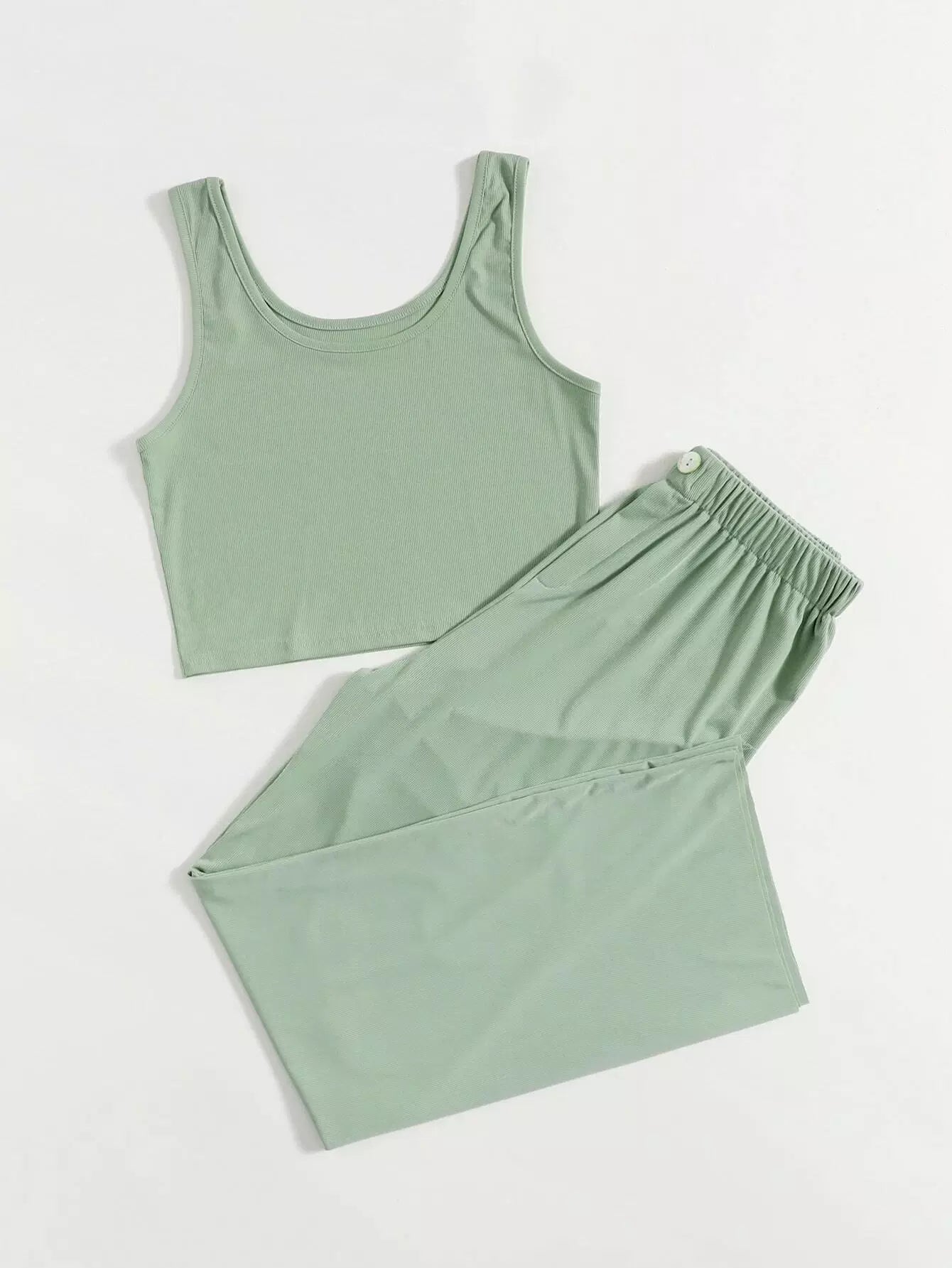 Solid Tank Top With Pants