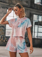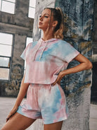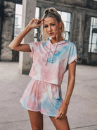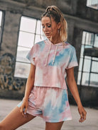 Tie Dye Drawstring Hooded Tee With Track Shorts